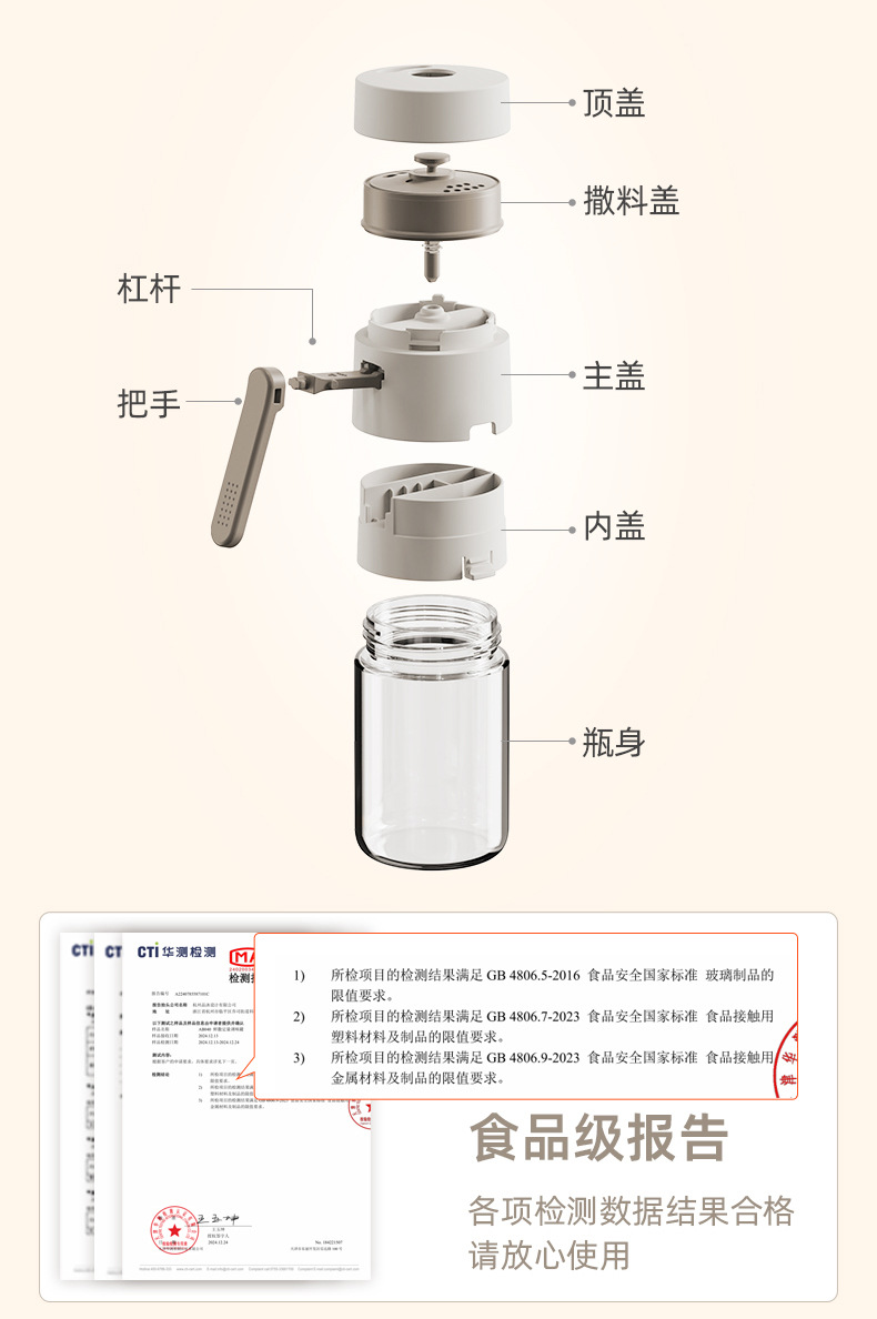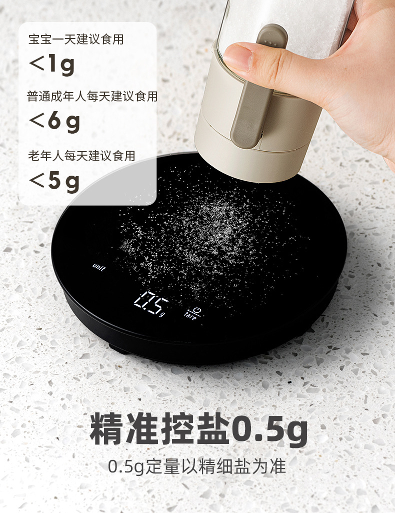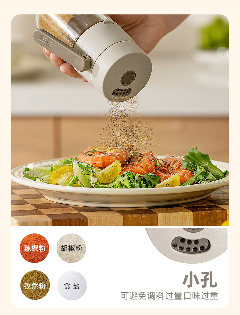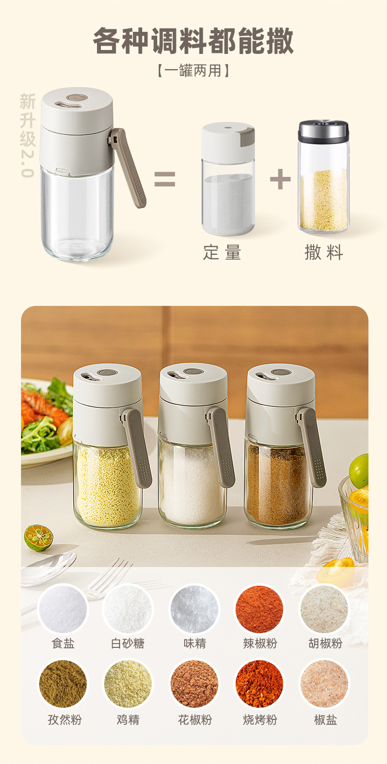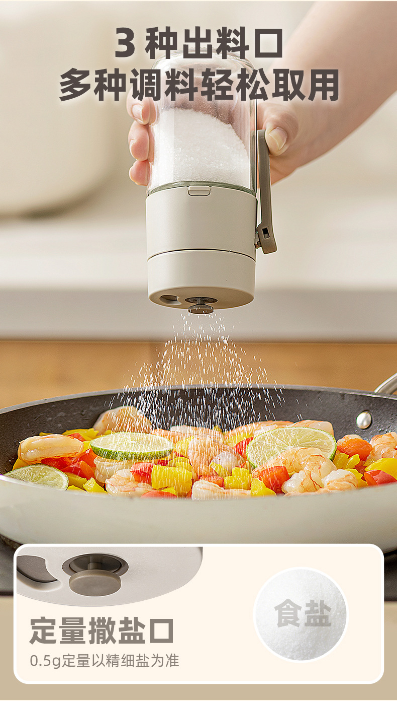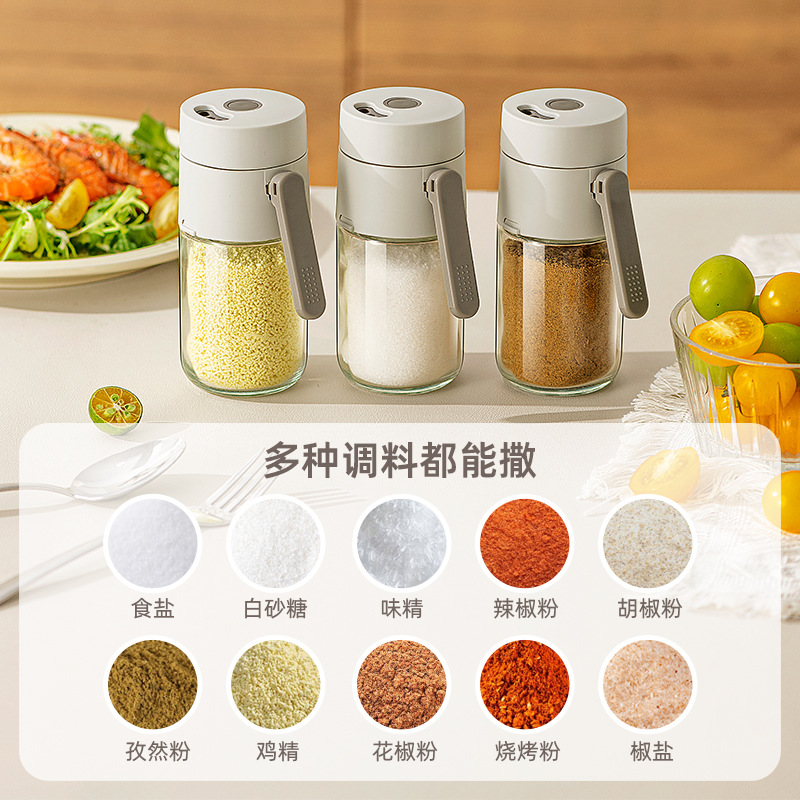 定量盐罐调料盒玻璃厨房调料罐防潮密封调味罐控盐分装瓶盐瓶