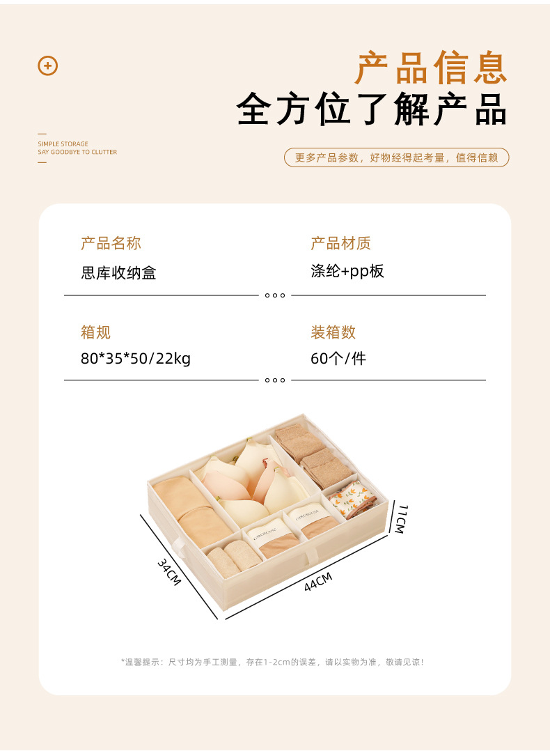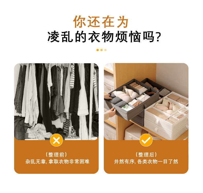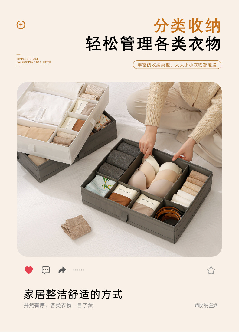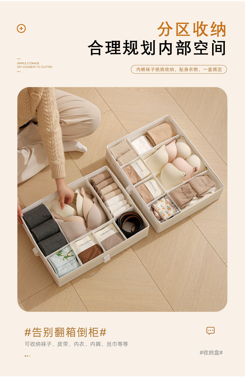 收纳盒内衣裤收纳盒 可折叠分格抽屉衣服整理盒 大容量布艺收纳箱