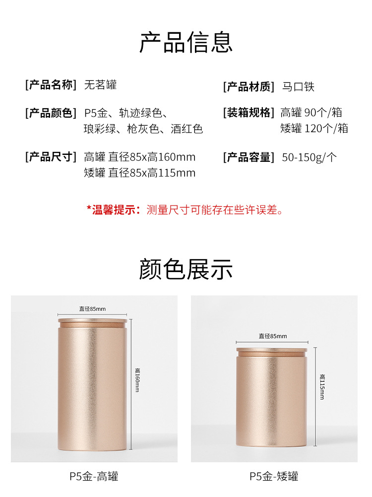 通用125g龙井茶叶罐密封铁罐小号便携茶叶盒空盒马口铁茶罐空罐
