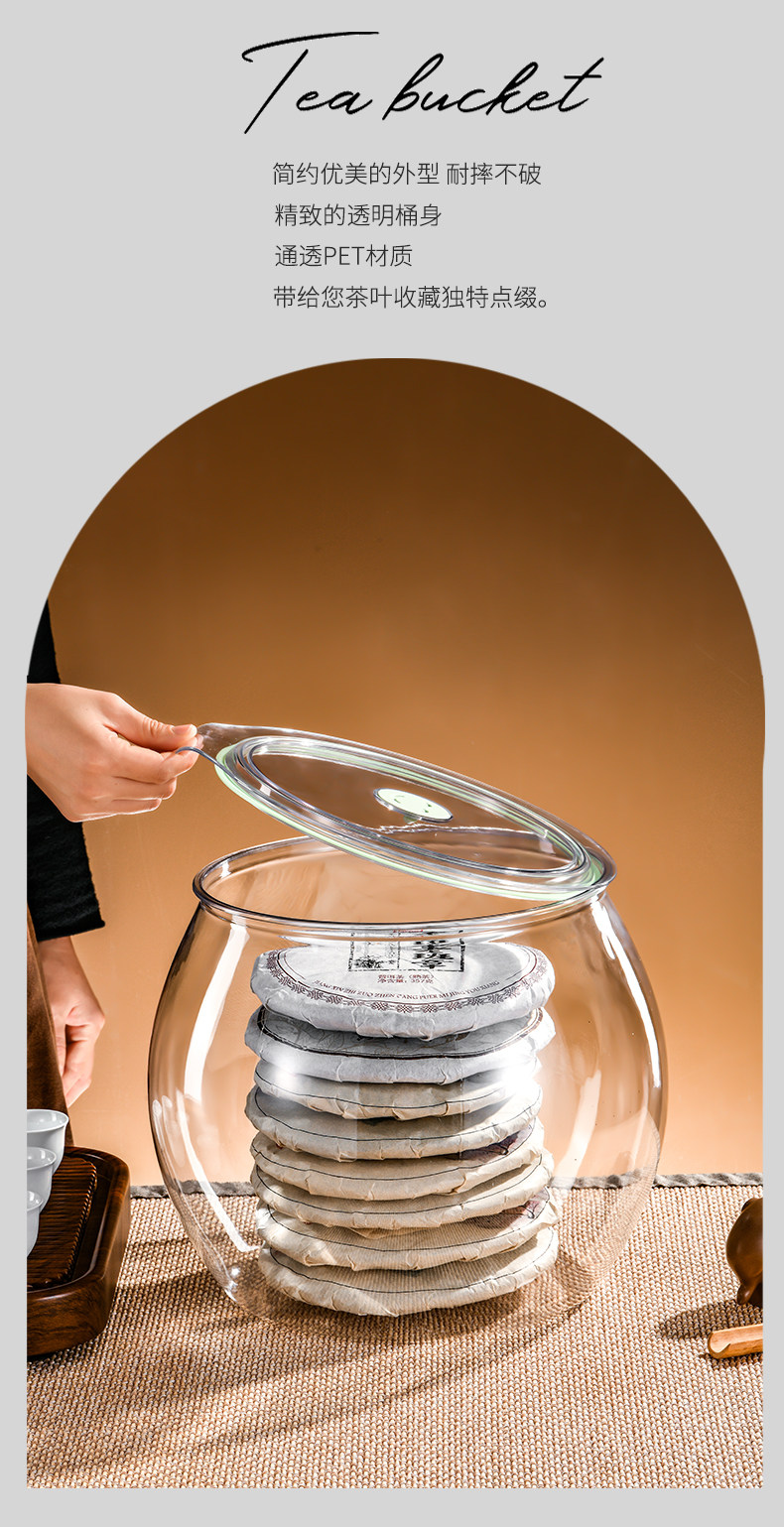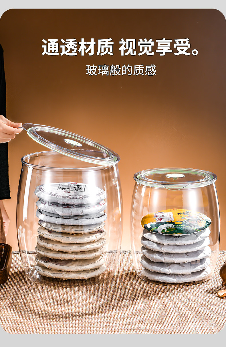 普洱茶收纳盒透明密封防潮白茶七饼罐茶叶桶茶缸大容量茶饼储存罐