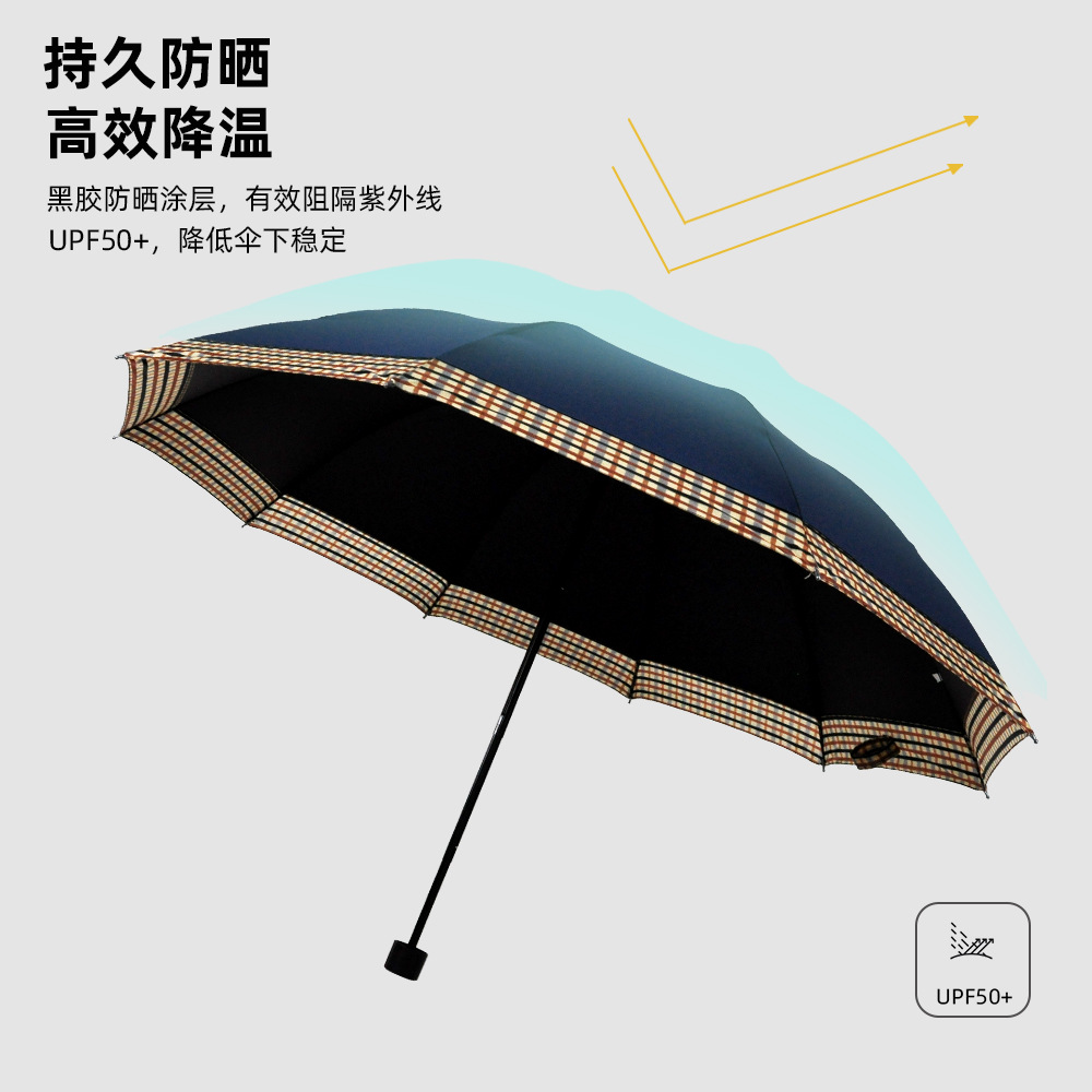天鹭十骨增大格纹拼接三折遮阳伞晴雨两用太阳伞防晒黑胶防紫外线