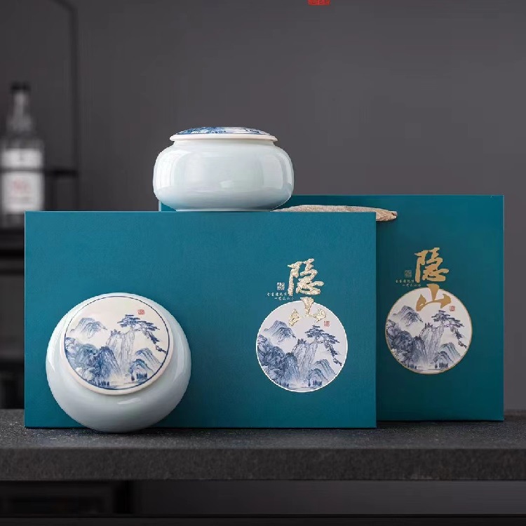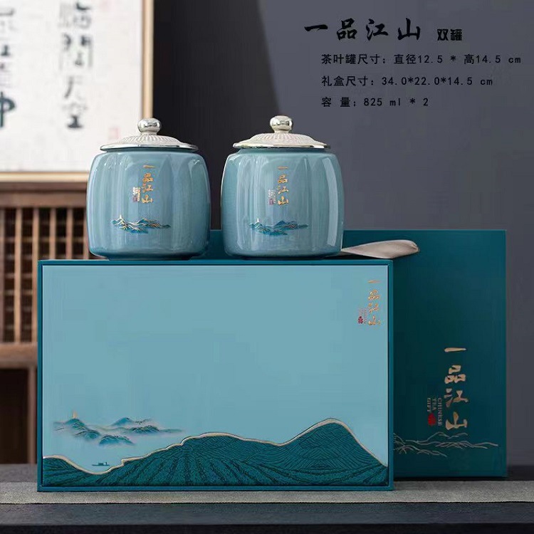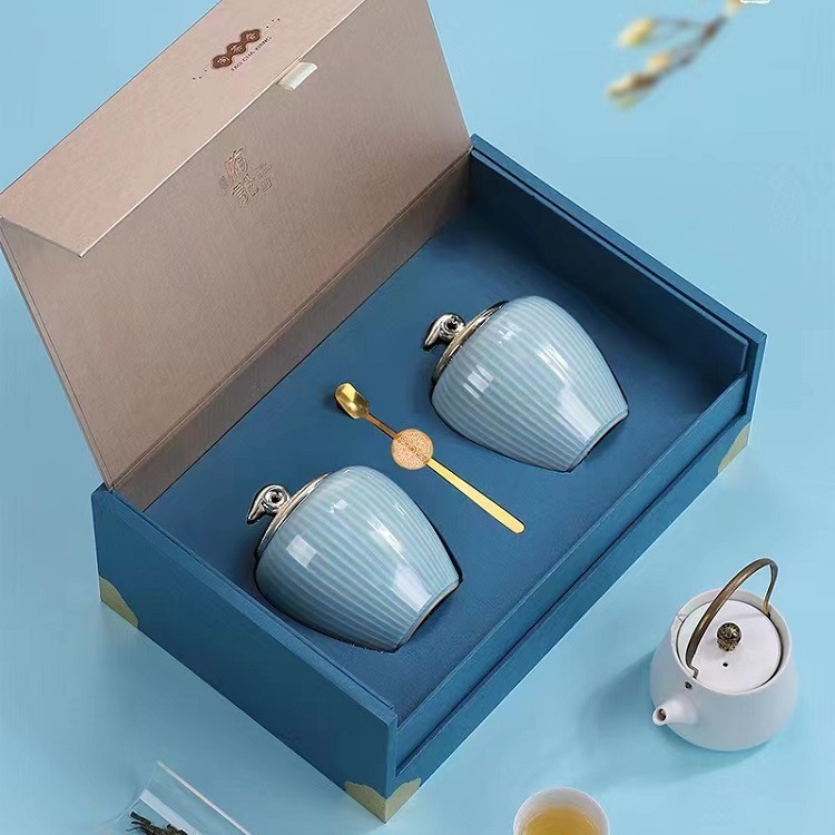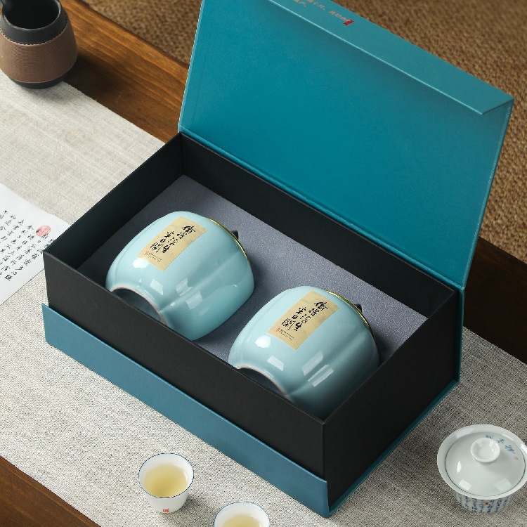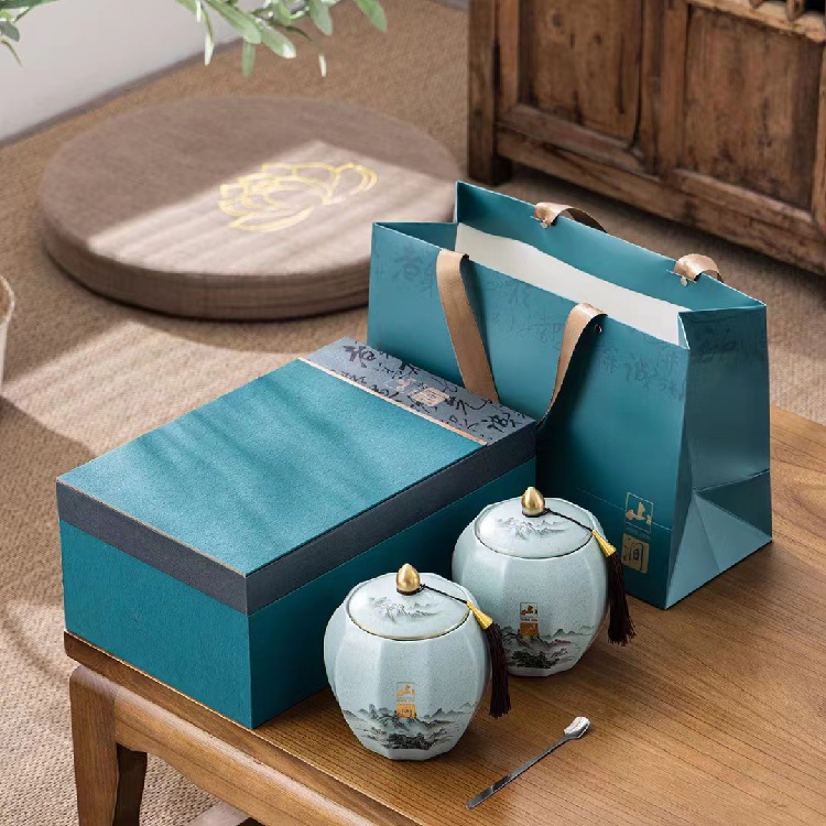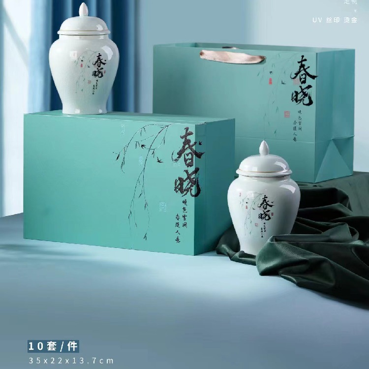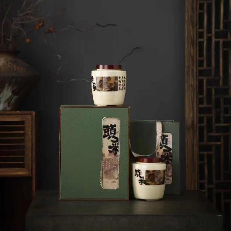 绿茶茶叶盒双瓷装陶瓷茶叶包装木质礼盒绿茶礼盒清新