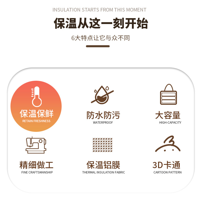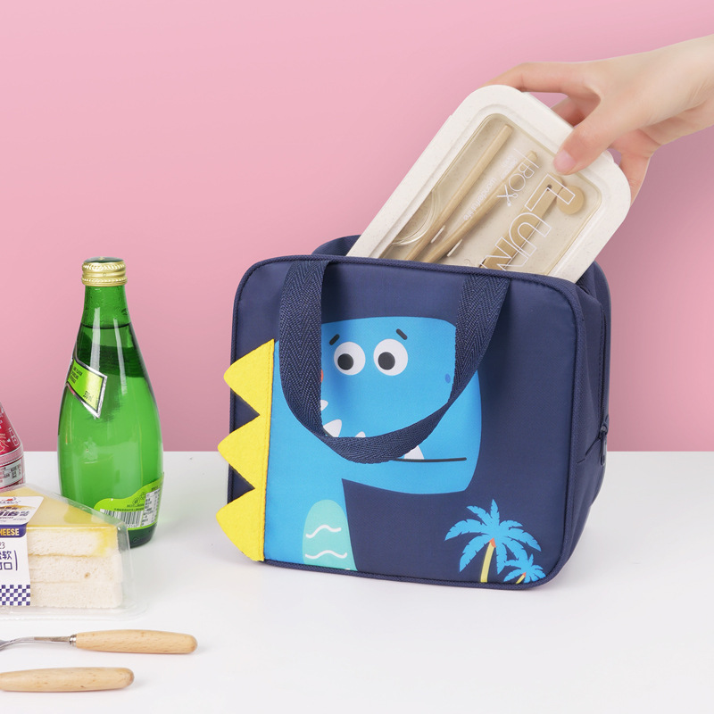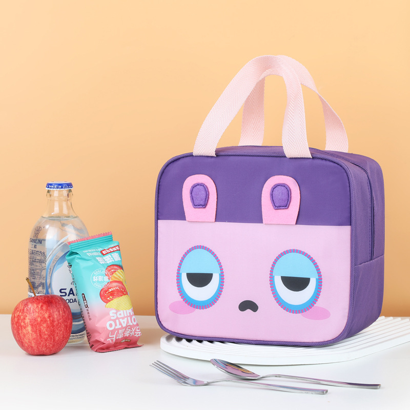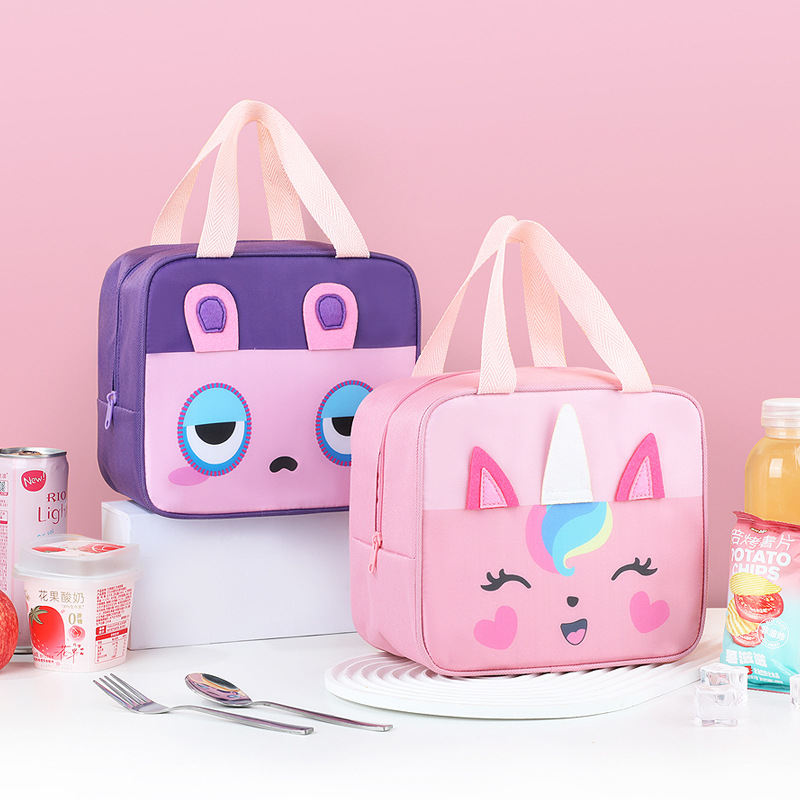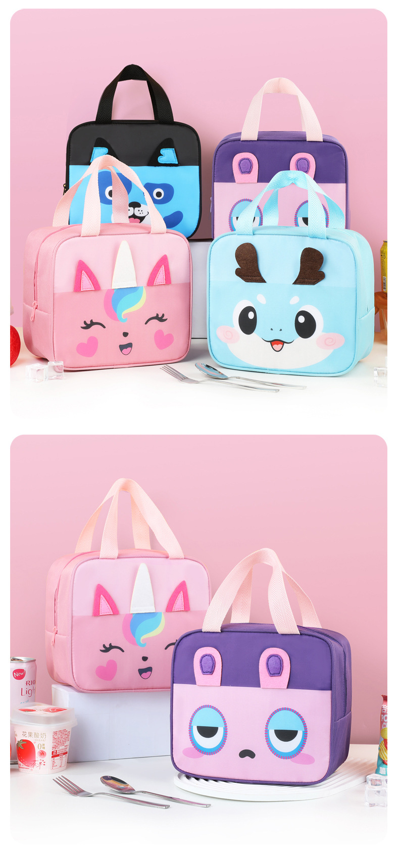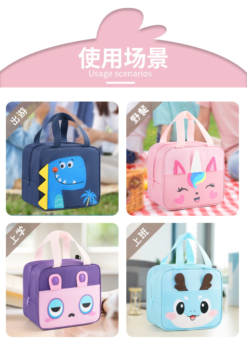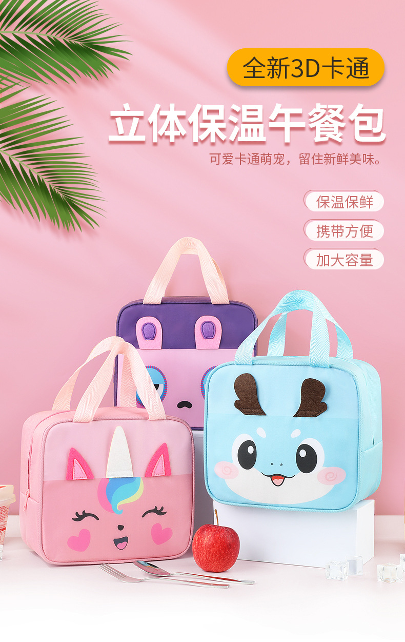 可爱卡通萌趣饭盒包方形手提袋立体保鲜冰包大容量学生午餐便当包