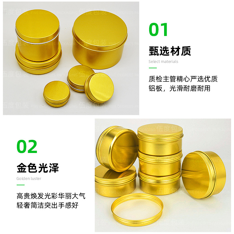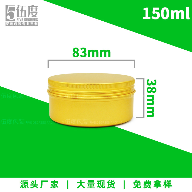 厂家现货150ml 金色螺纹铝盒 车蜡茶叶盒 磨砂金圆形蜡烛香皂铝罐