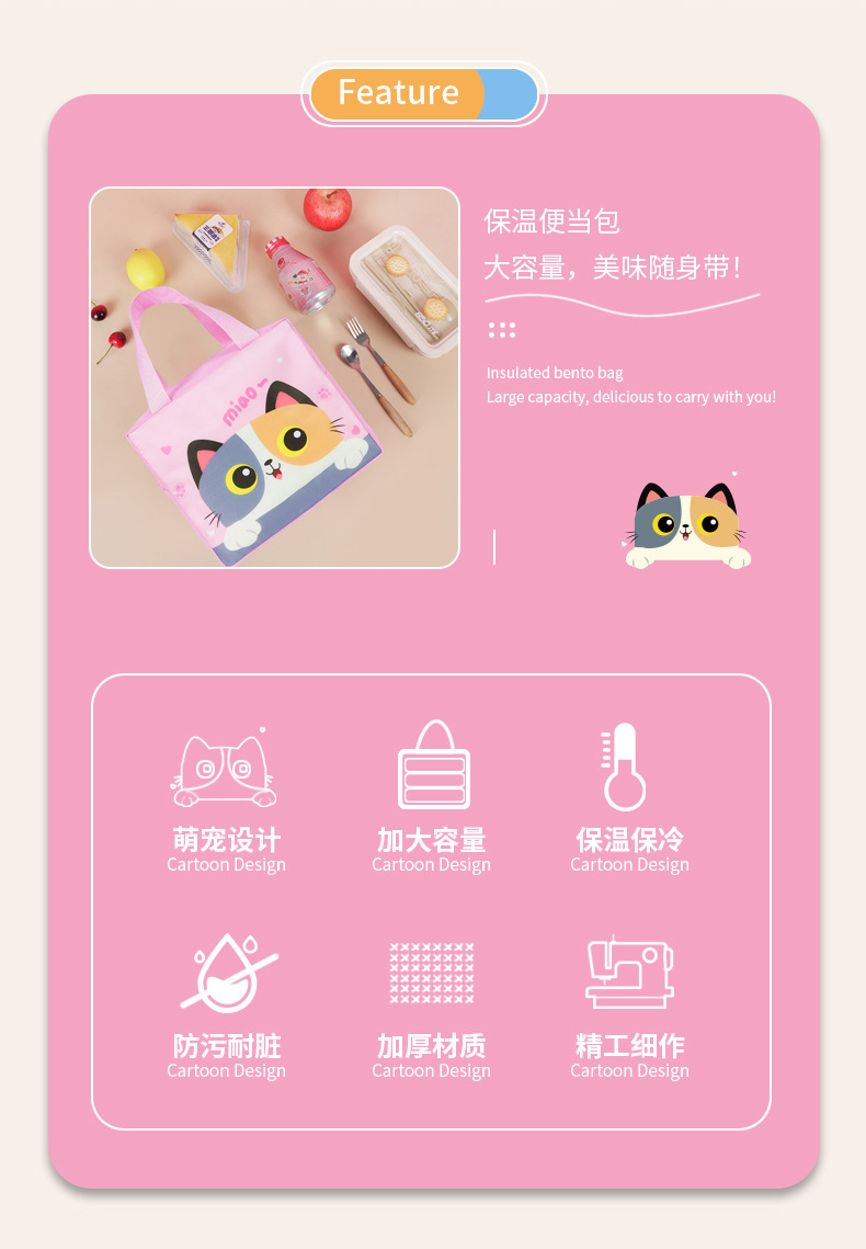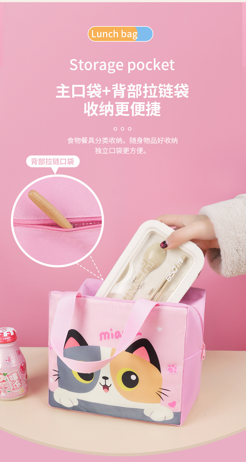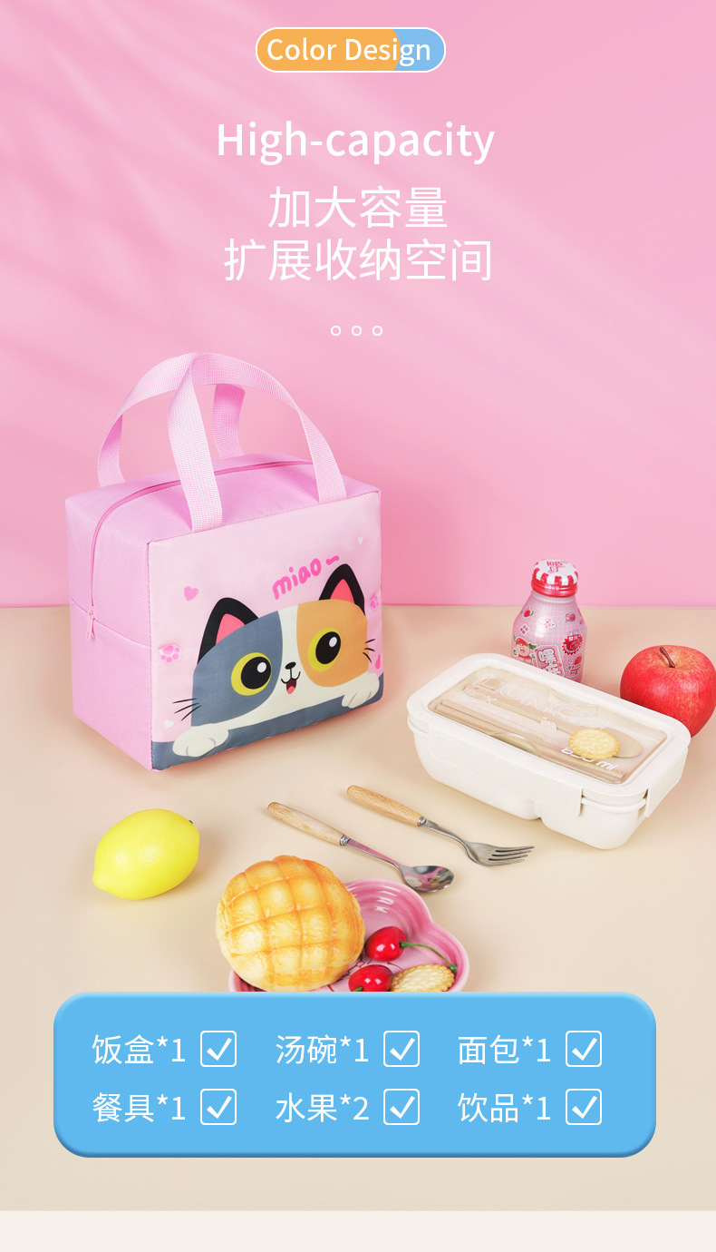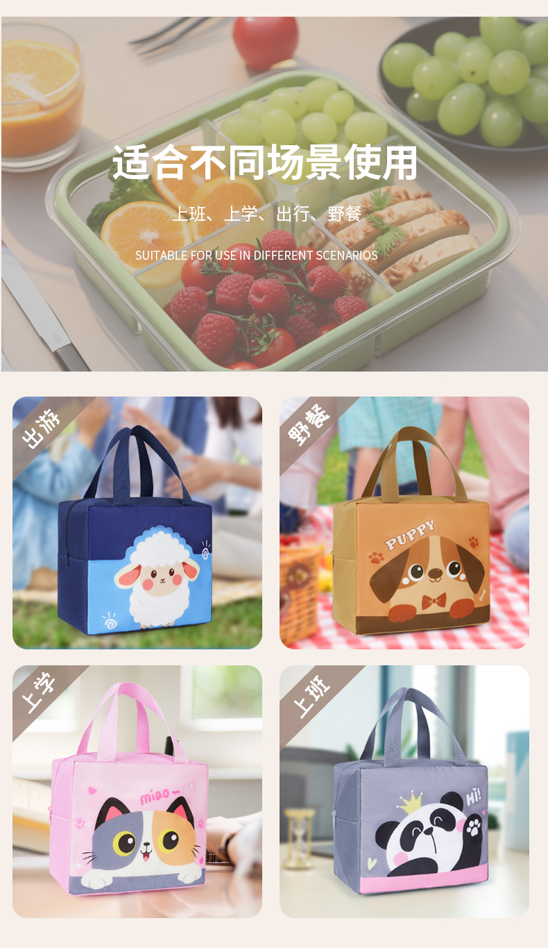 日系卡通手提包新款可爱学生带餐饭盒袋上班族便携保鲜保温便当包