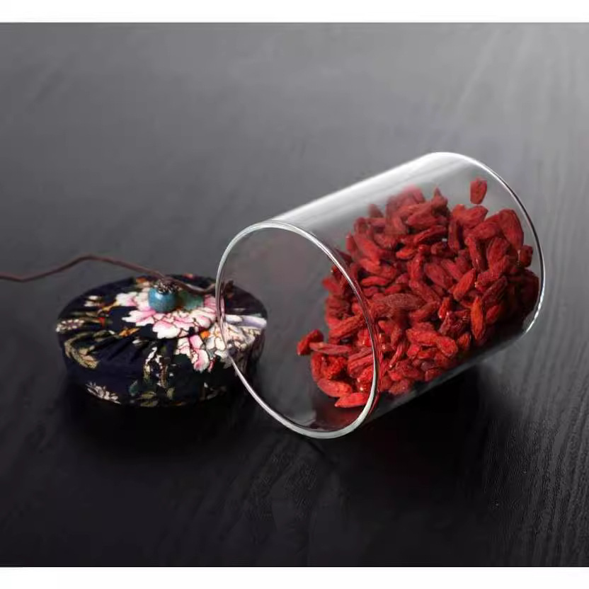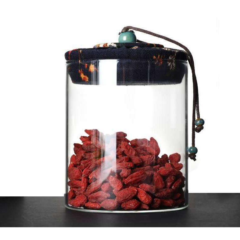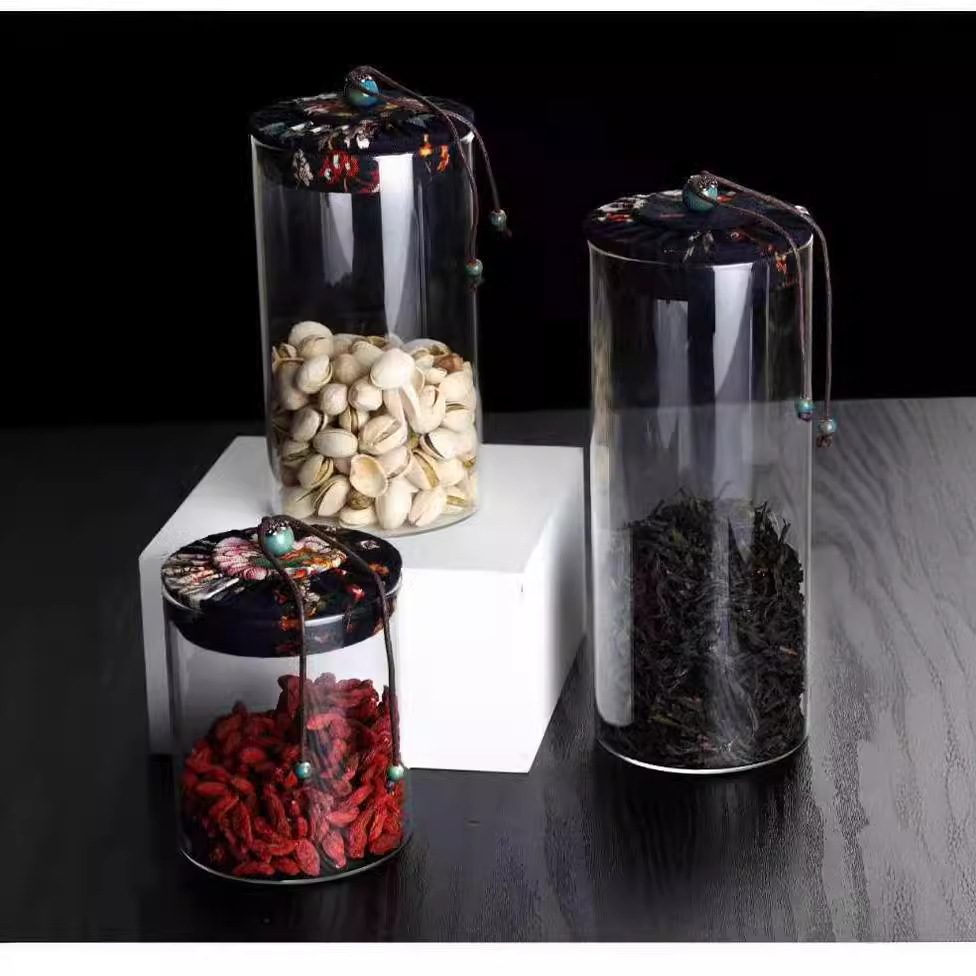 耐热玻璃茶叶罐 直身布盖干果杂粮花茶密封储物罐透明瓶子