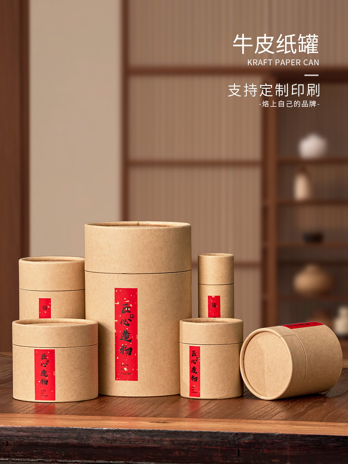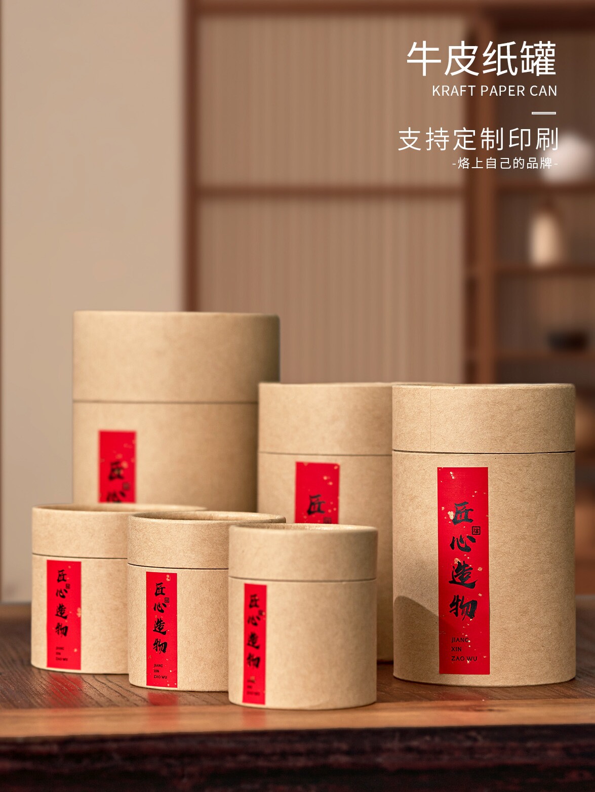 红茶茶叶罐纸罐散茶通用绿茶茶叶包装盒现货密封罐空盒牛皮纸