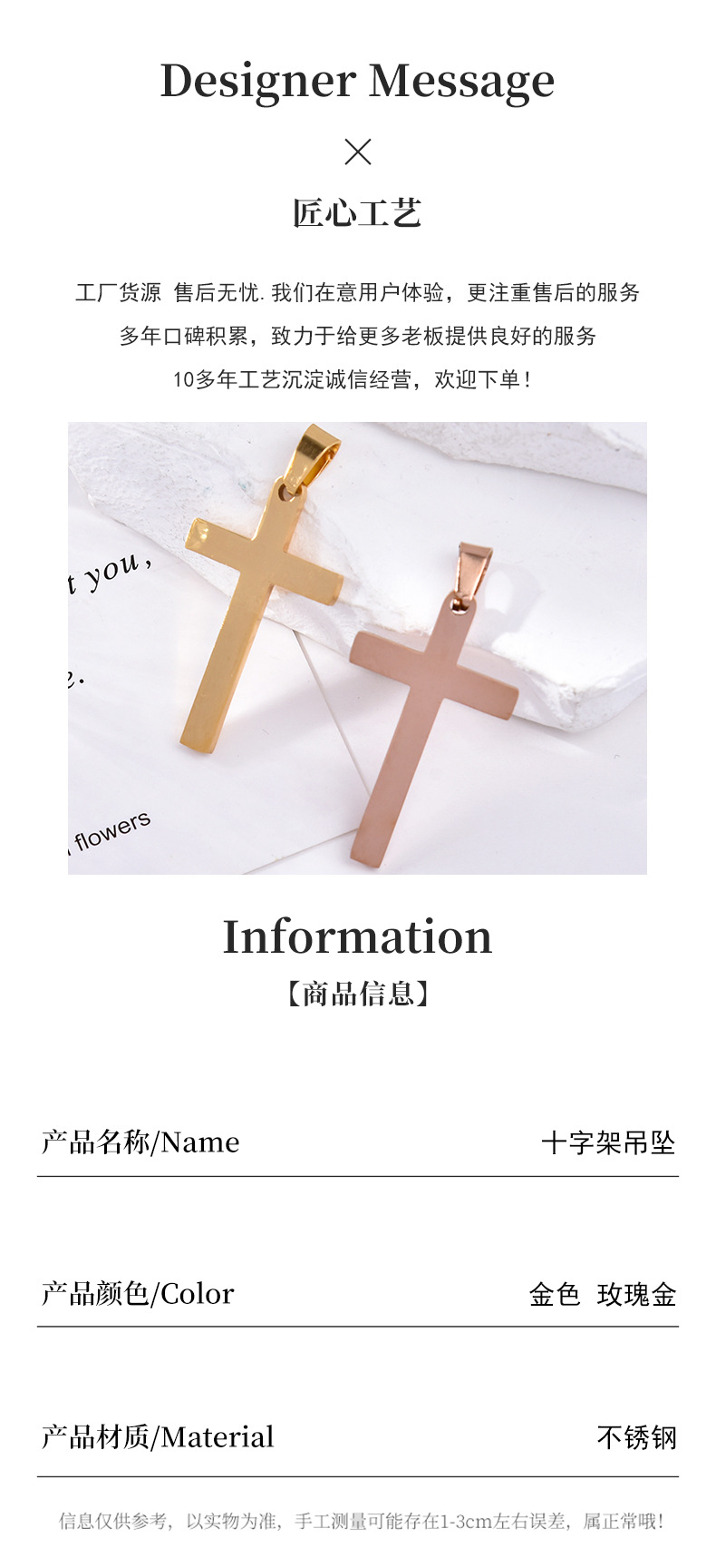 不锈钢十架DIY小挂件外贸热销不锈钢十字架小配件项链挂坠厂家批
