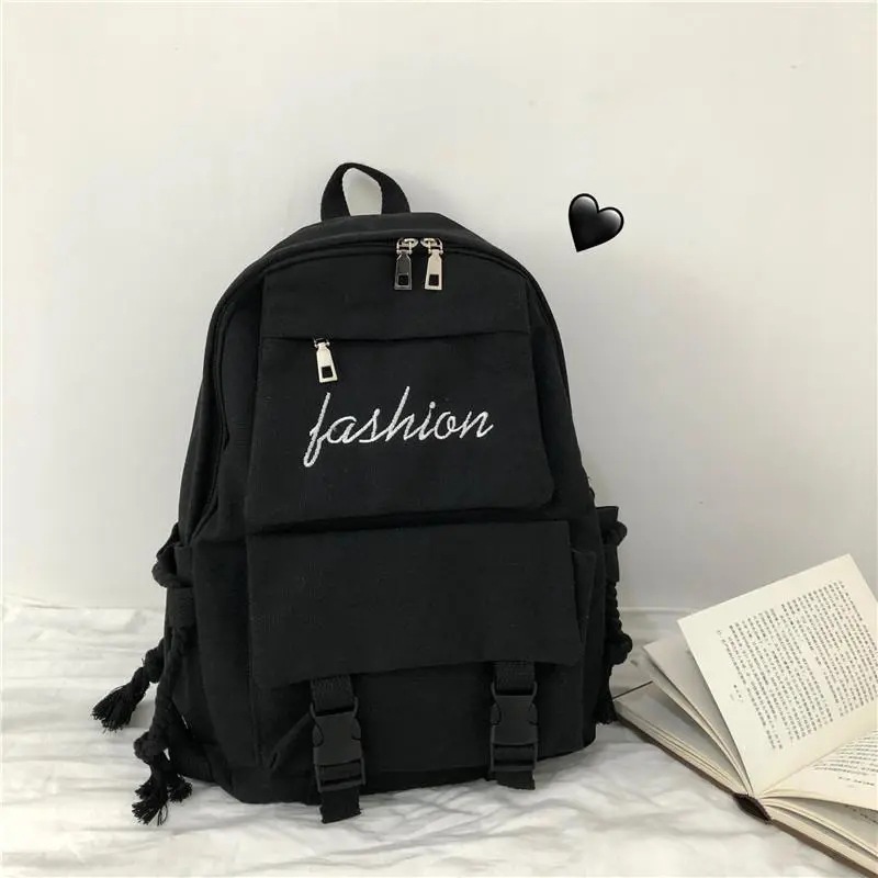 日系原宿暗黑少女学生书包 韩国ins港风复古工装双肩包帆布背包男