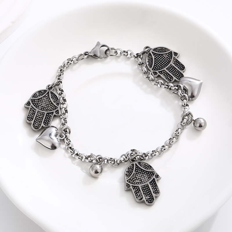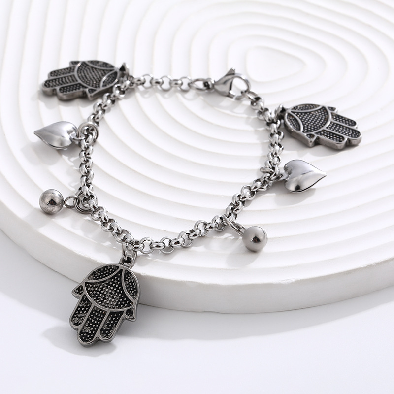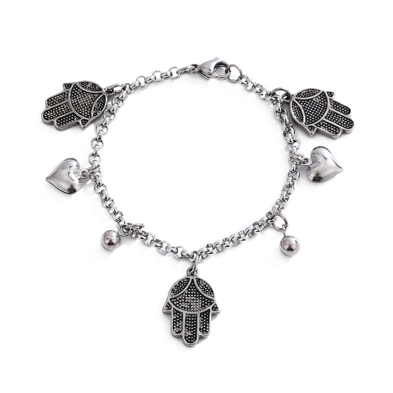 个性潮流吊坠装饰不锈钢手链 银色钛钢饰品手环链 男女首饰品批发