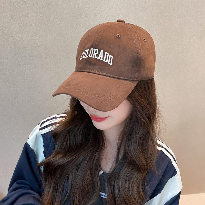 棒球帽女大头围字母磨毛新款春夏遮阳帽子显脸小刺绣防晒鸭舌帽男