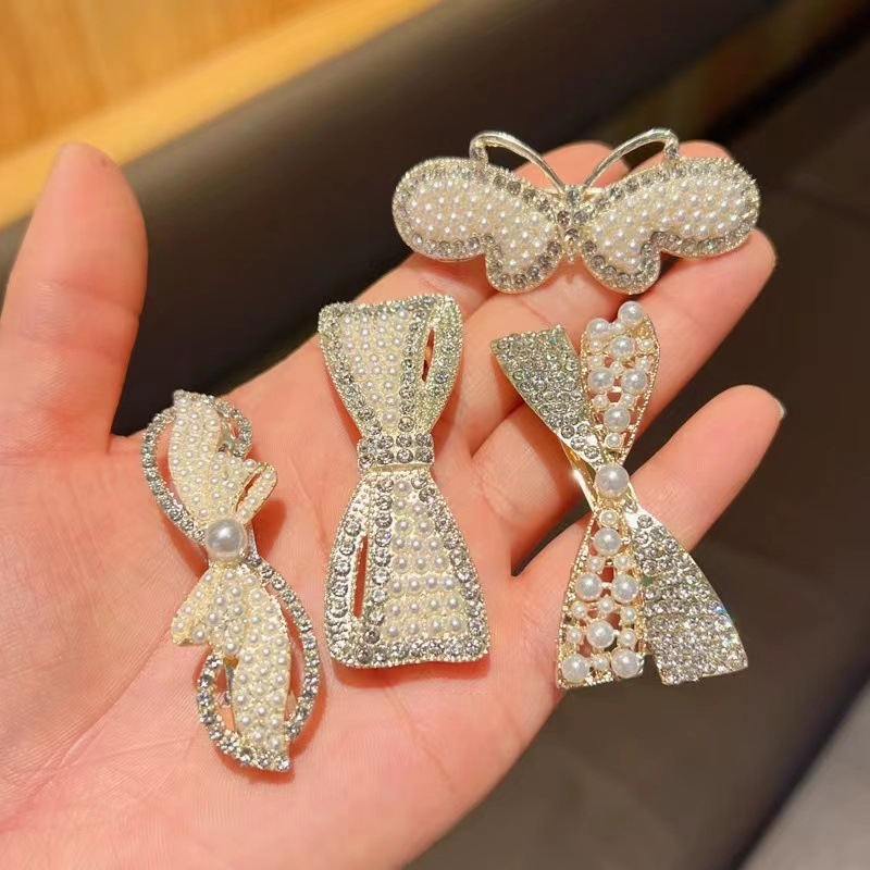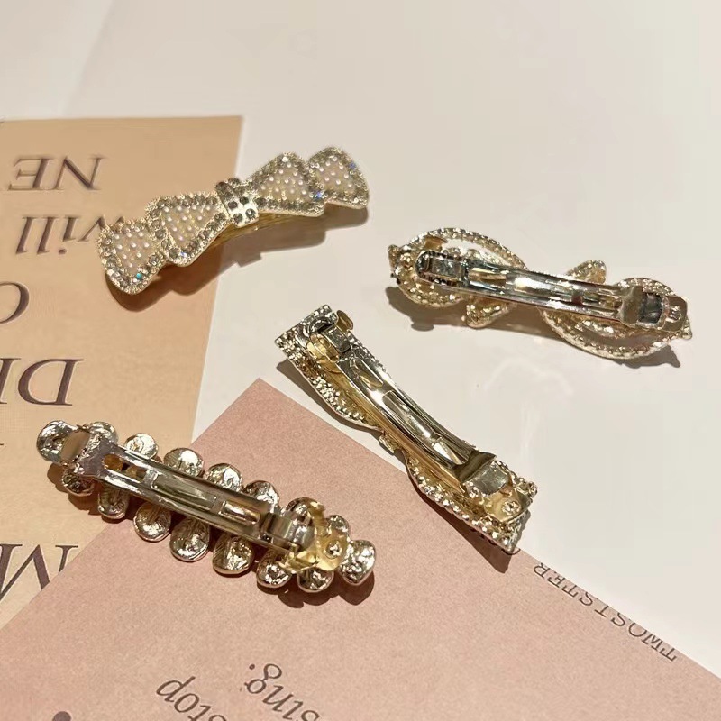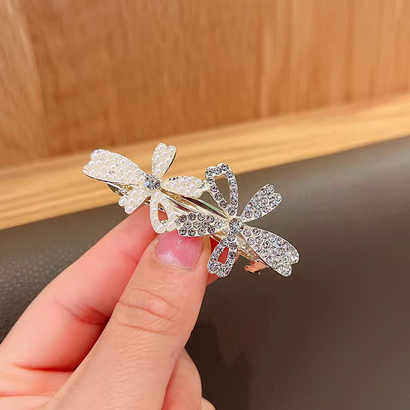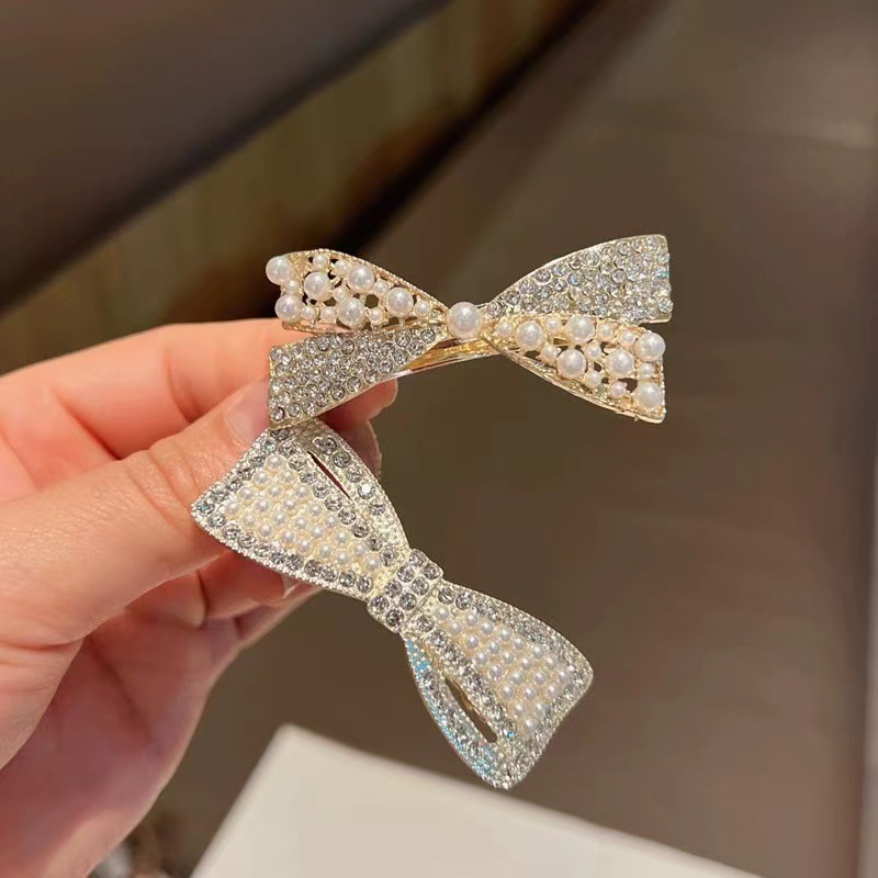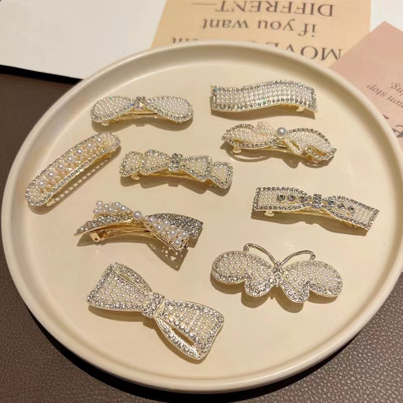 韩国发饰金属蝴蝶结弹簧夹珍珠水钻发夹夹子发卡