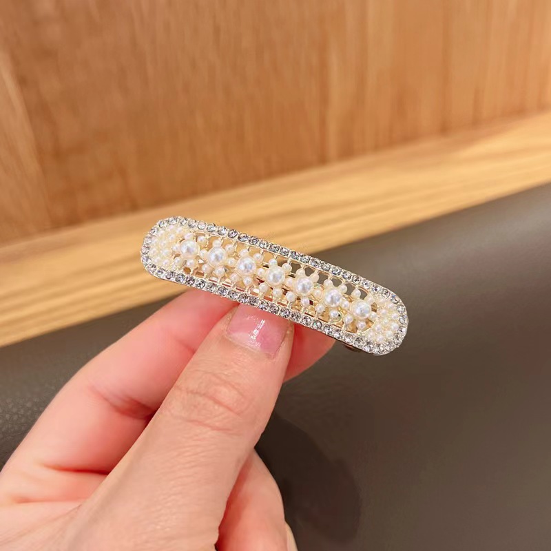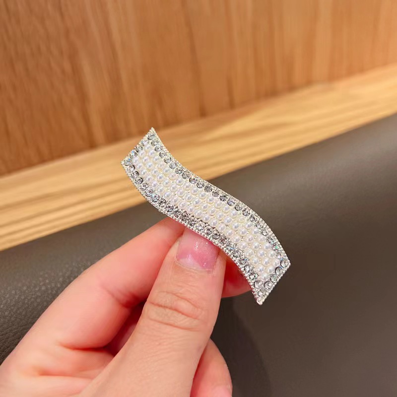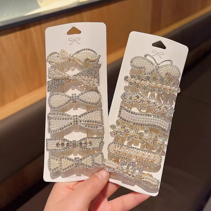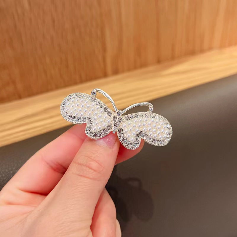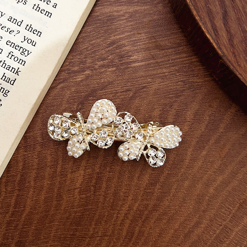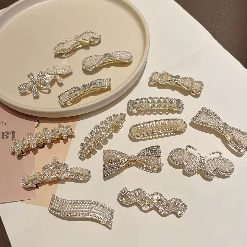 韩国发饰金属蝴蝶结弹簧夹珍珠水钻发夹夹子发卡