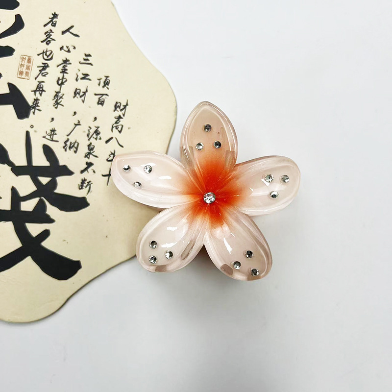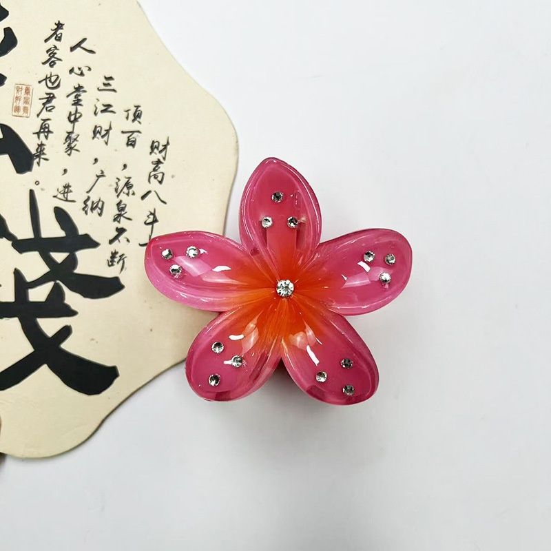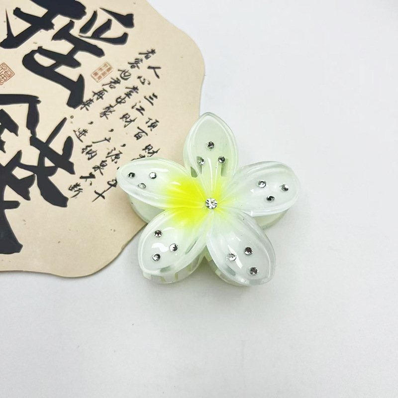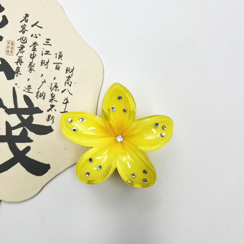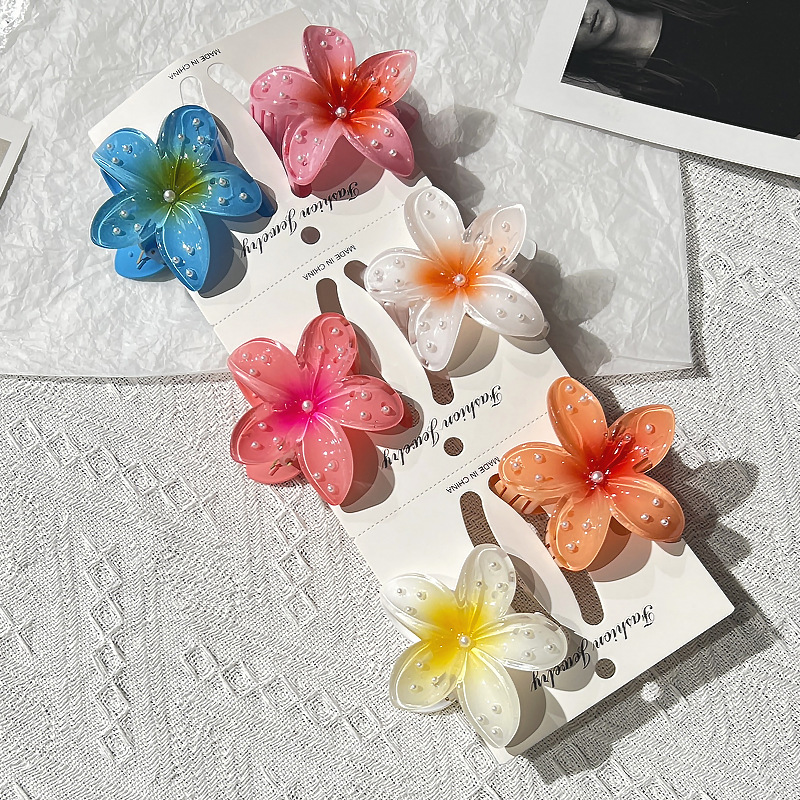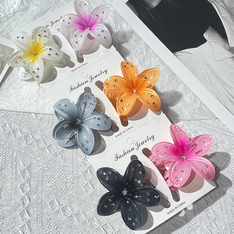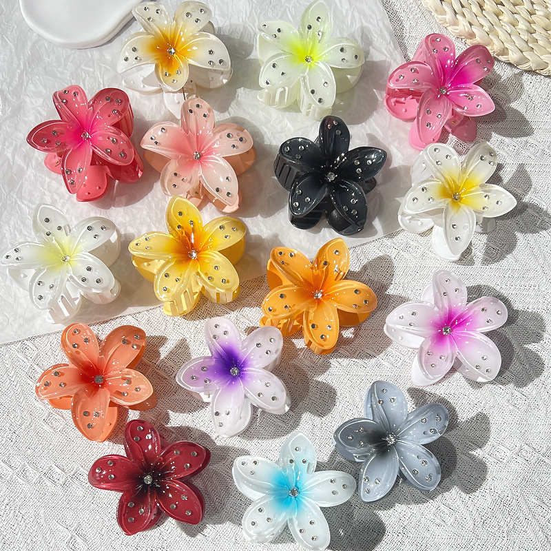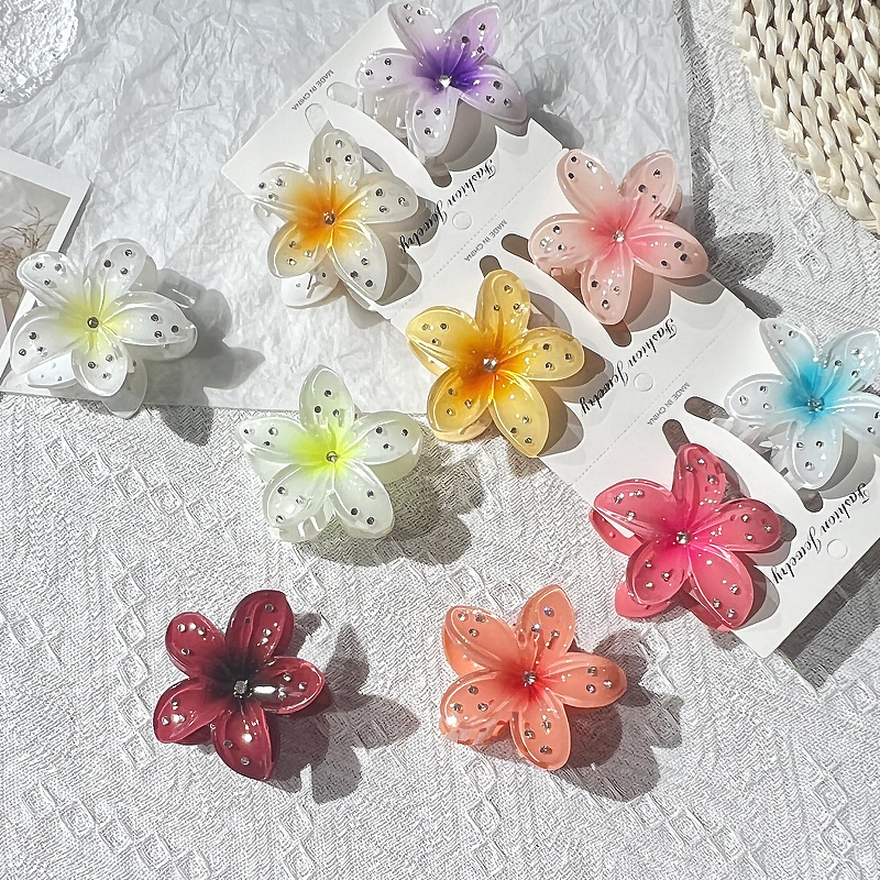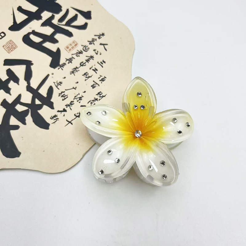 新款彩色鸡蛋花亚克力发夹花朵抓夹女士发饰侧抓鲨鱼夹