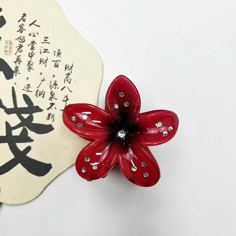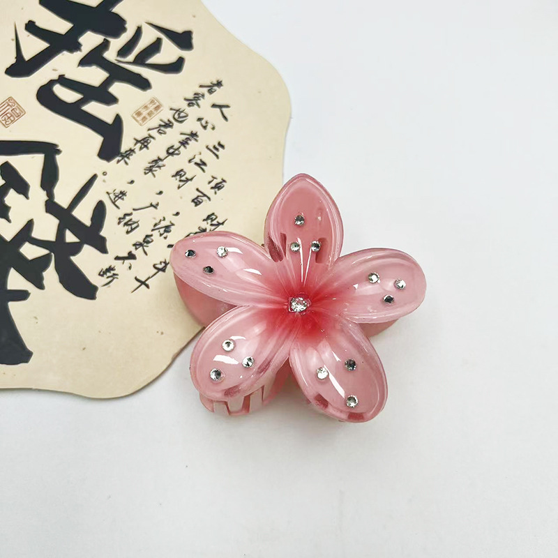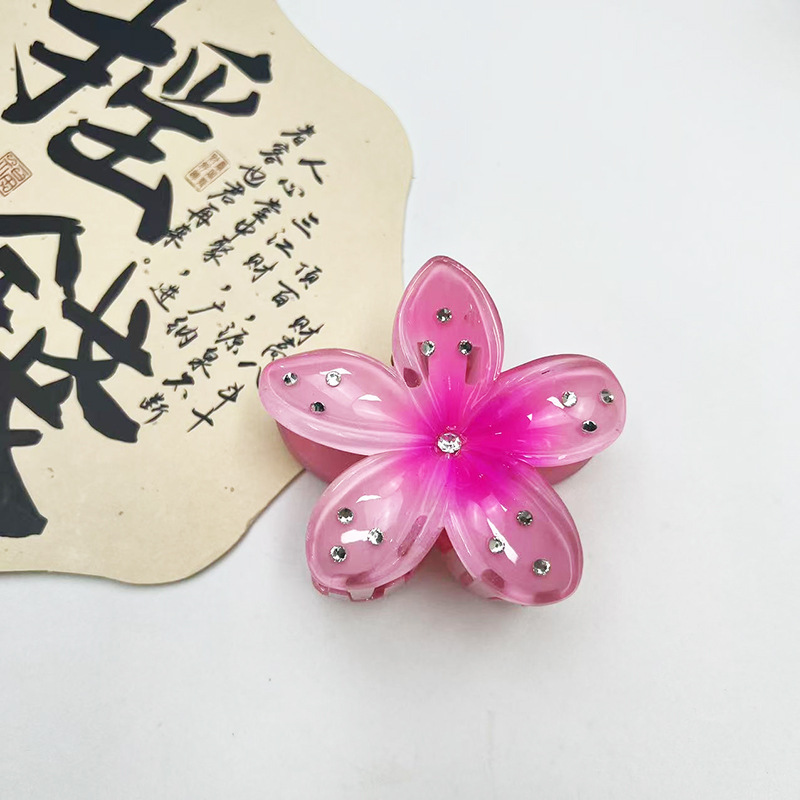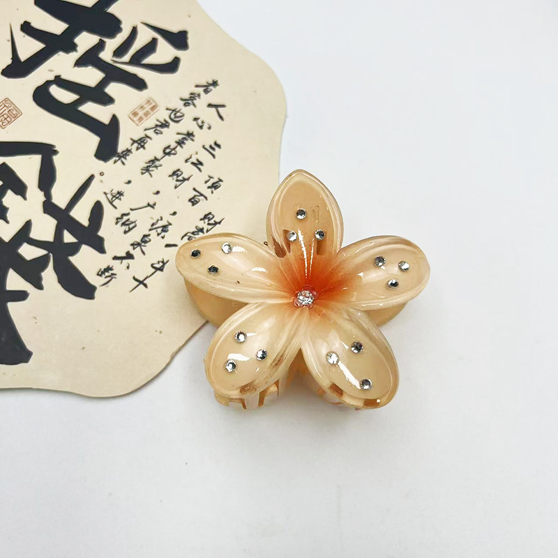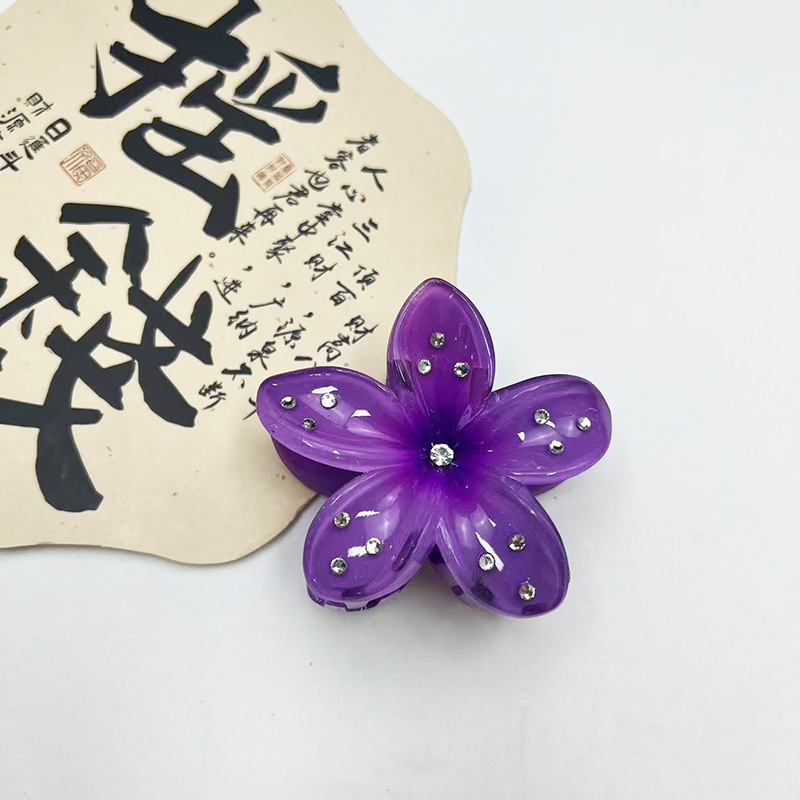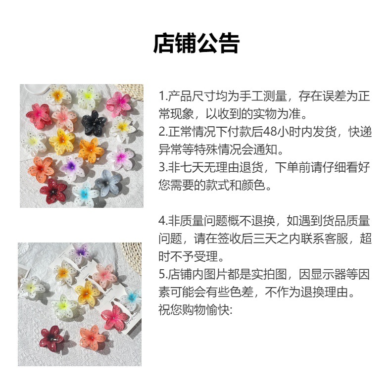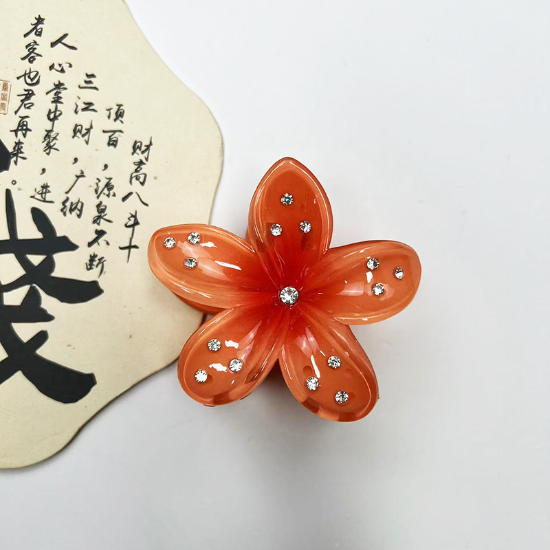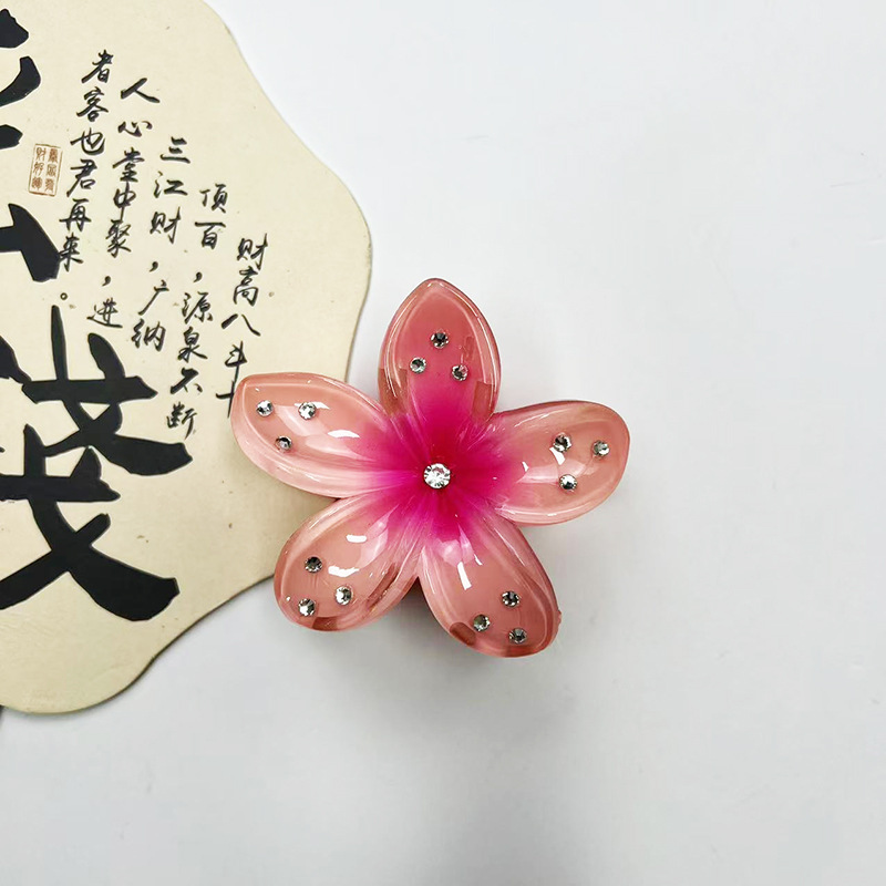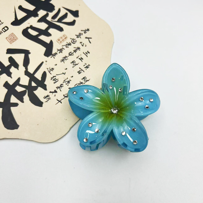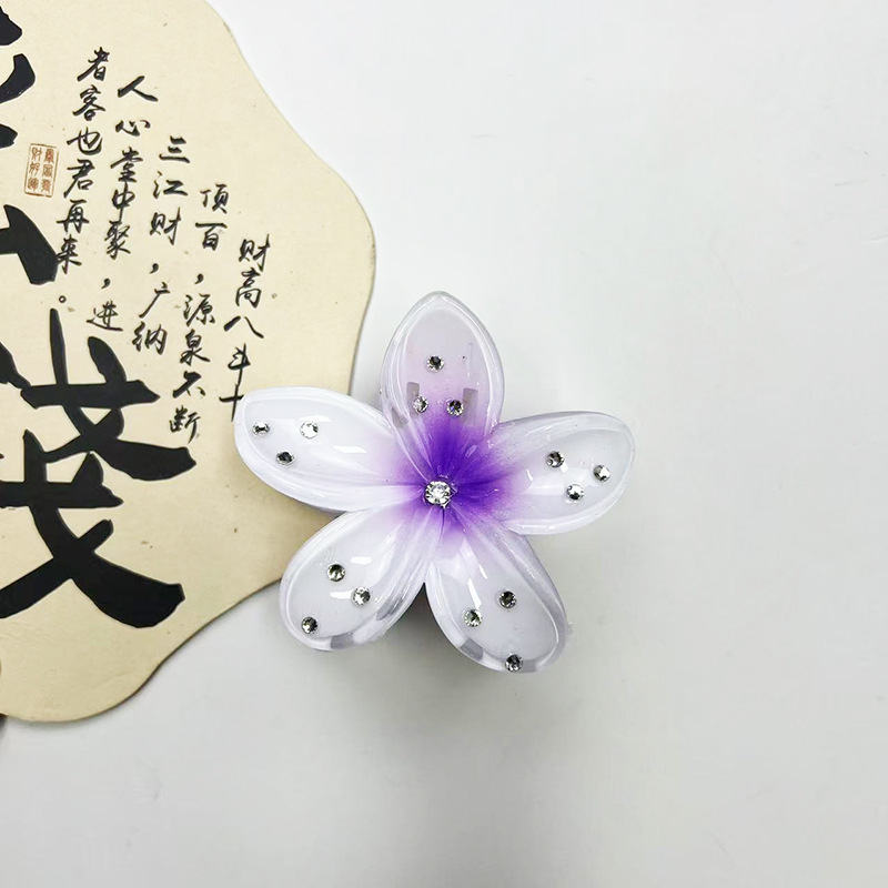 新款彩色鸡蛋花亚克力发夹花朵抓夹女士发饰侧抓鲨鱼夹