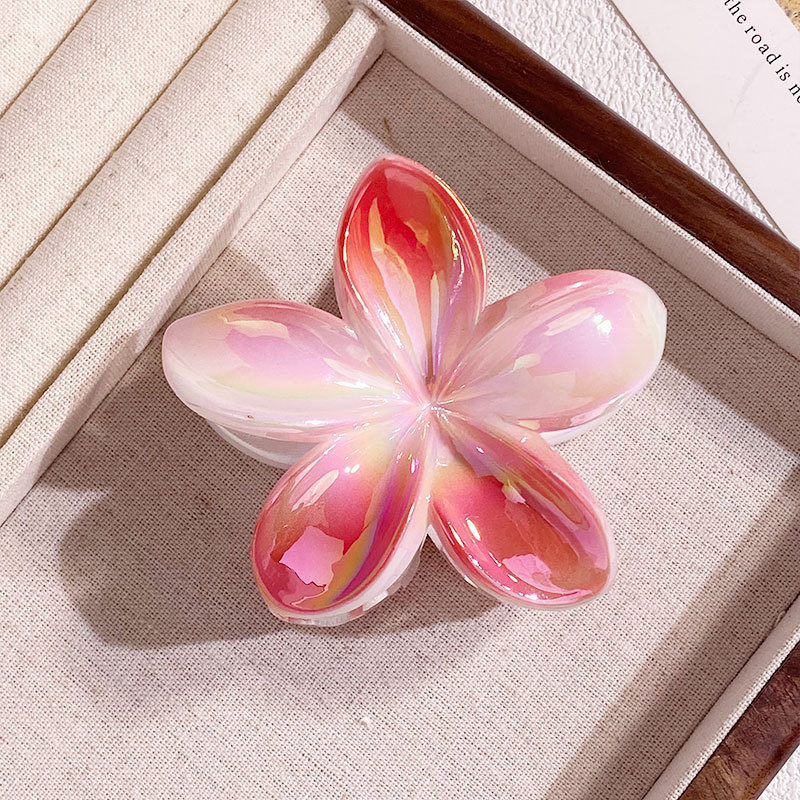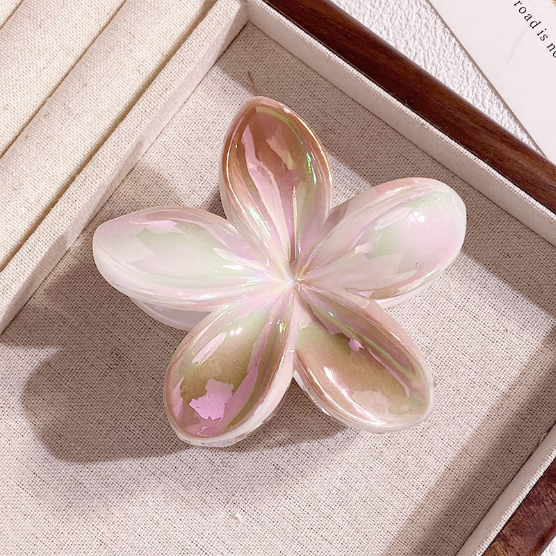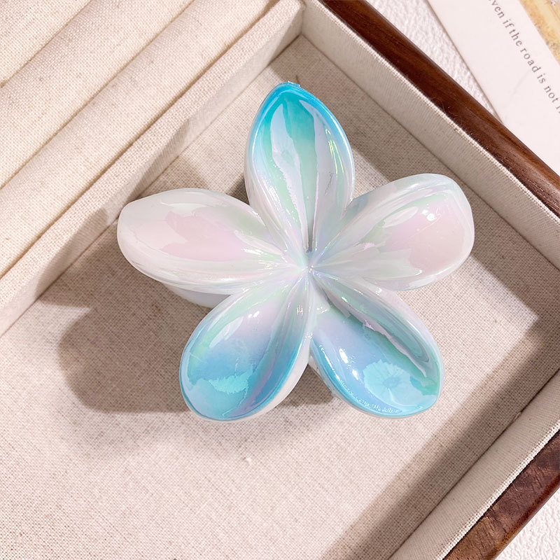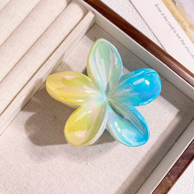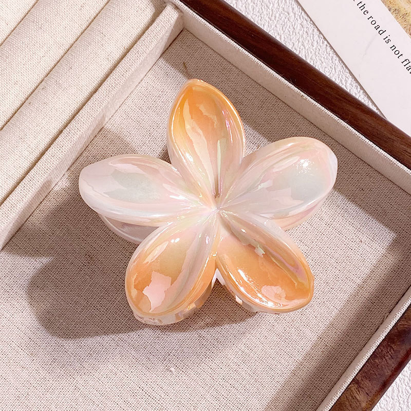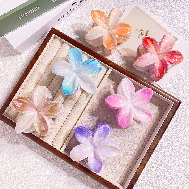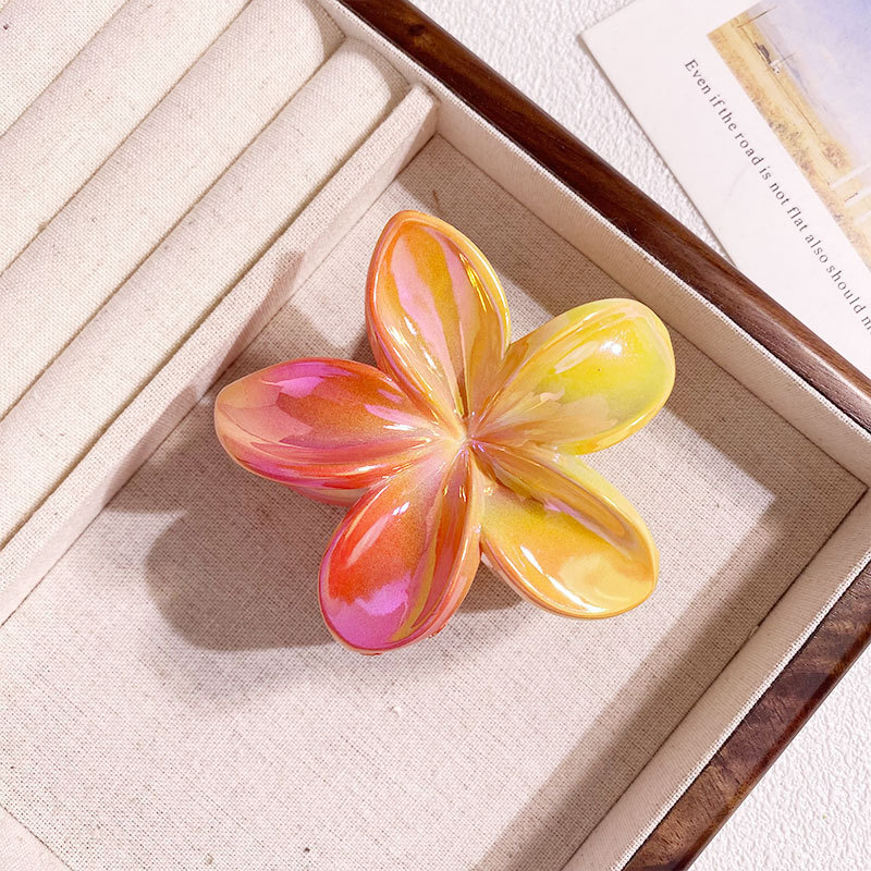 欧美跨境鸡蛋花发夹AB彩色花朵抓夹电镀女士发饰半抓鲨鱼夹