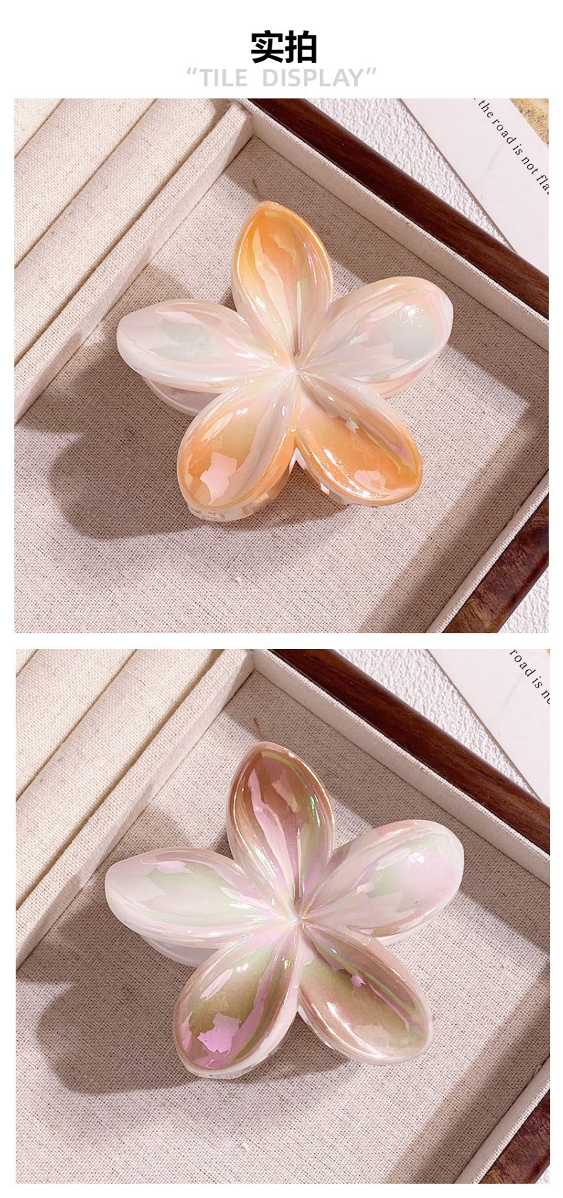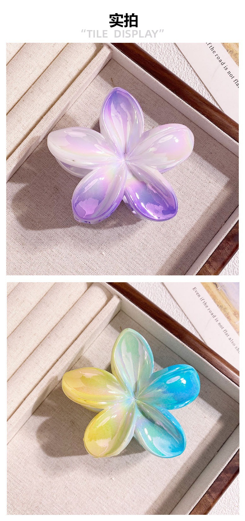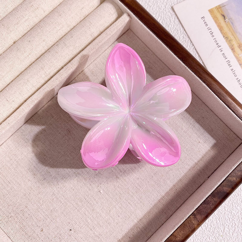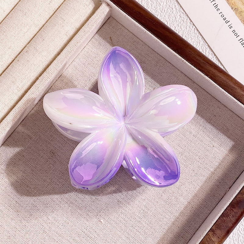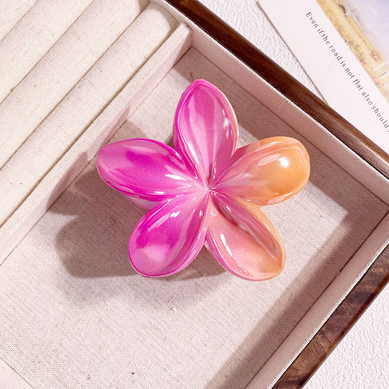 欧美跨境鸡蛋花发夹AB彩色花朵抓夹电镀女士发饰半抓鲨鱼夹