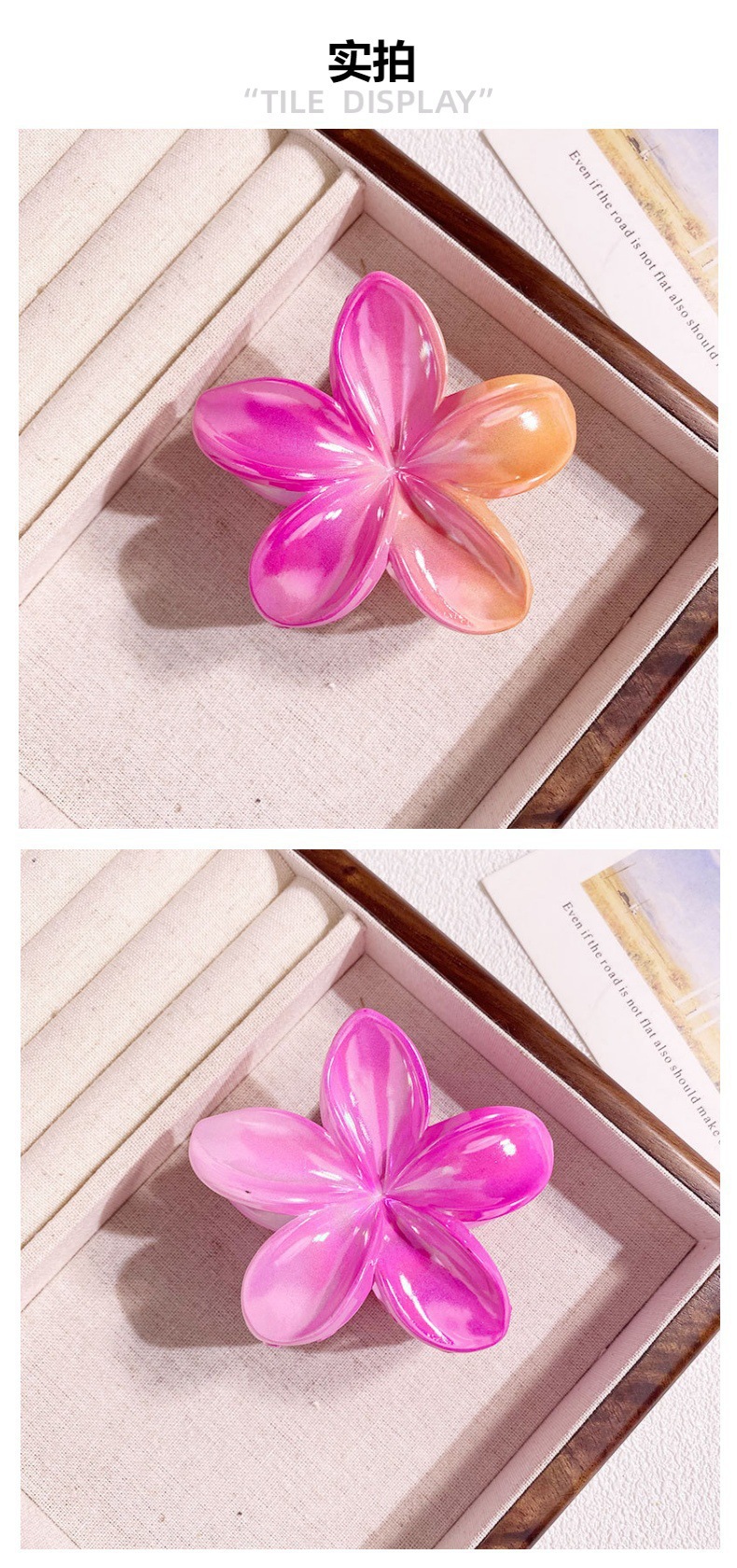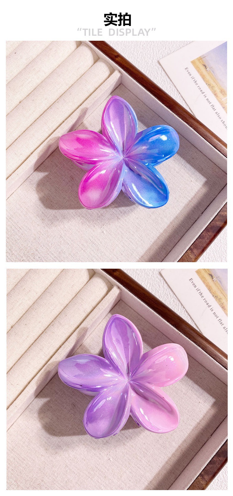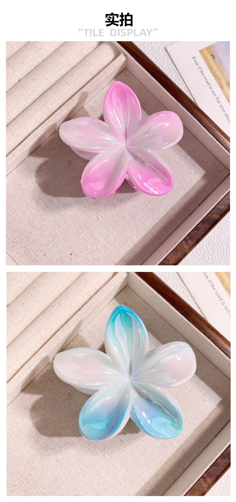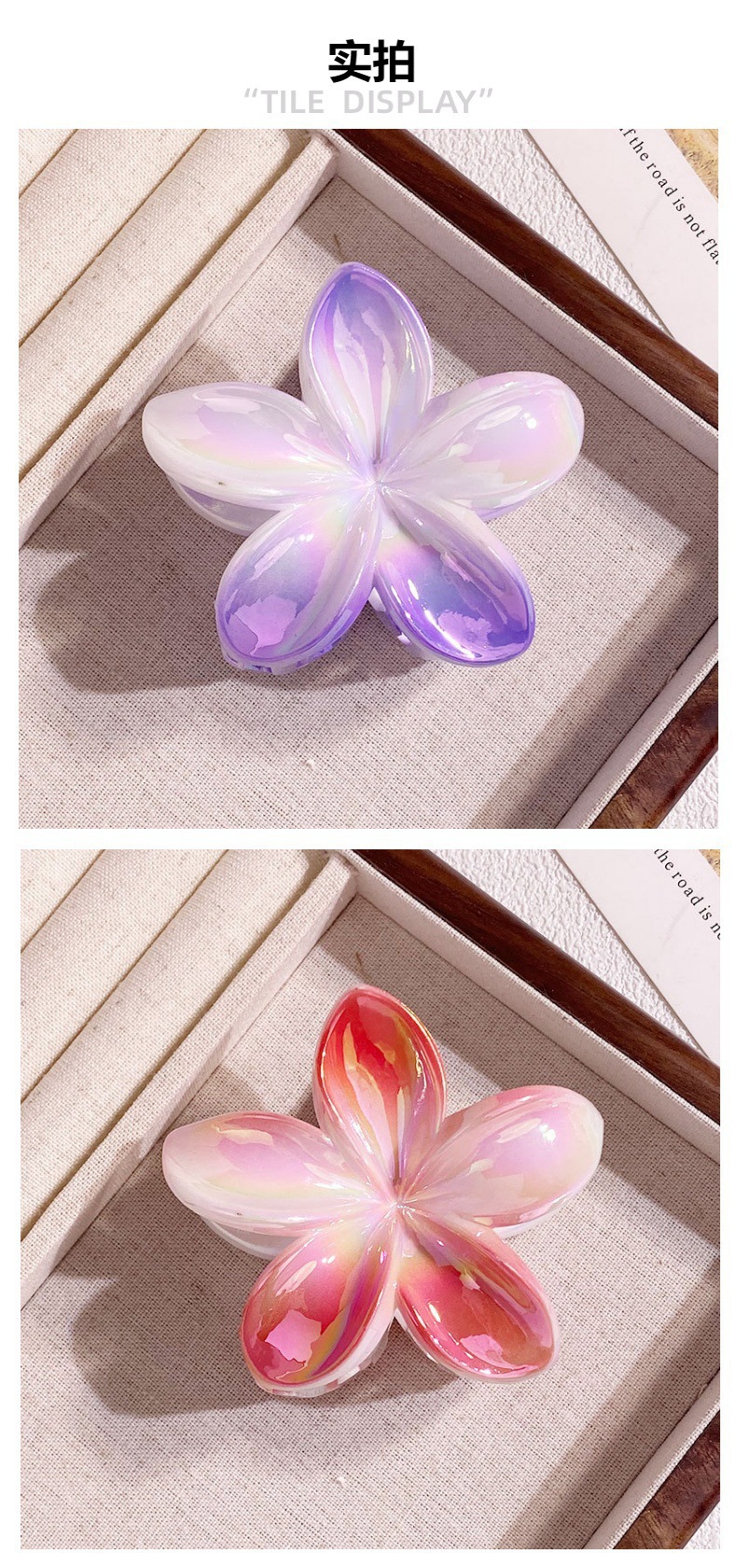 欧美跨境鸡蛋花发夹AB彩色花朵抓夹电镀女士发饰半抓鲨鱼夹