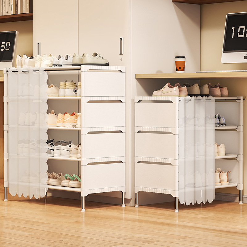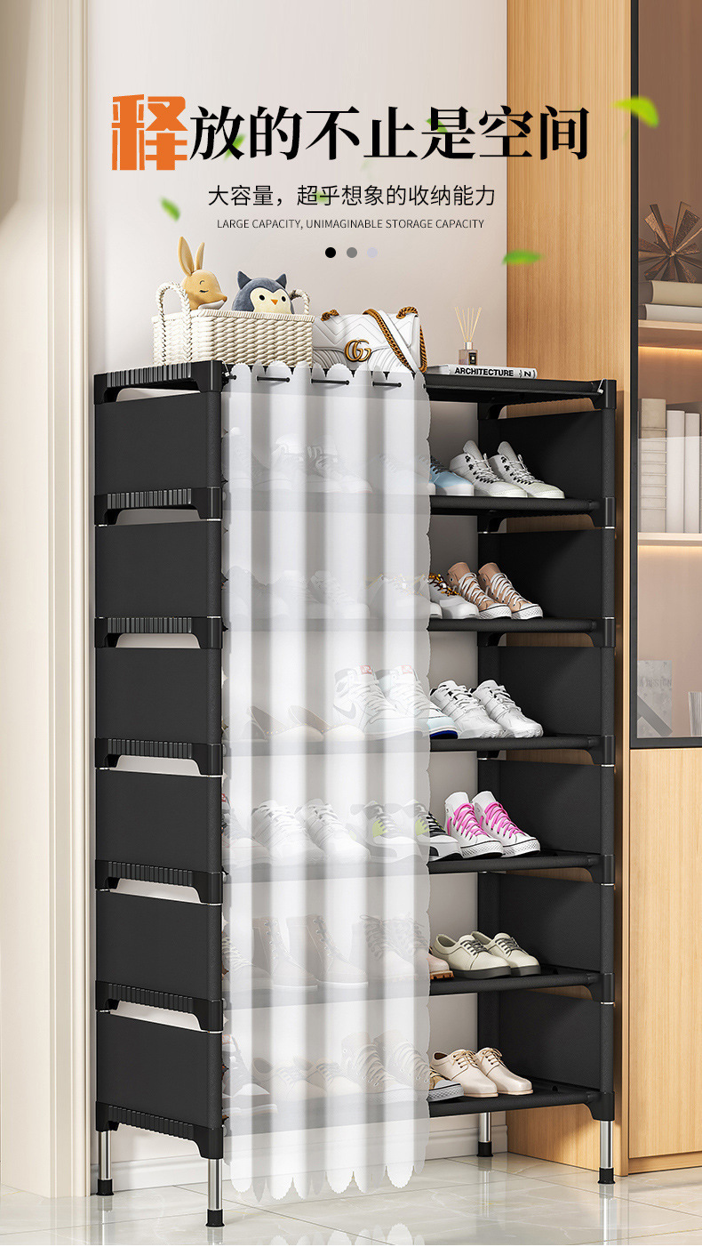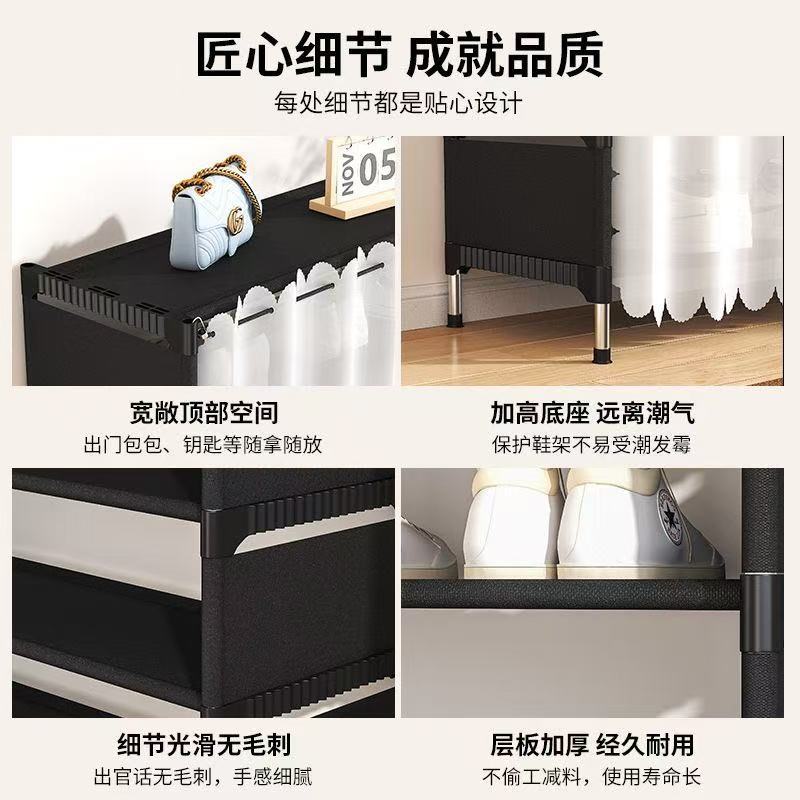 鞋架子简易出租屋门口家用一体挂衣架多层收纳鞋柜落地衣帽架租房