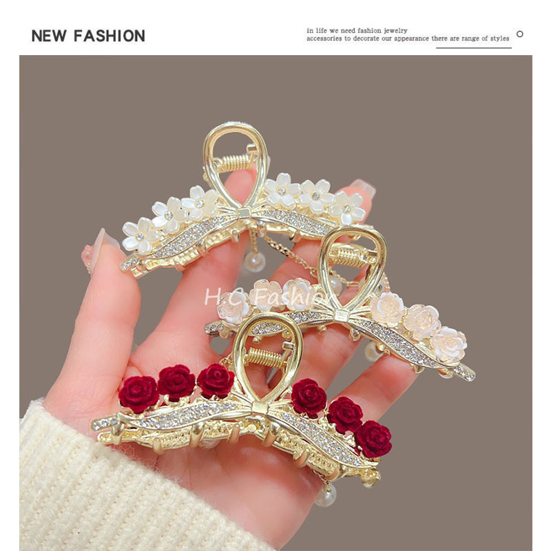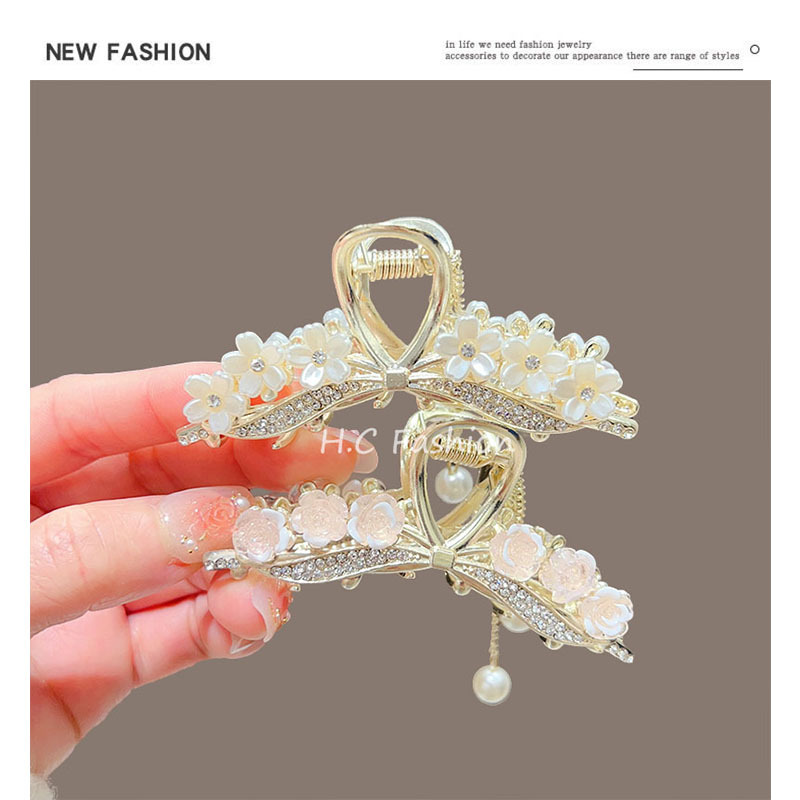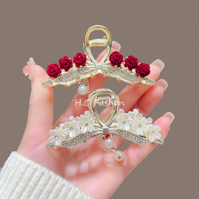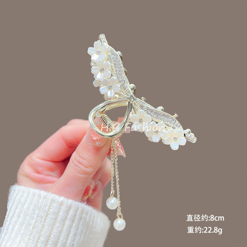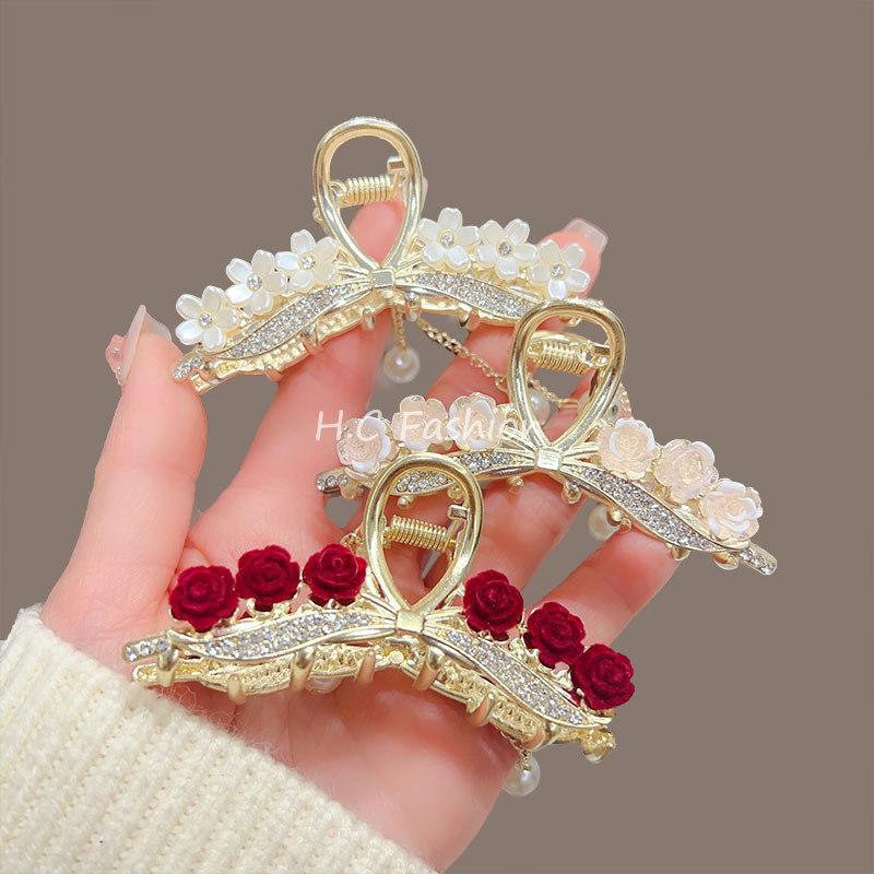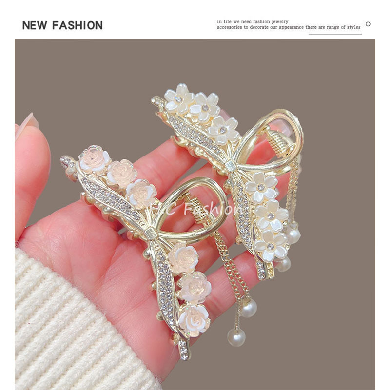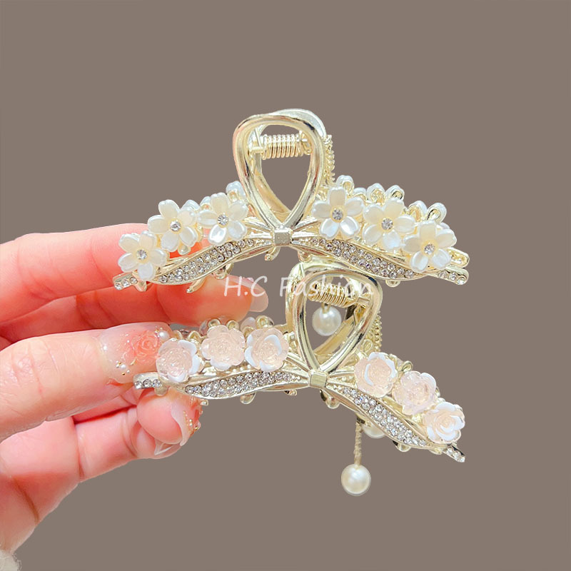 花朵抓夹珍珠流苏发卡盘发中号鲨鱼夹发抓头饰品