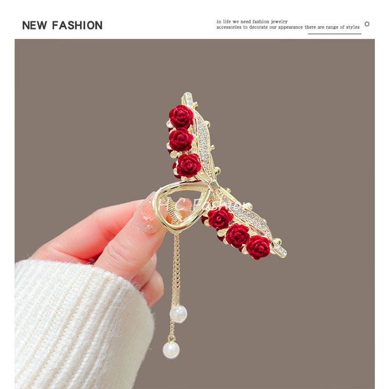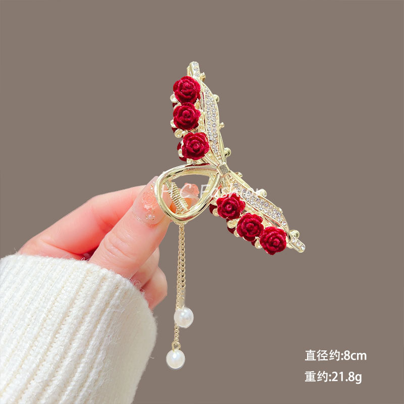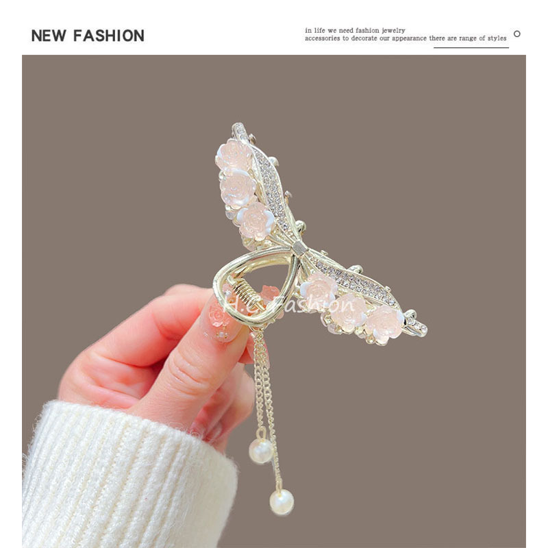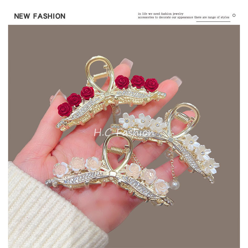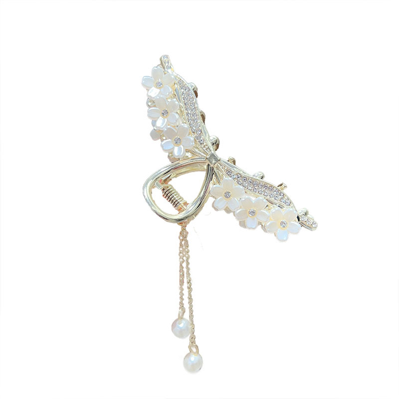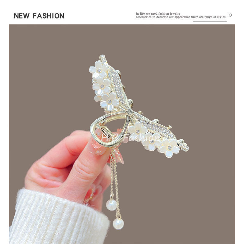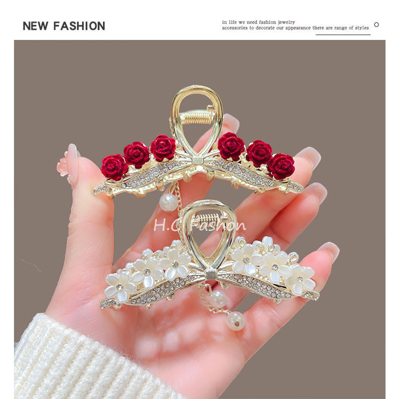 花朵抓夹珍珠流苏发卡盘发中号鲨鱼夹发抓头饰品