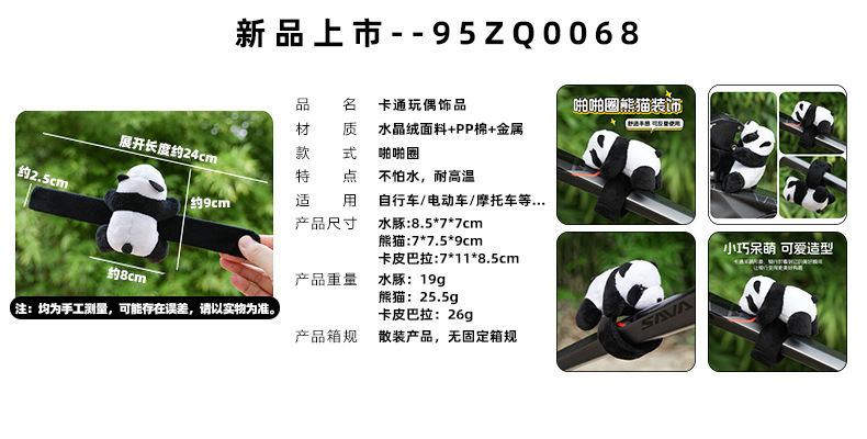 自行车卡通网红趴趴熊猫山地公路车前梁毛绒趴趴熊猫骑行装备配件