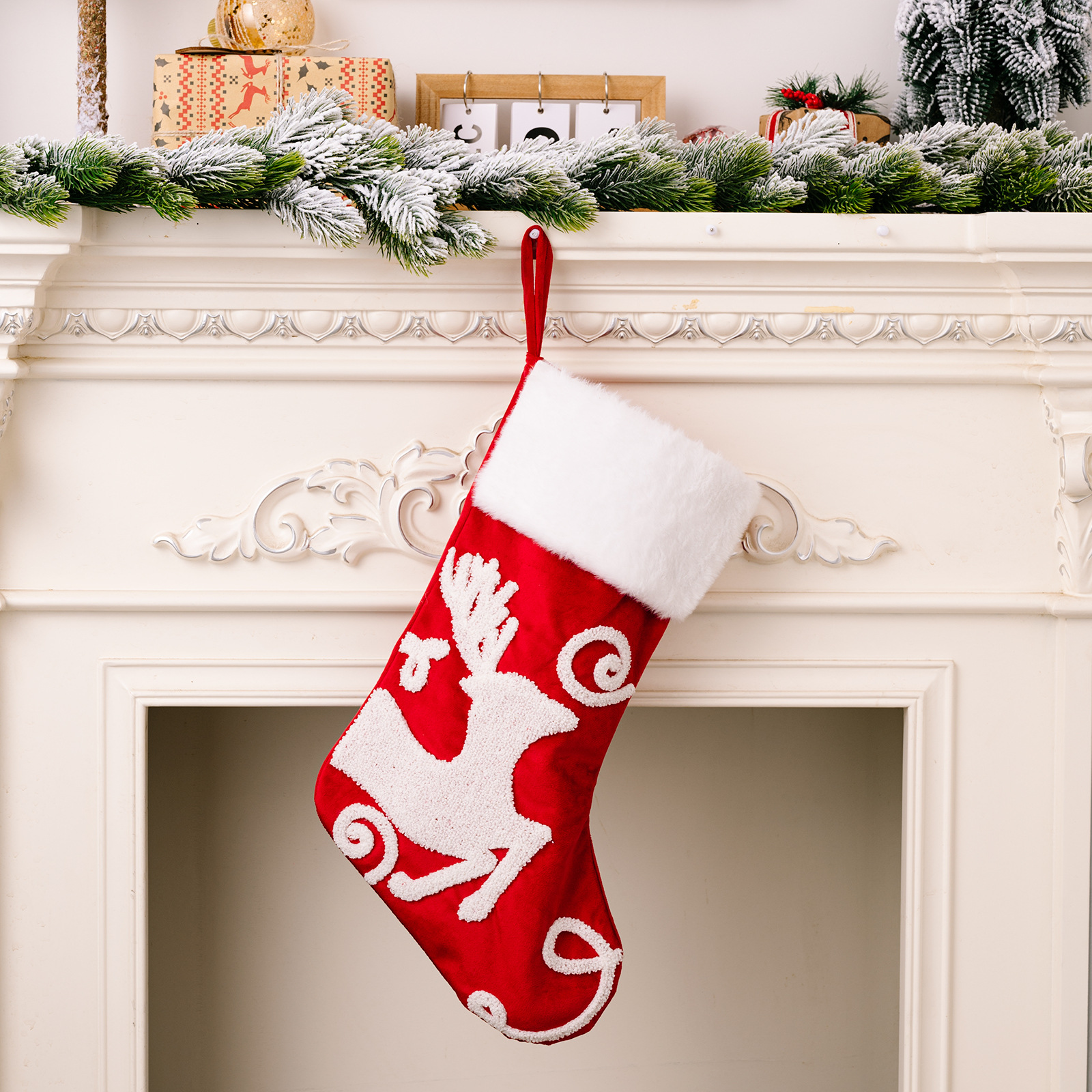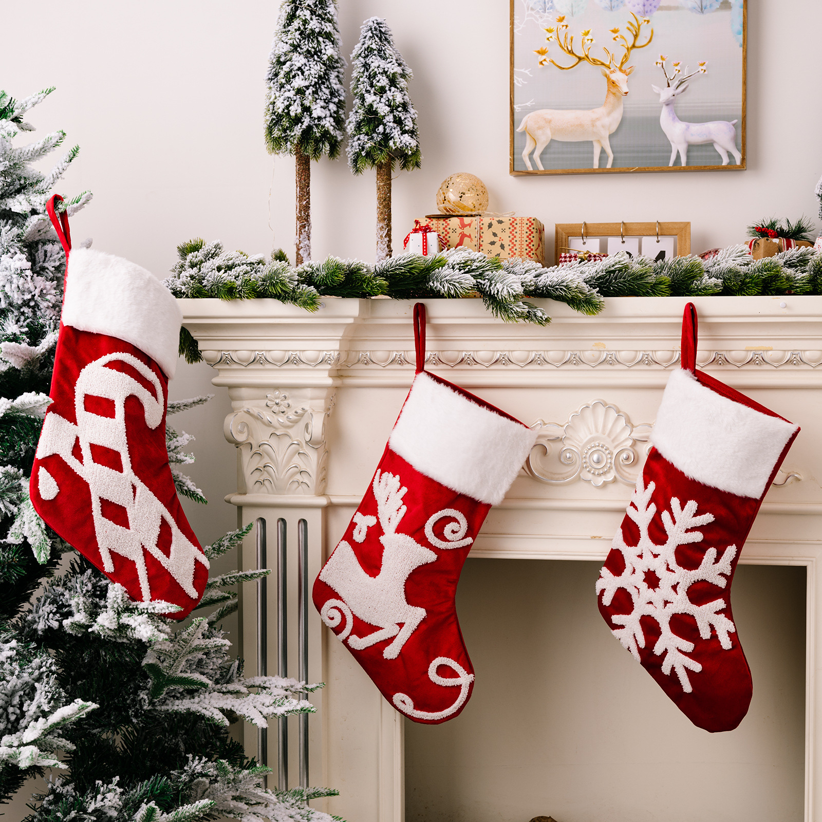 外贸热销新款圣诞节装饰用品创意雪花高档圣诞袜红色礼物袜礼品袋