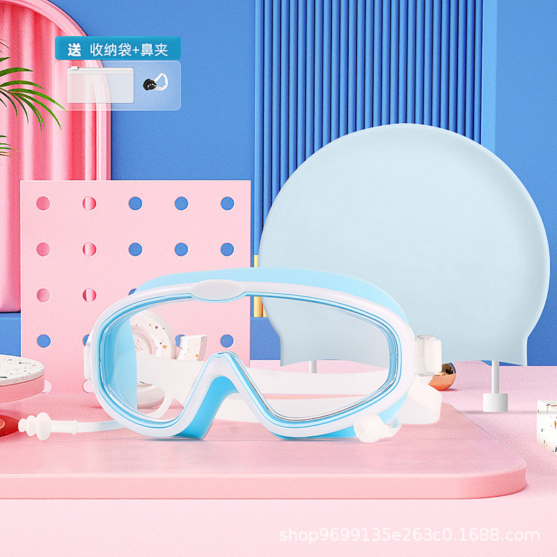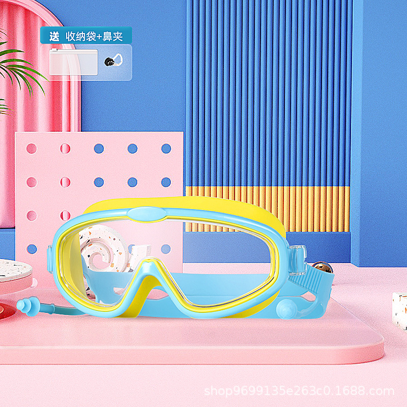 儿童泳镜高清防水防雾游泳大框眼镜男女童专业游泳训练潜水套装备