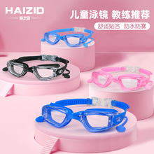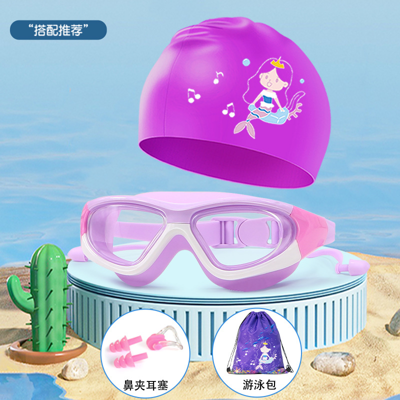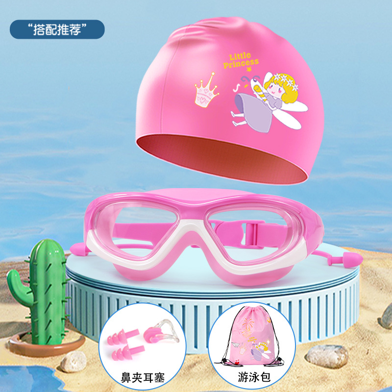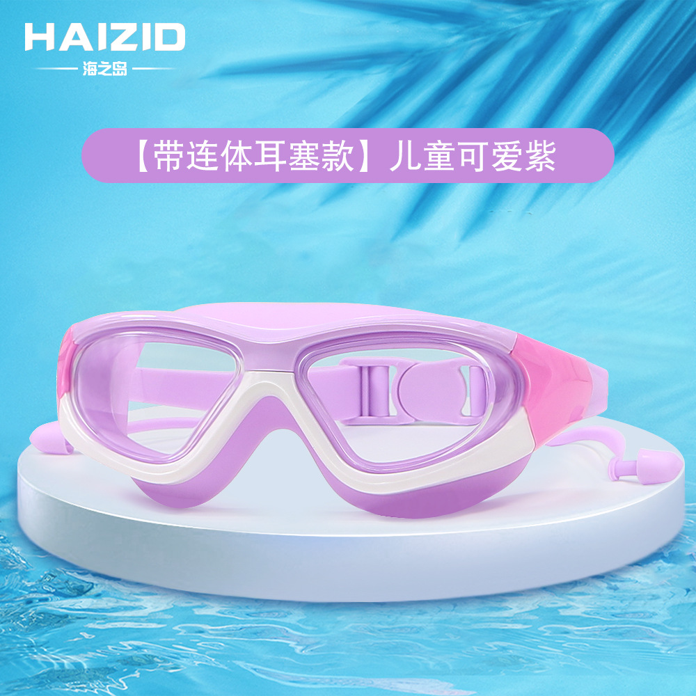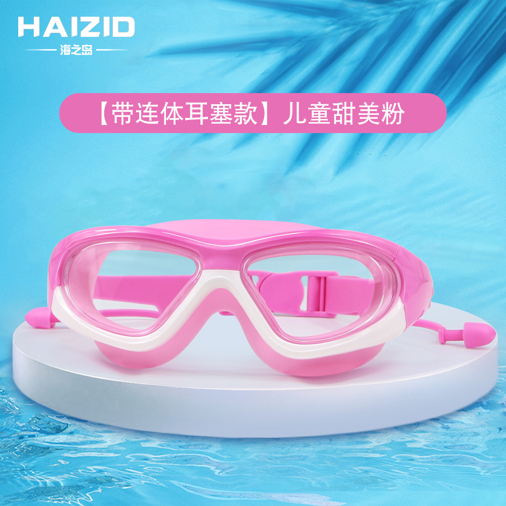 儿童大框泳镜防水防雾高清潜水护目镜男童女童连体耳塞游泳镜批发