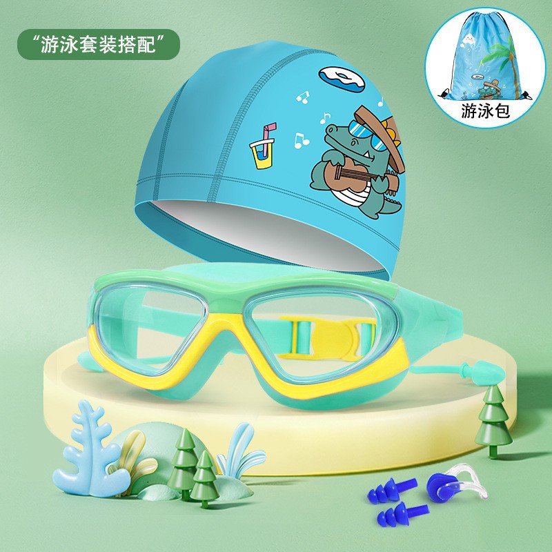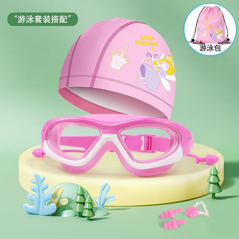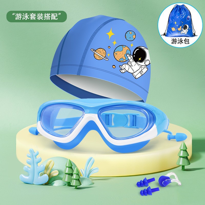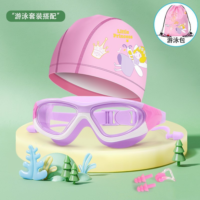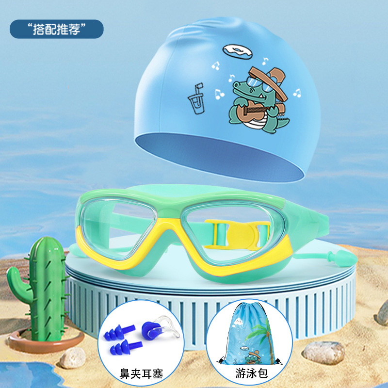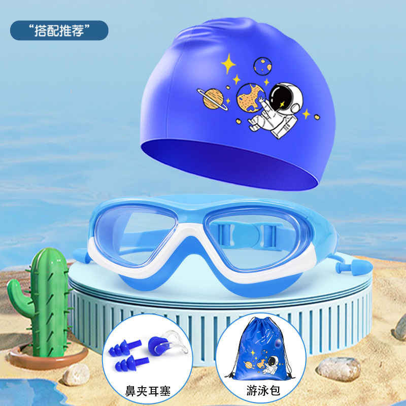 儿童大框泳镜防水防雾高清潜水护目镜男童女童连体耳塞游泳镜批发