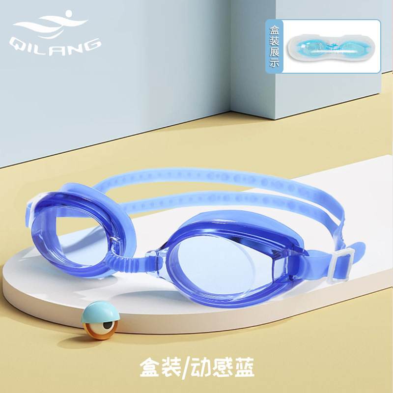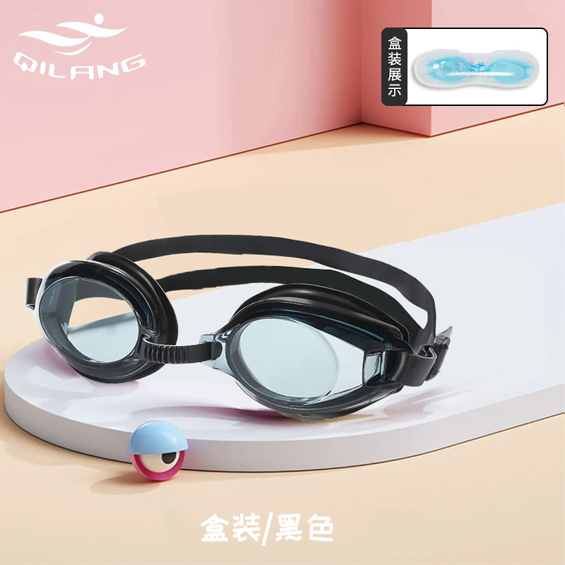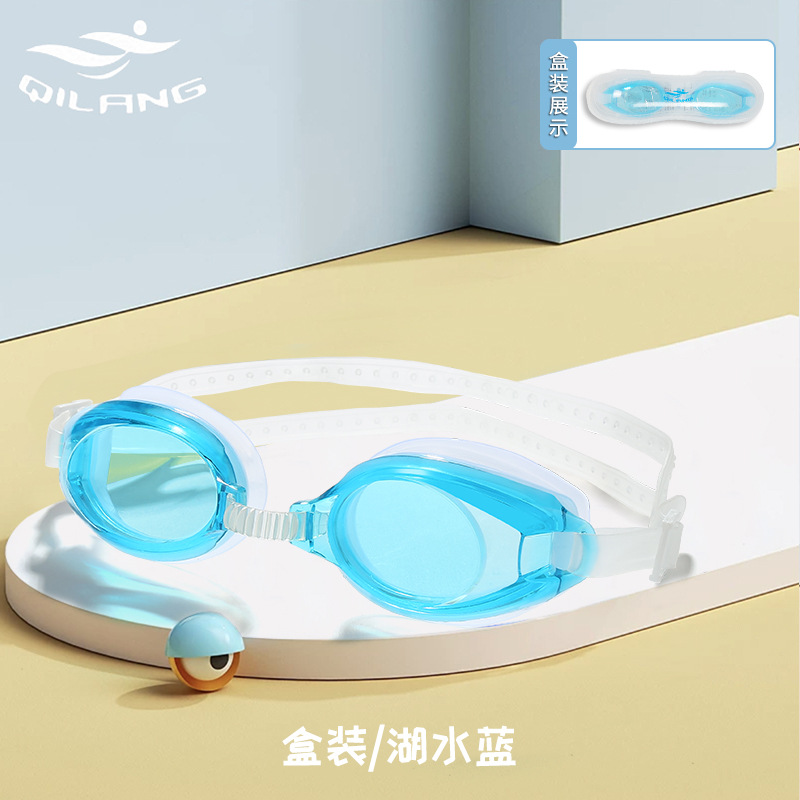 骐浪游泳镜批发成人儿童通用盒装袋装高清防水平光潜水眼镜跨境