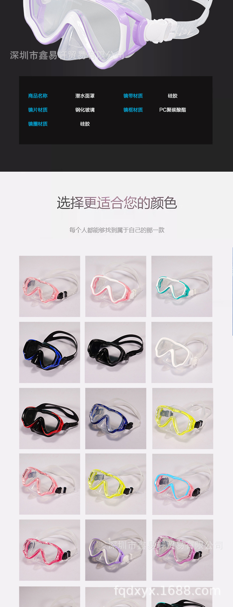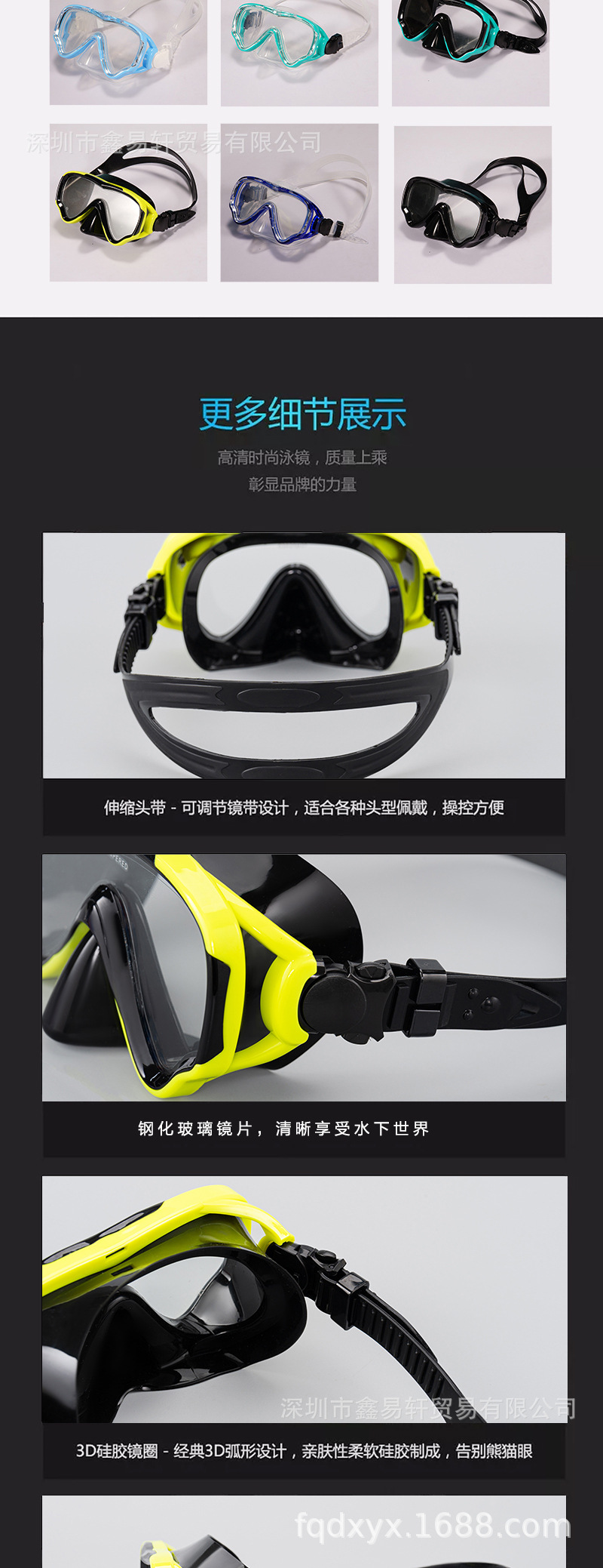 新款潜水镜 跨境亚马逊游泳防雾硅胶浮潜面罩 全干式潜水眼镜儿童