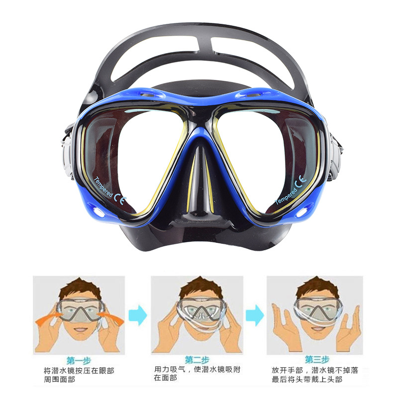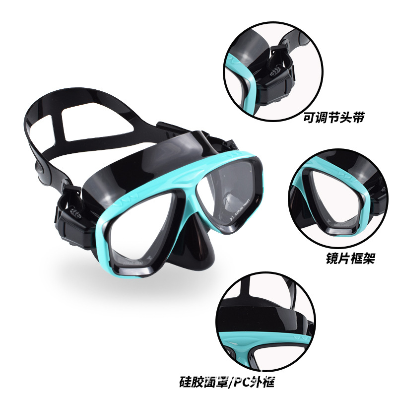 跨境潜水镜成人男女同款高清浮潜面罩潜水面镜全干式潜水面罩大框