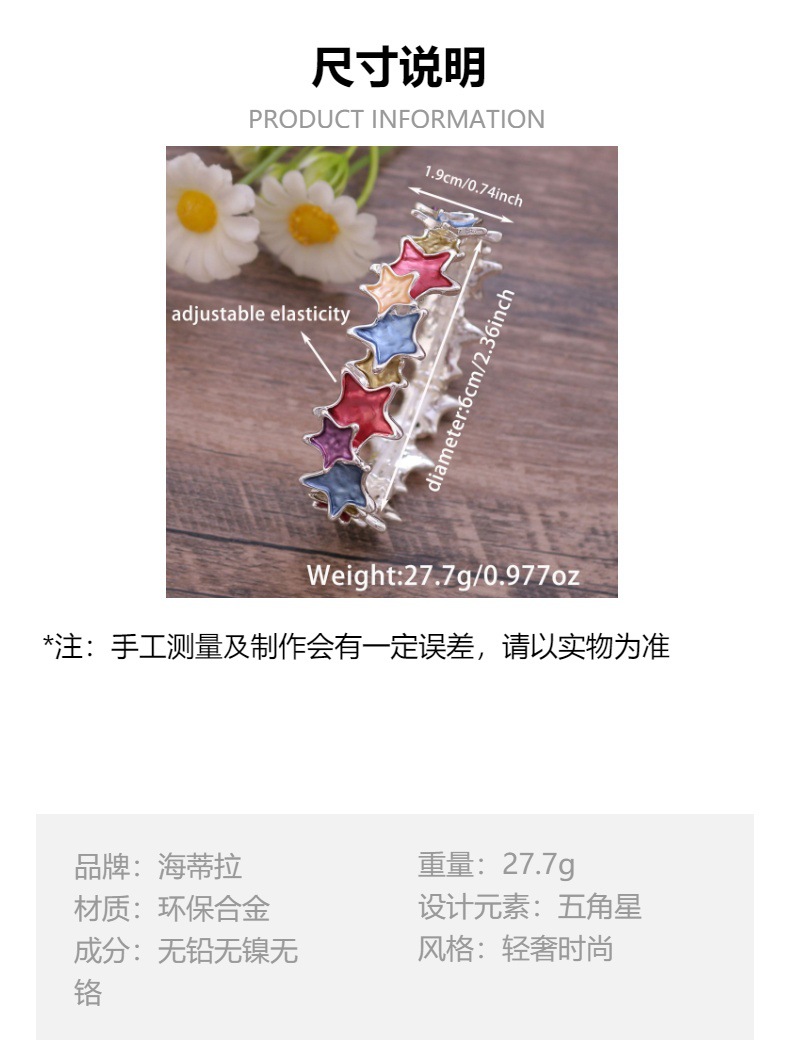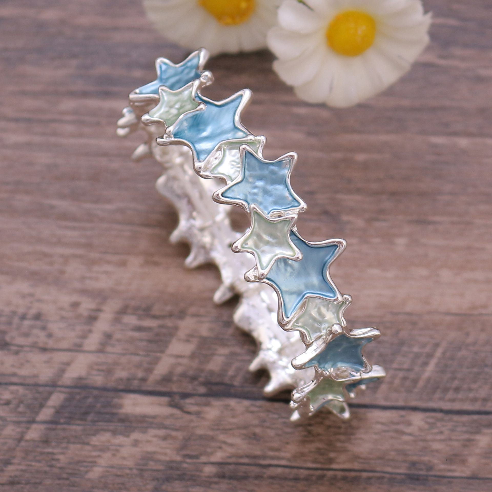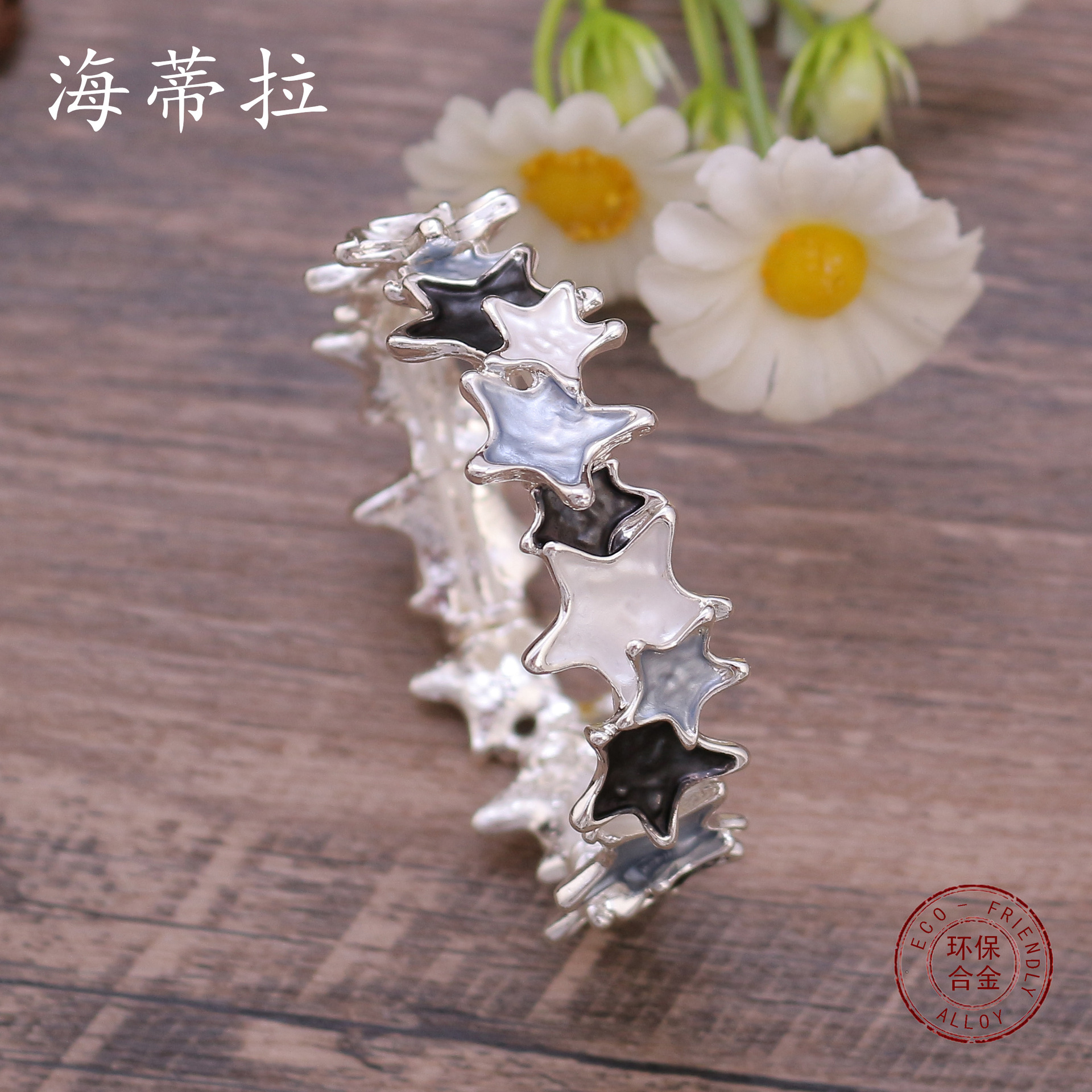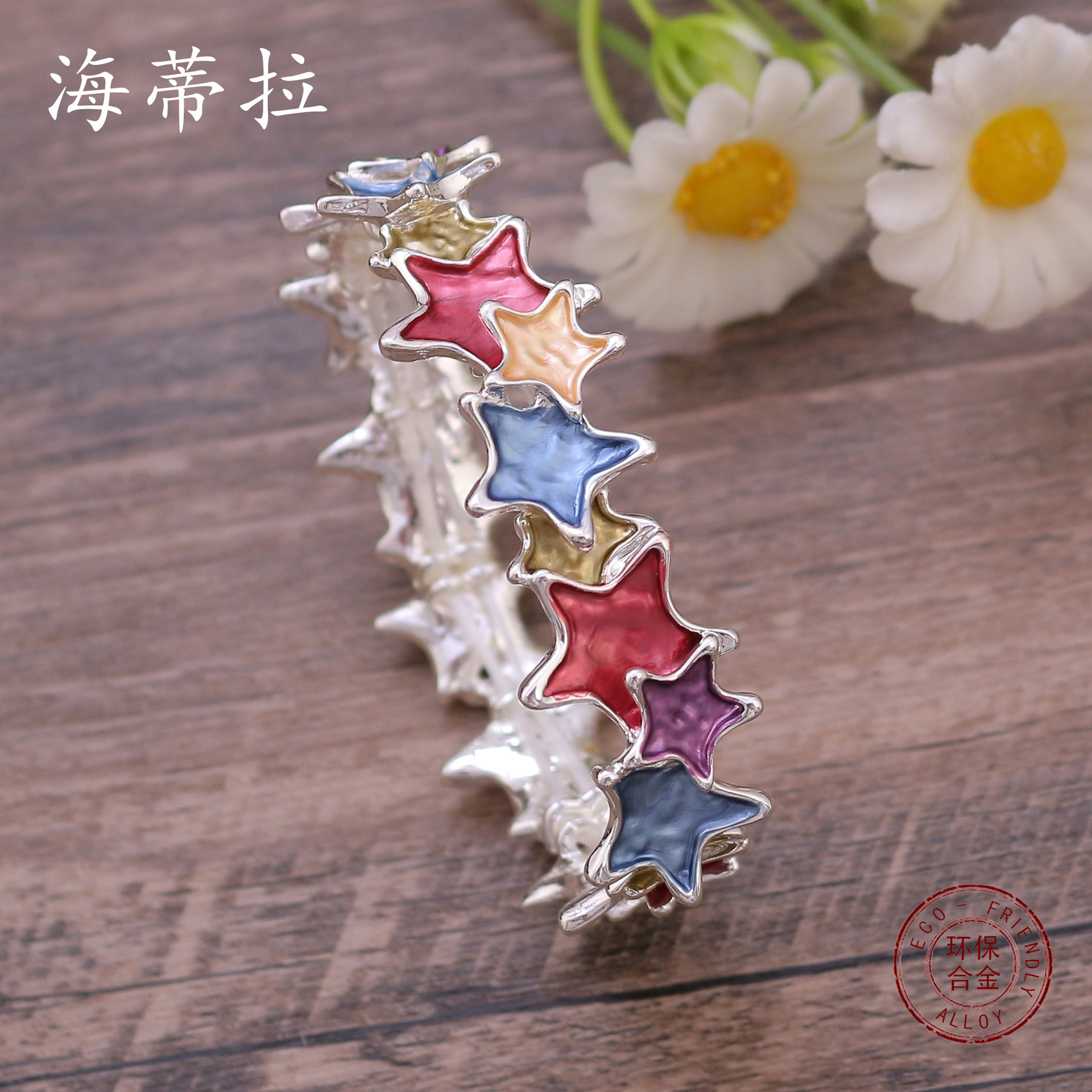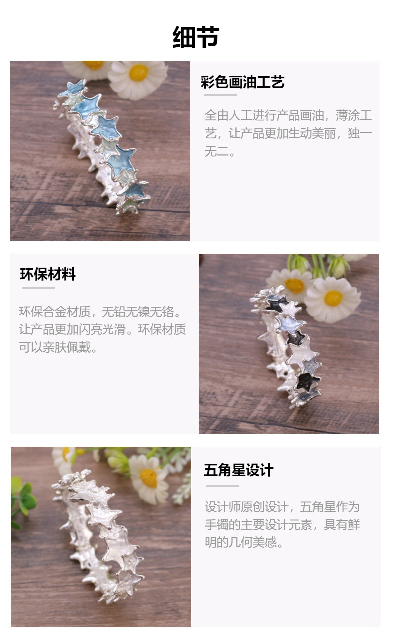 跨境热销星星彩色画油拼接手链 手工画油五角星时尚合金手镯