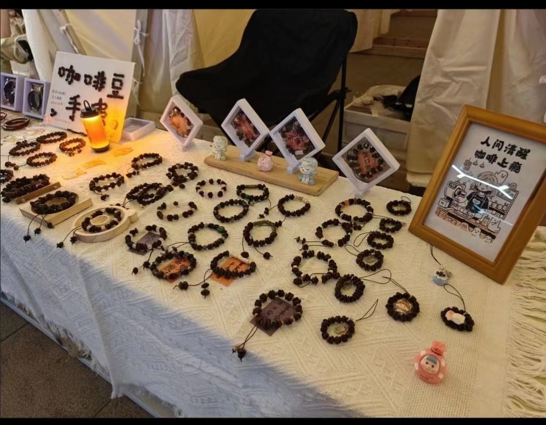 打孔咖啡豆半成品批发摆摊手链dly咖啡豆手串手工咖啡散珠手链