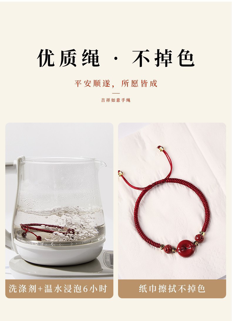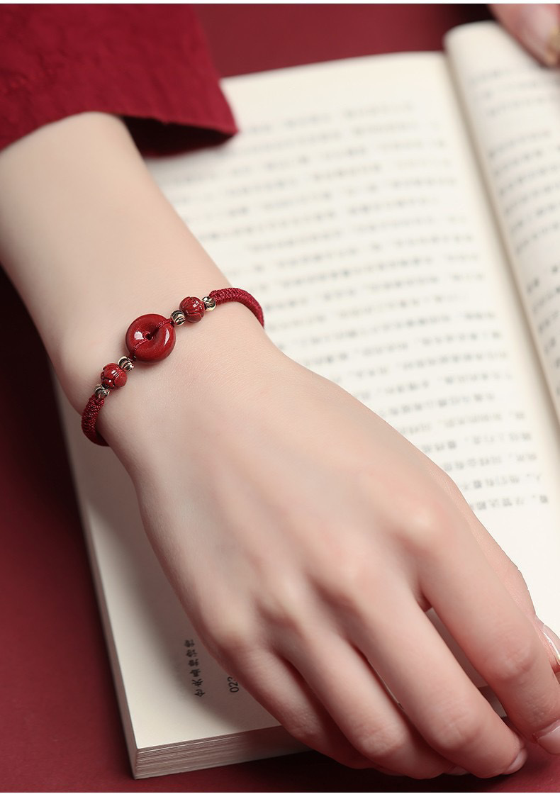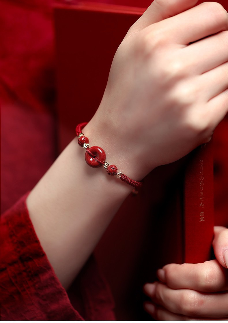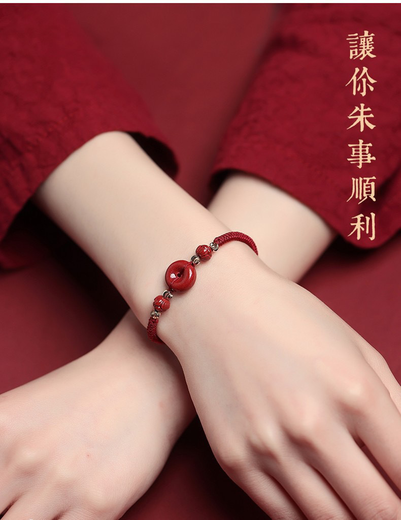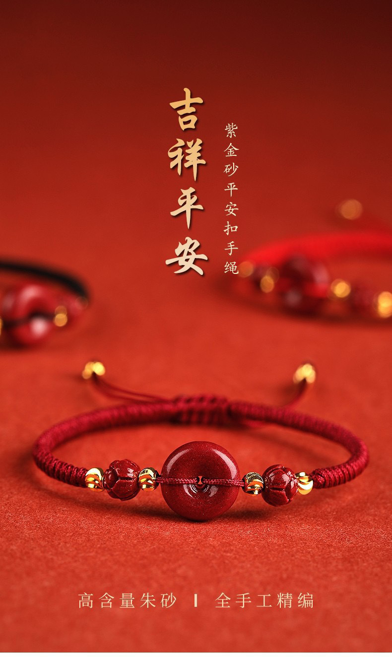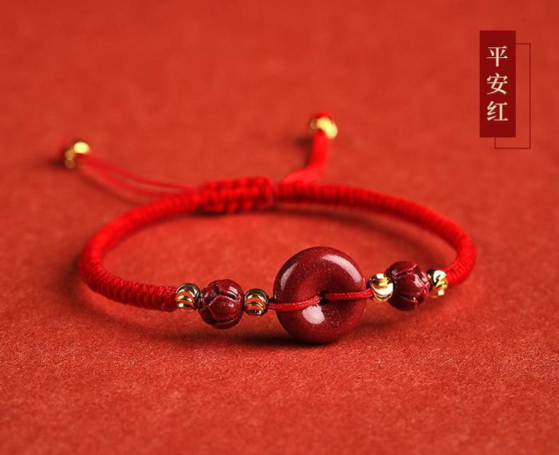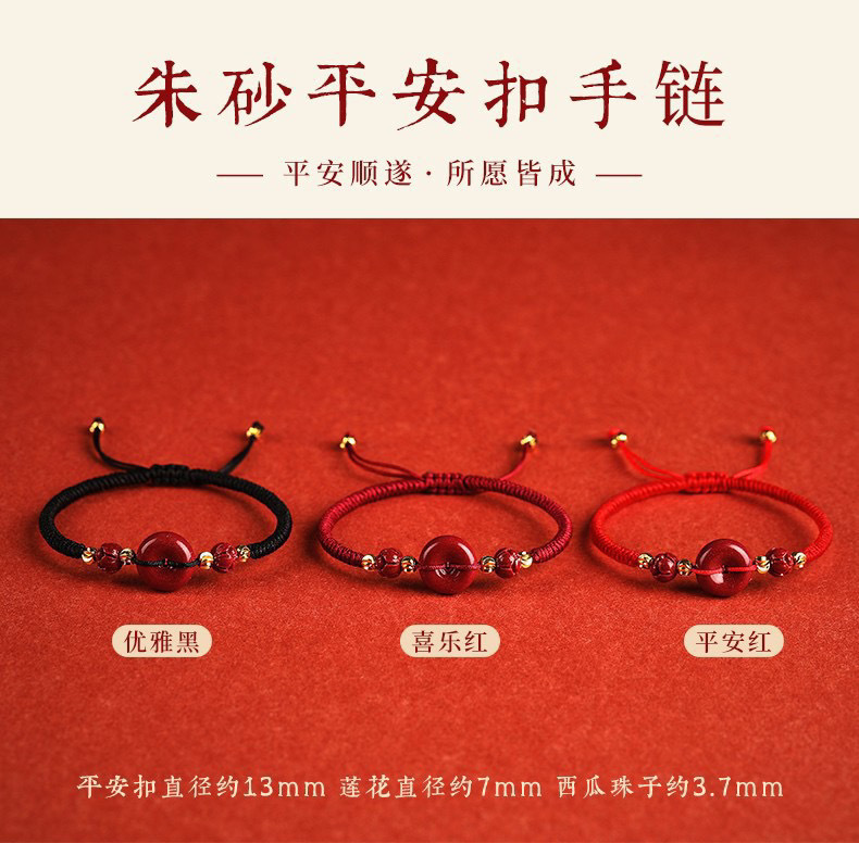紫金朱砂平安扣女本命年红绳手链朱砂真品手工编织绳diy手绳情侣
