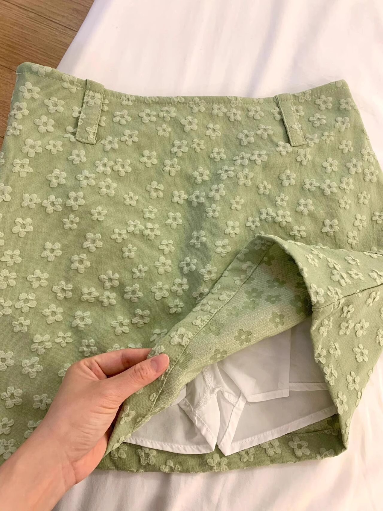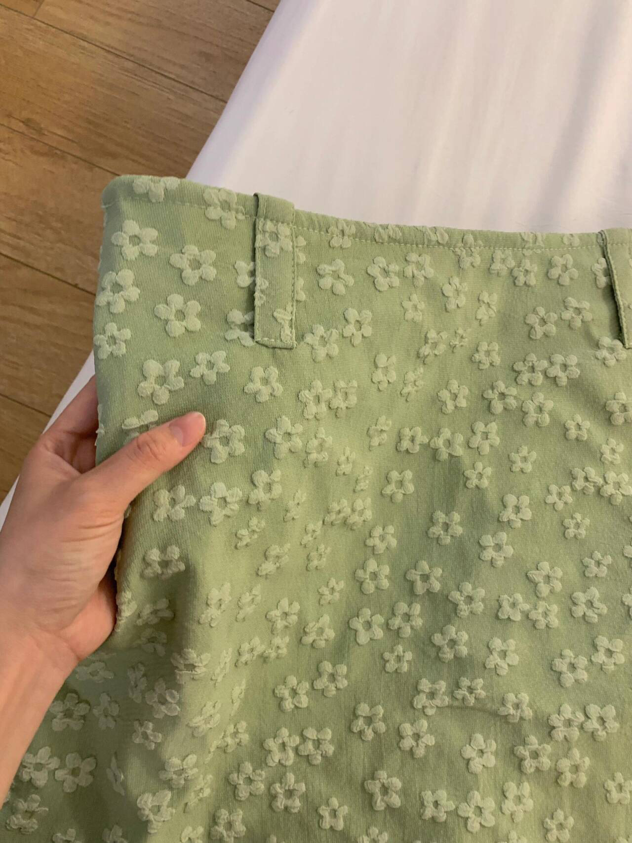 甜辣妹立体小花朵薄荷绿半身裙女夏季高级感气质复古显瘦短款短裙