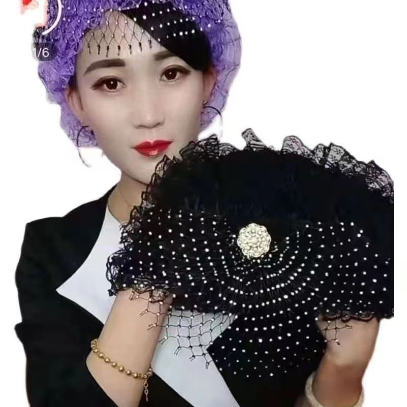 新款蕾丝满天星帽子时尚透气洋气美人帽高档复古风孔雀帽包头帽