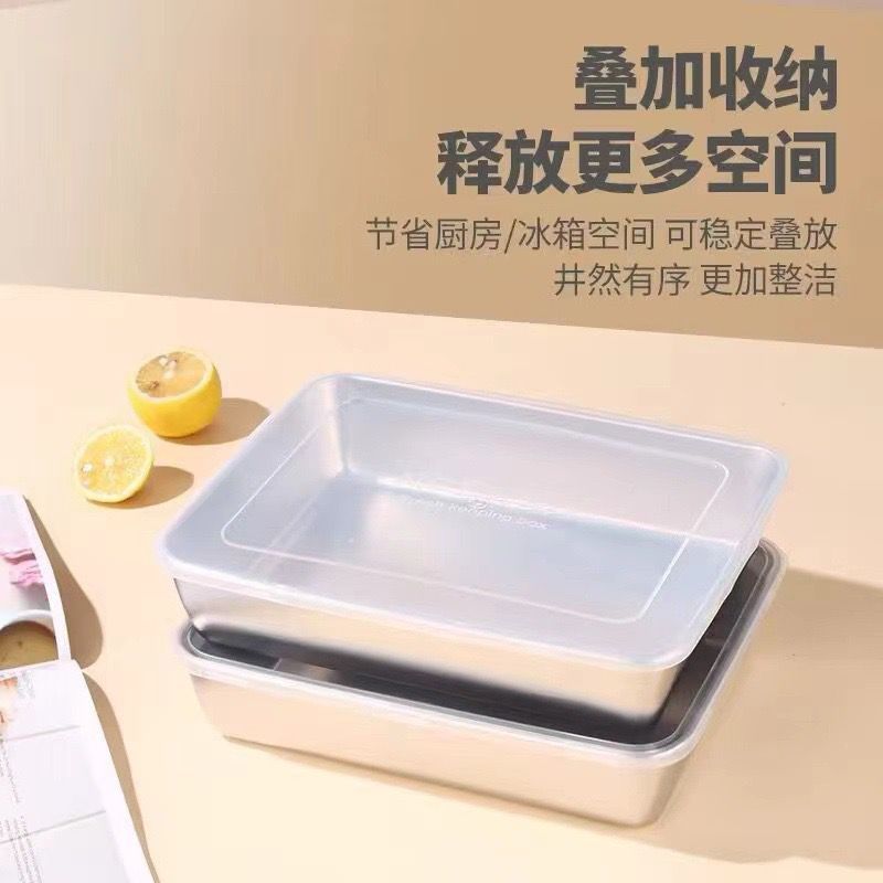 食品级不锈钢保鲜盒餐用托盘长方形盘冰箱收纳盒烤箱露营野餐托盘