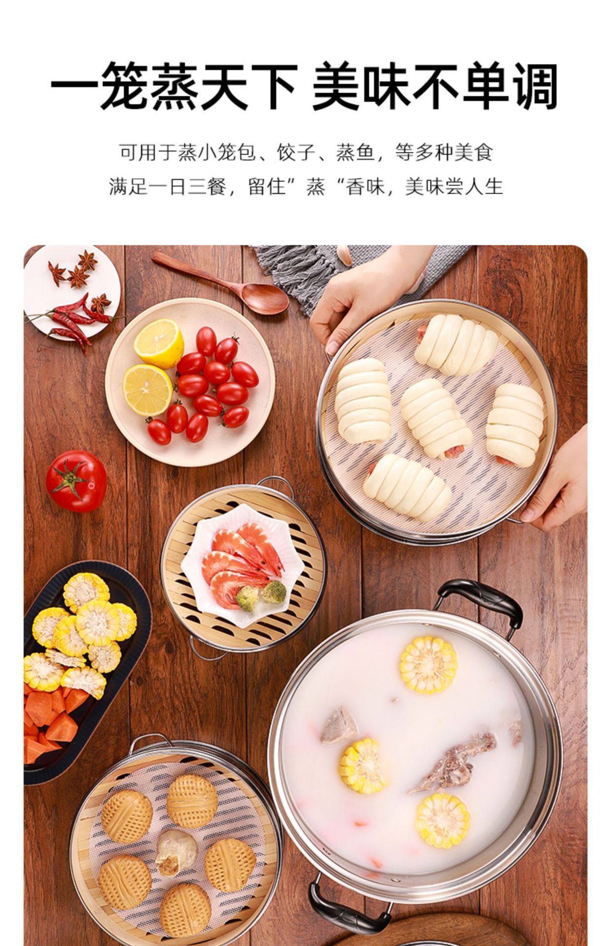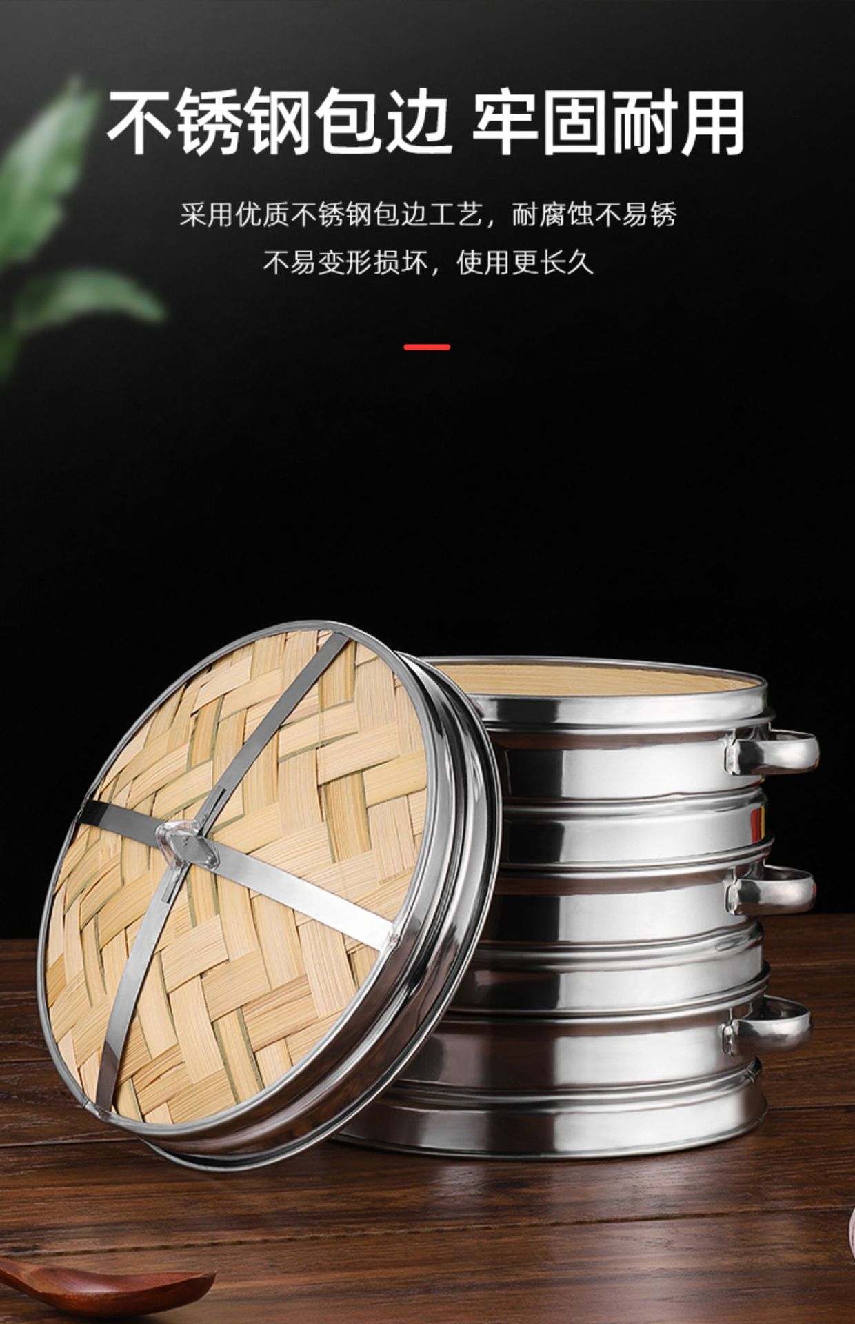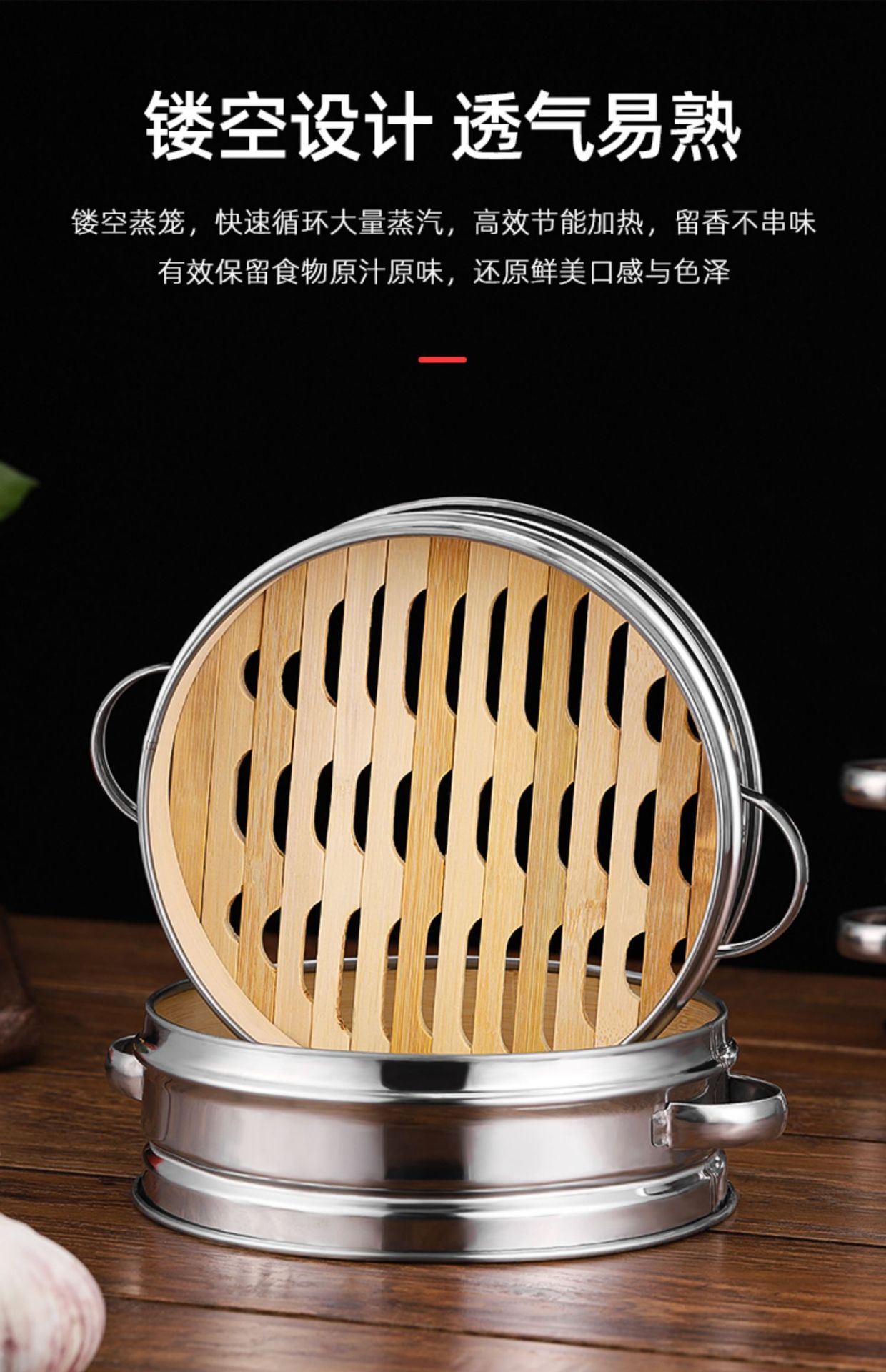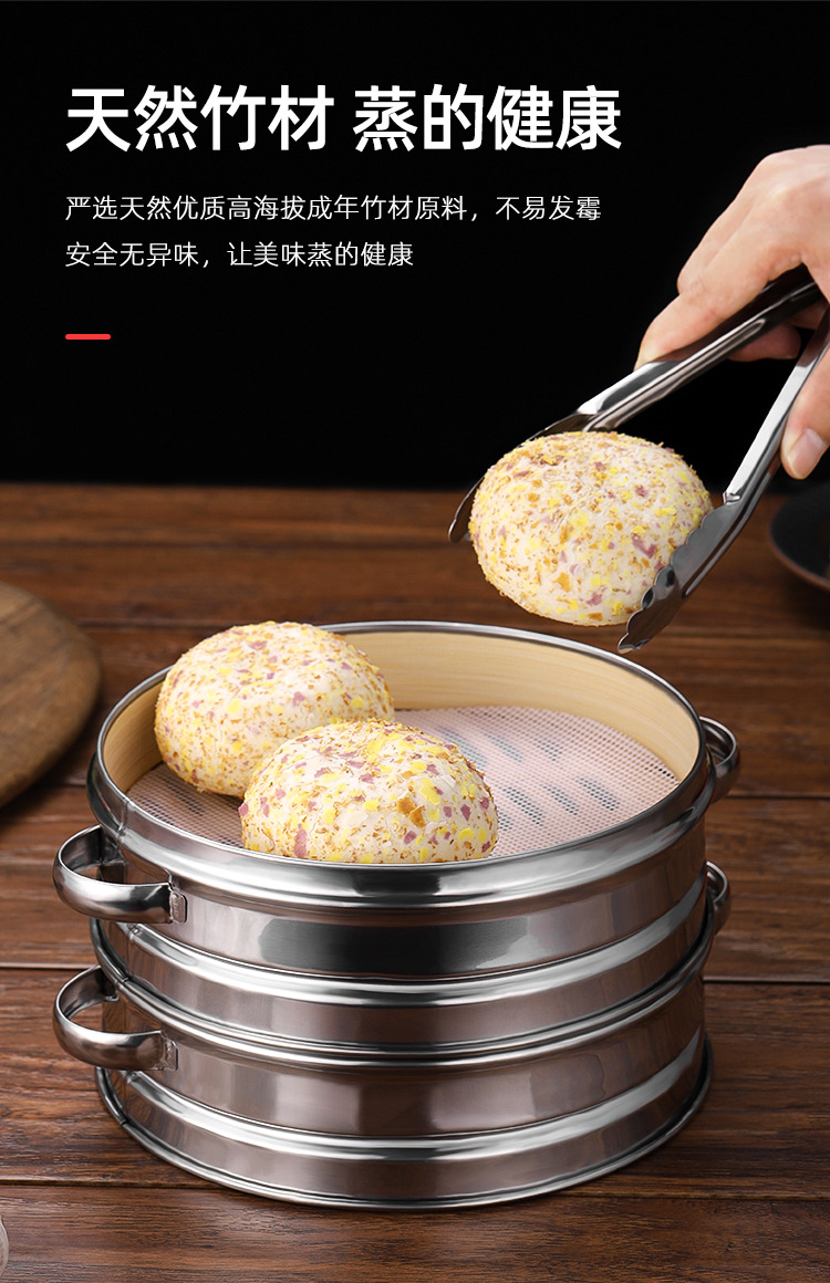 包子馒头竹子蒸屉不锈钢蒸笼竹制杭州小笼包饺子蒸锅笼屉家用商用