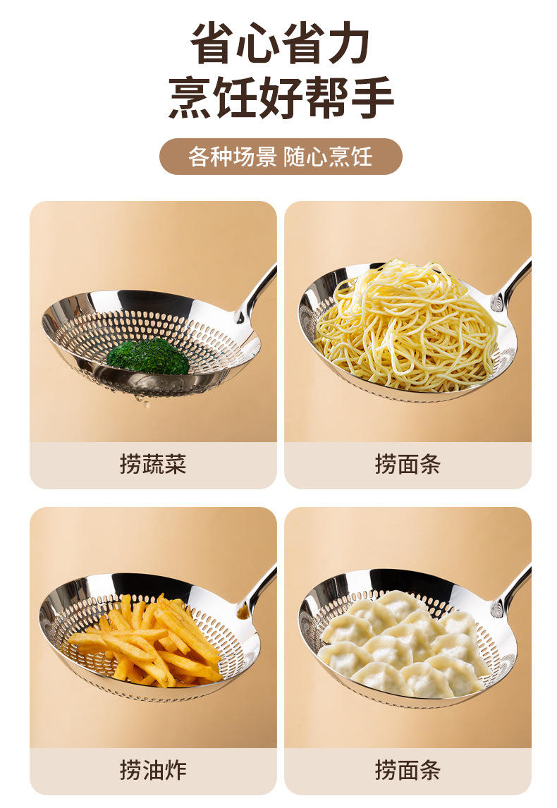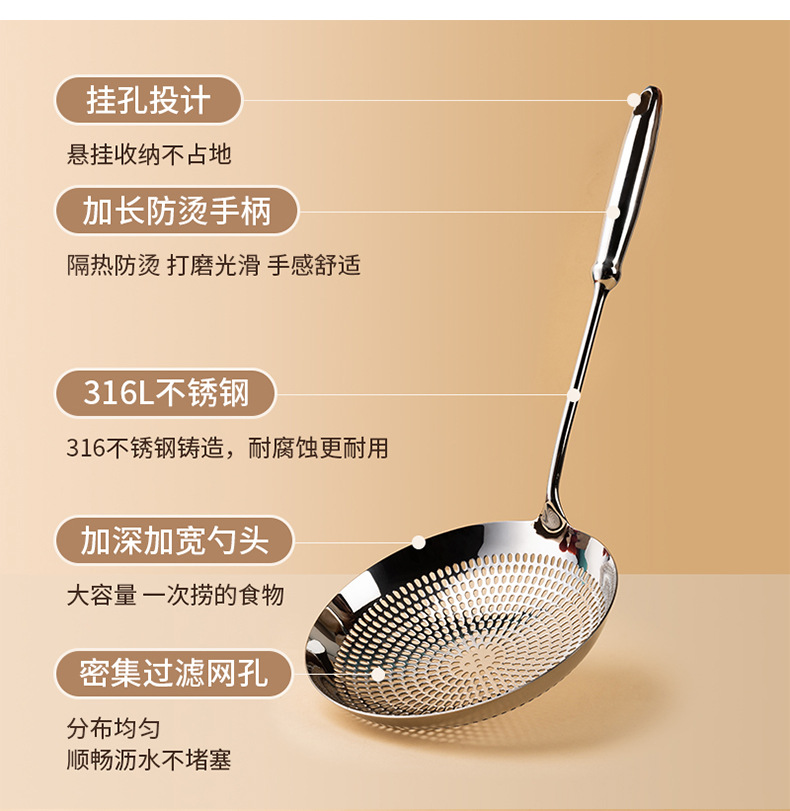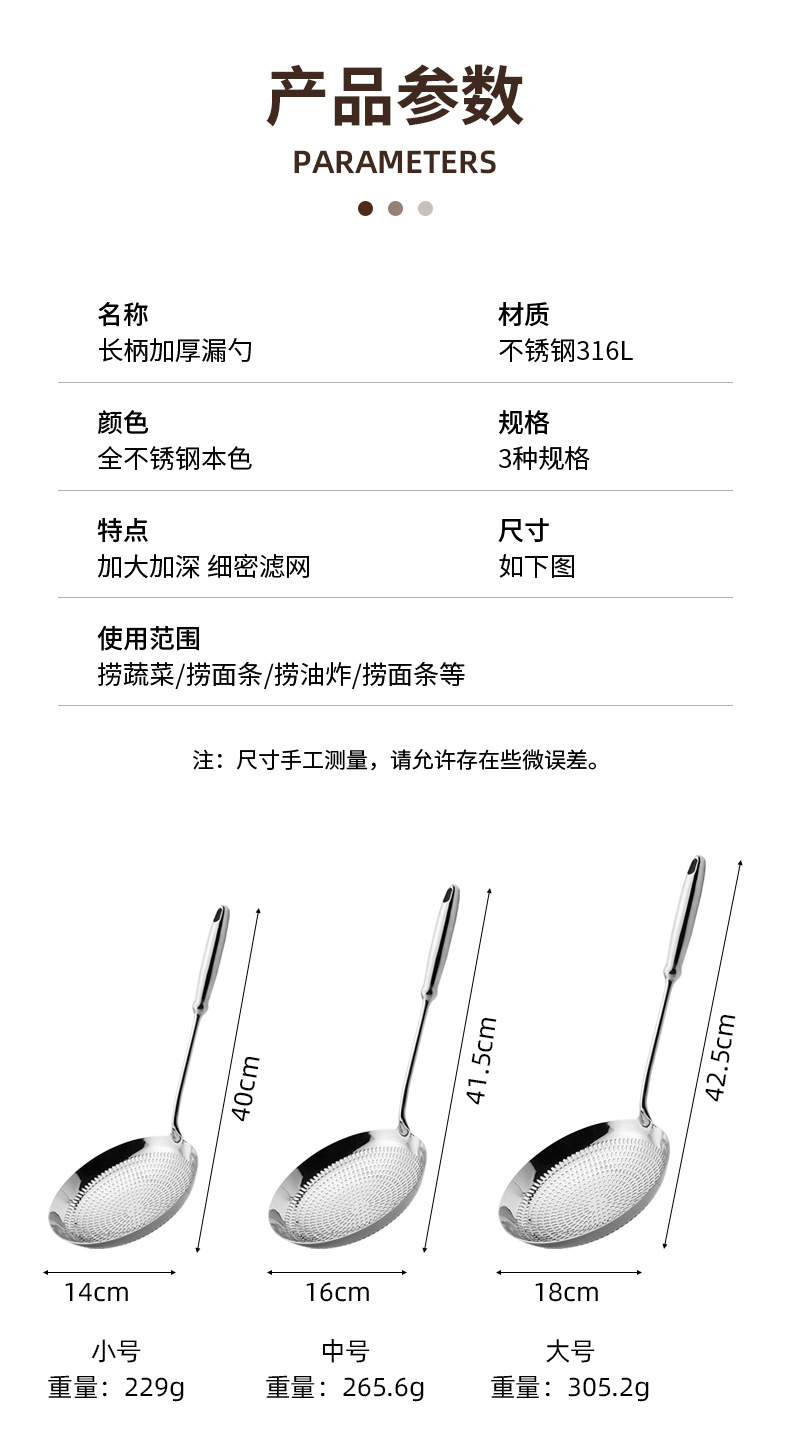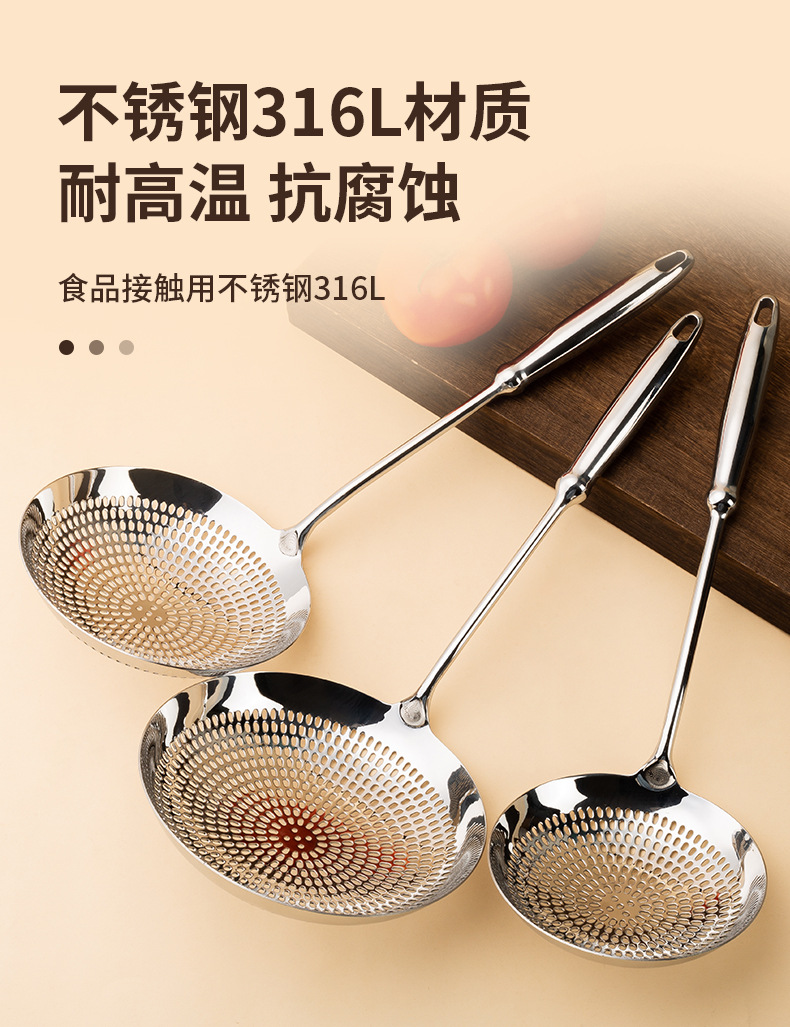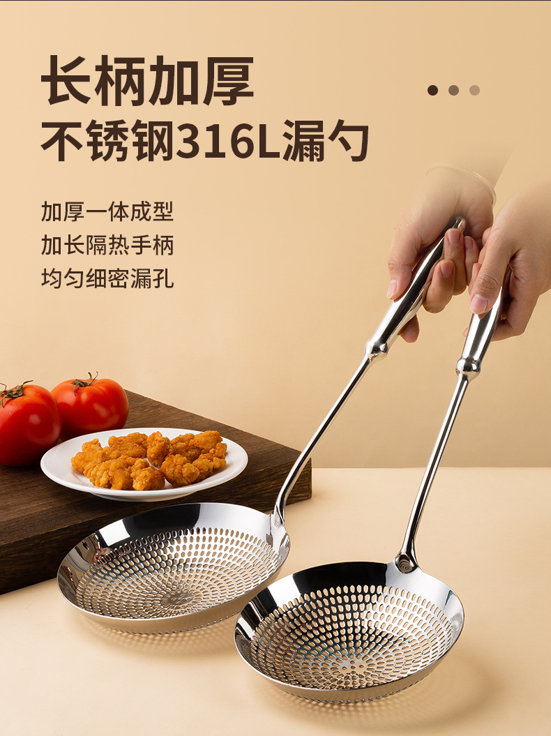 316不锈钢漏勺冲孔漏网漏打火锅过滤勺家用油炸厨具捞面勺网捞勺