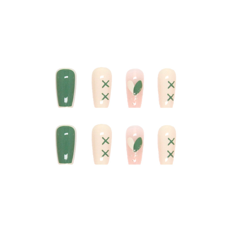 中长款芭蕾甲冰透粉嫩奶绿拼色美甲片穿戴甲批发成品24片装nails