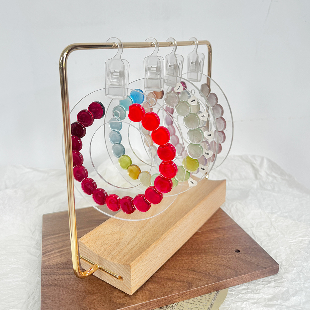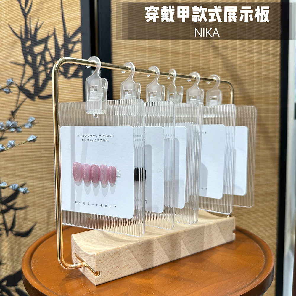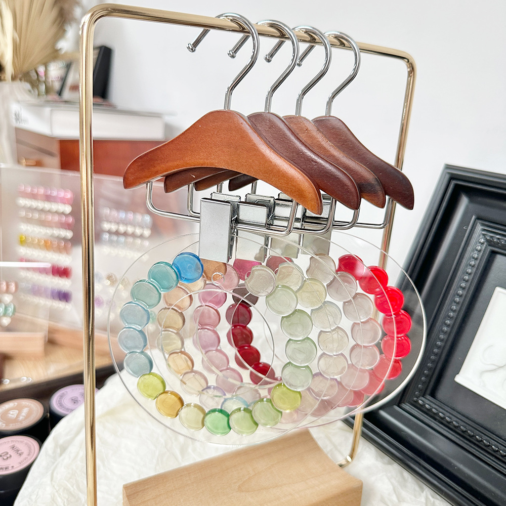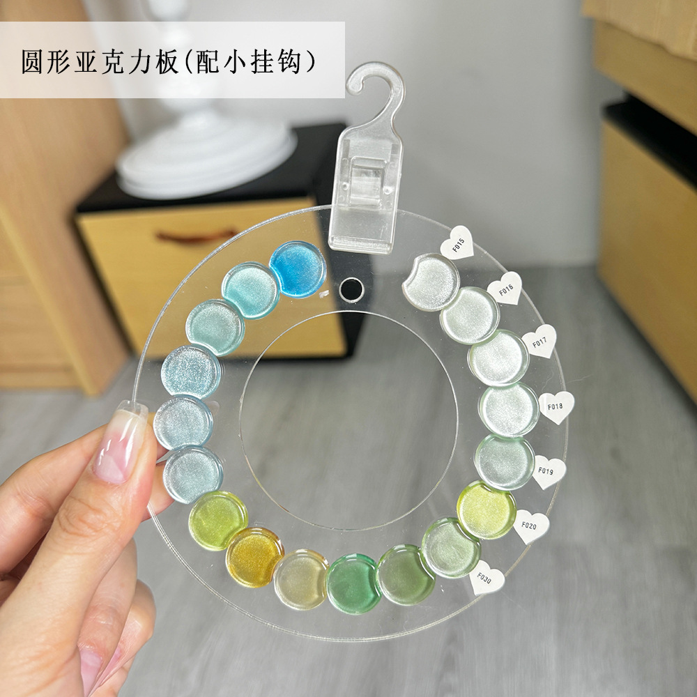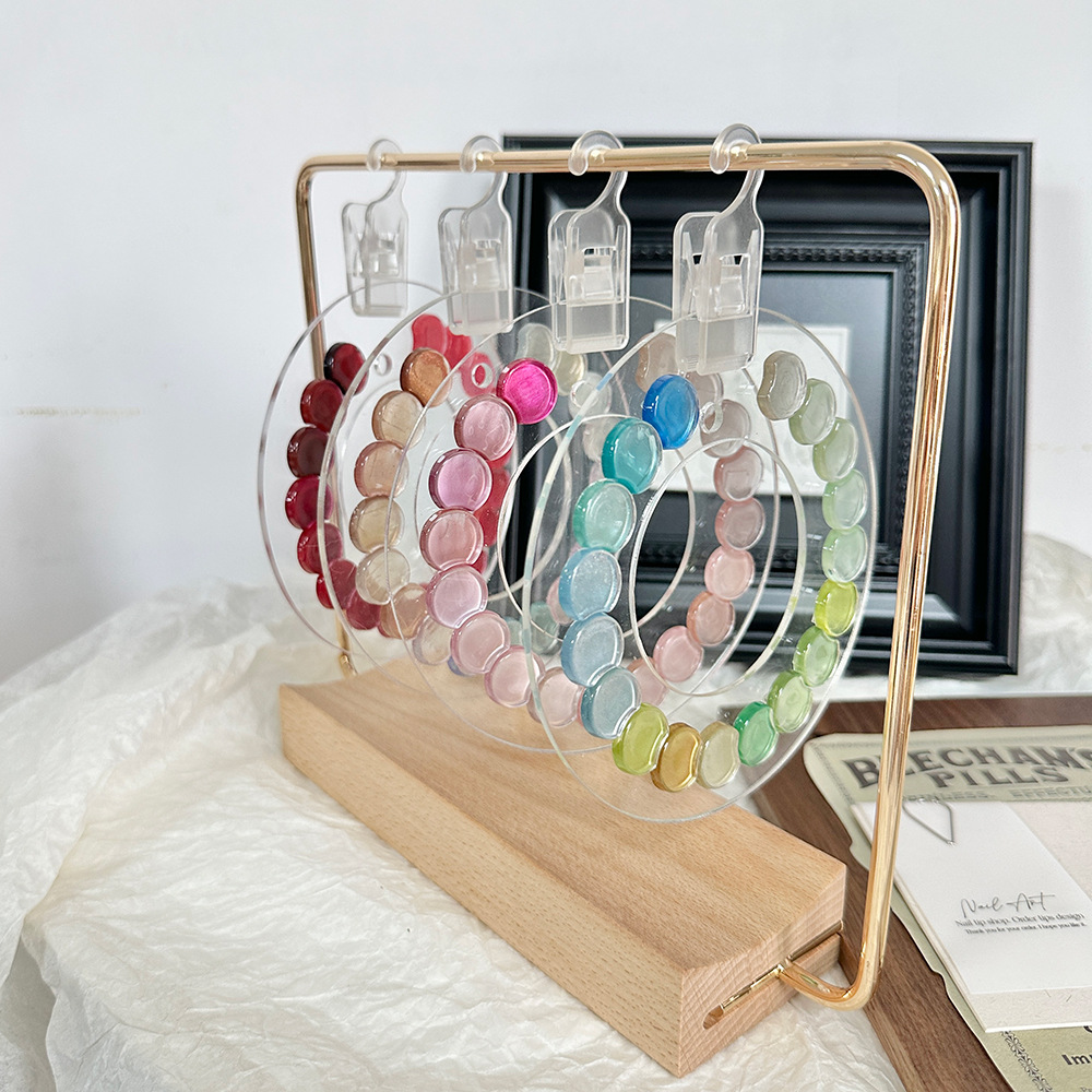 新款圆形亚克力展示板美甲甲油胶色板款式作品展示架实木摆台金属