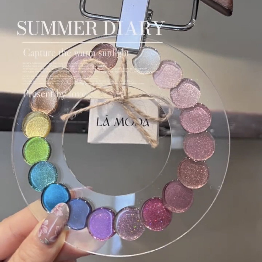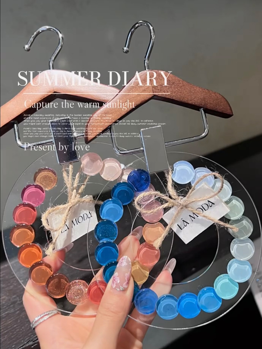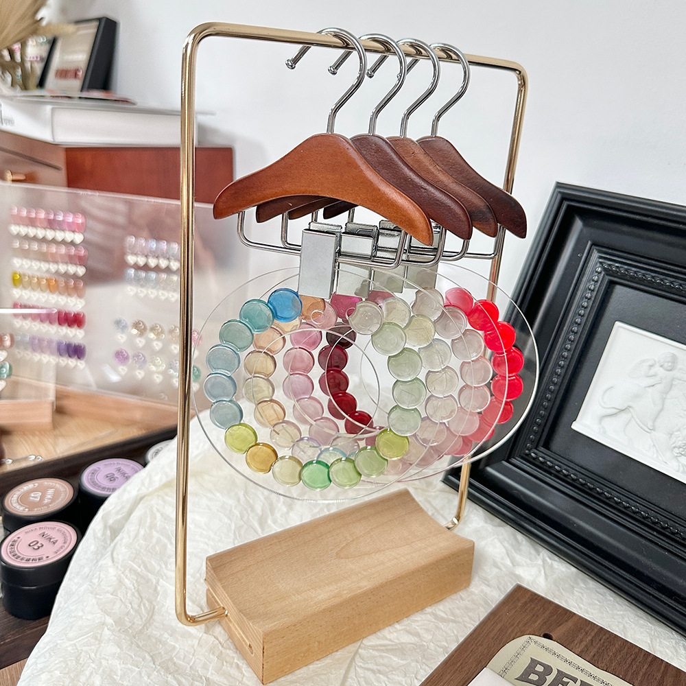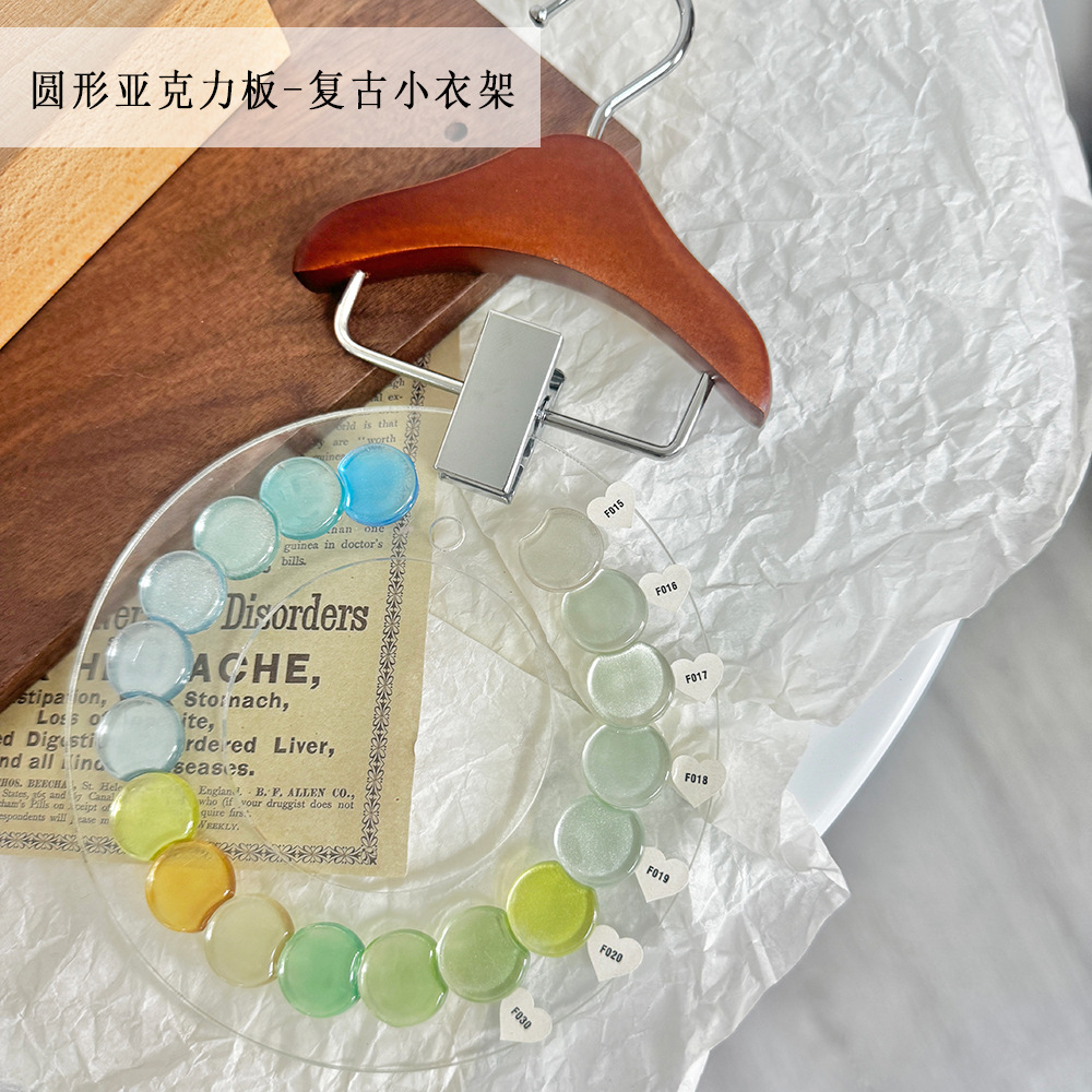 新款圆形亚克力展示板美甲甲油胶色板款式作品展示架实木摆台金属