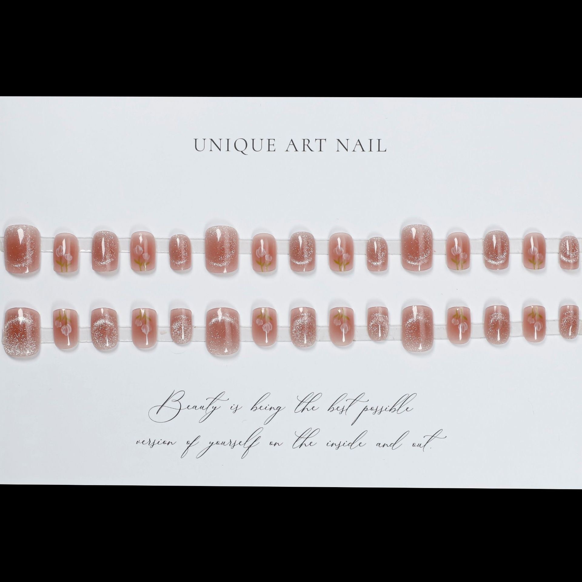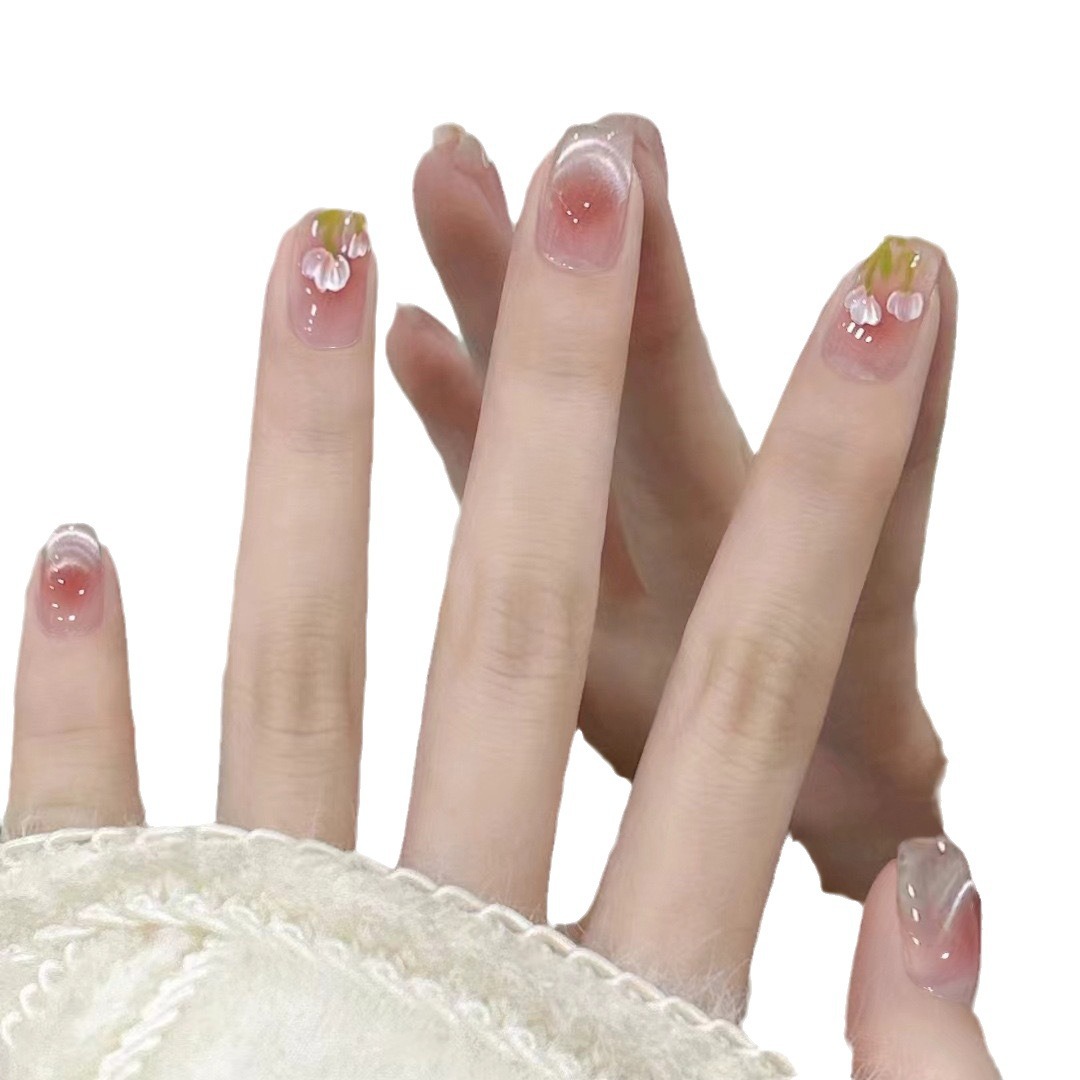 穿戴甲片高级感夏季腮红猫眼郁金香短款可拆卸美甲穿戴式甲片
