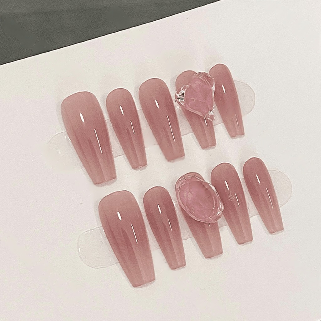 10片手工穿戴甲猫眼粉色蝴蝶预制甲纯手工美甲可拆卸ins甲片成品