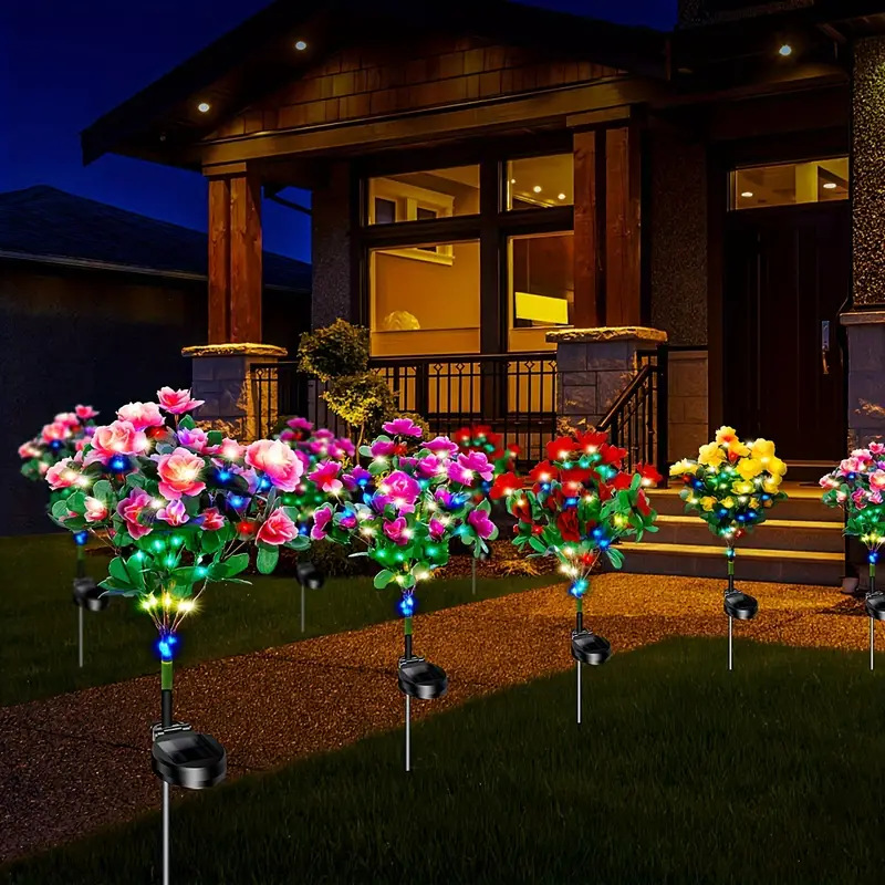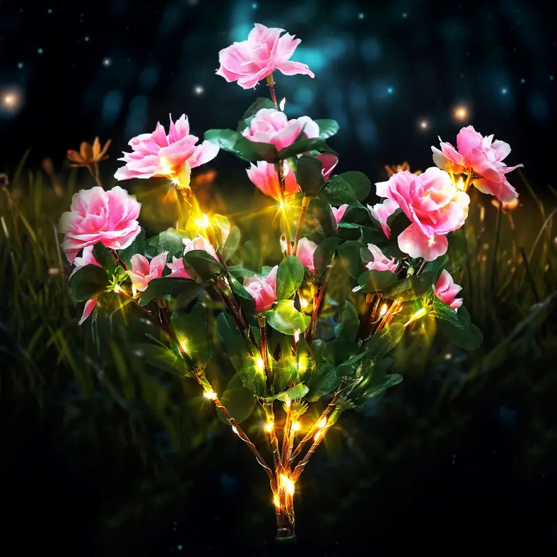 新品太阳能杜鹃花灯装饰庭院花坛街道公园婚庆道具氛围仿真花LED