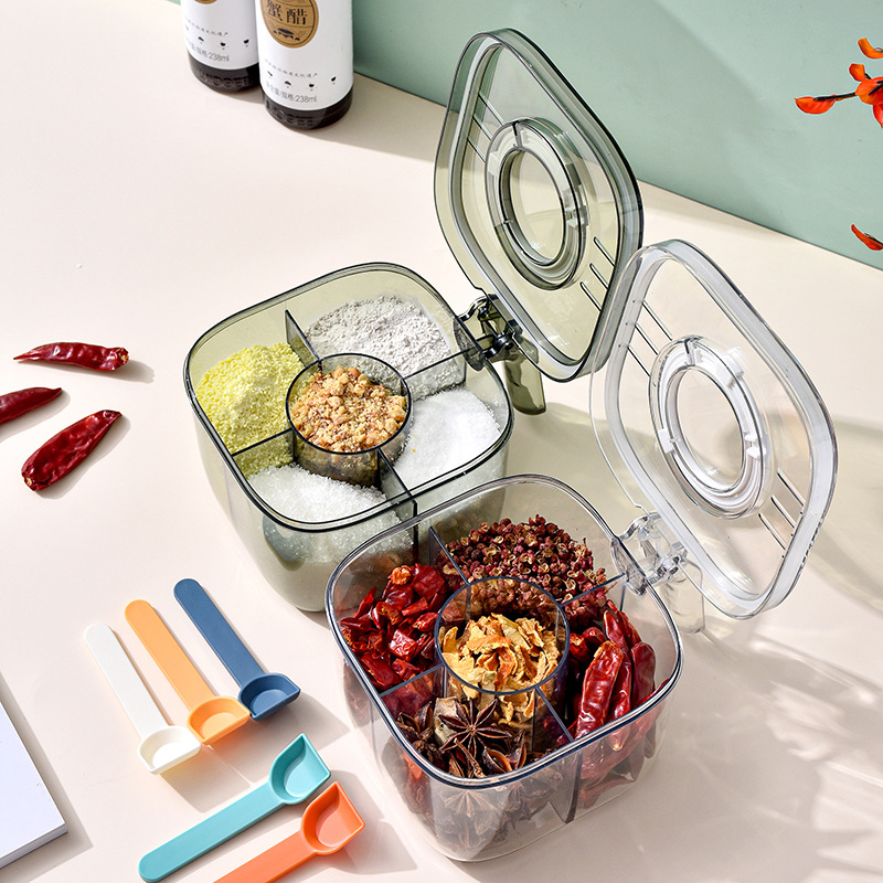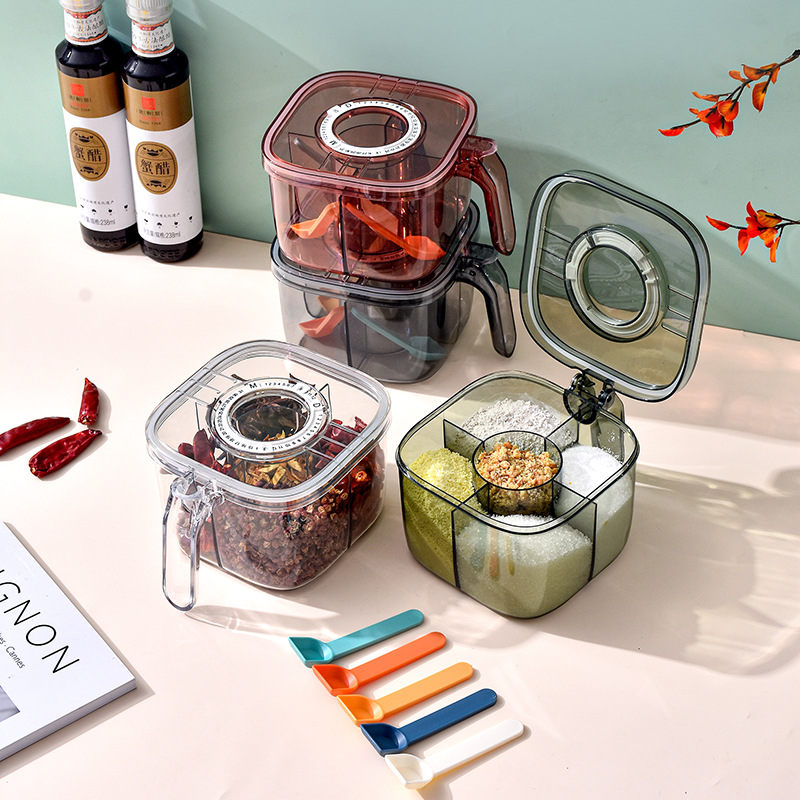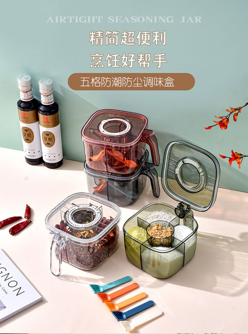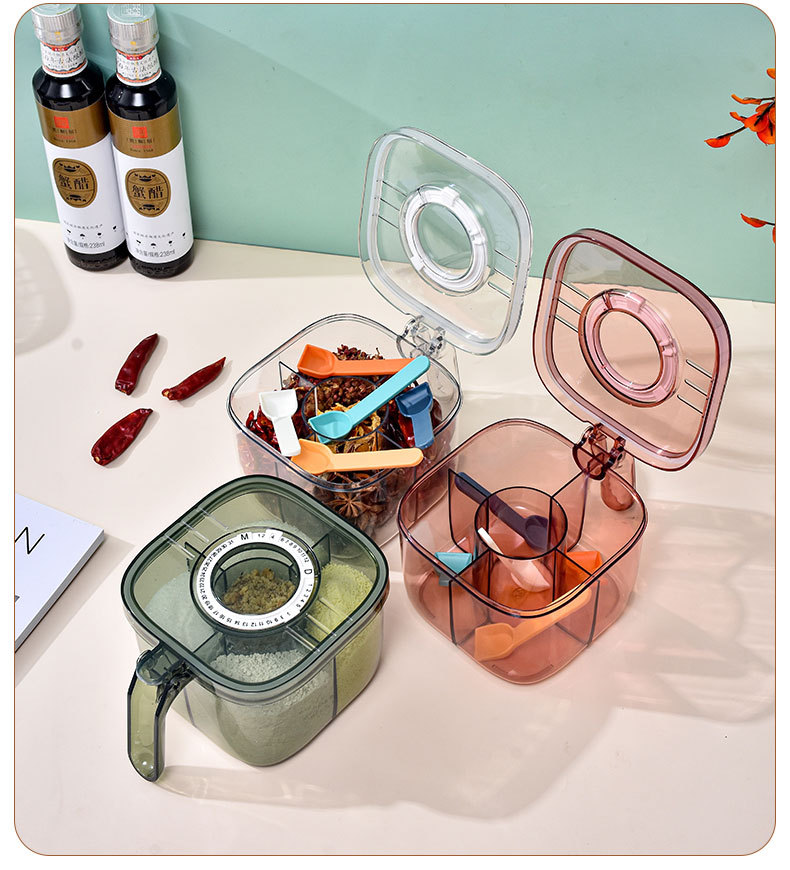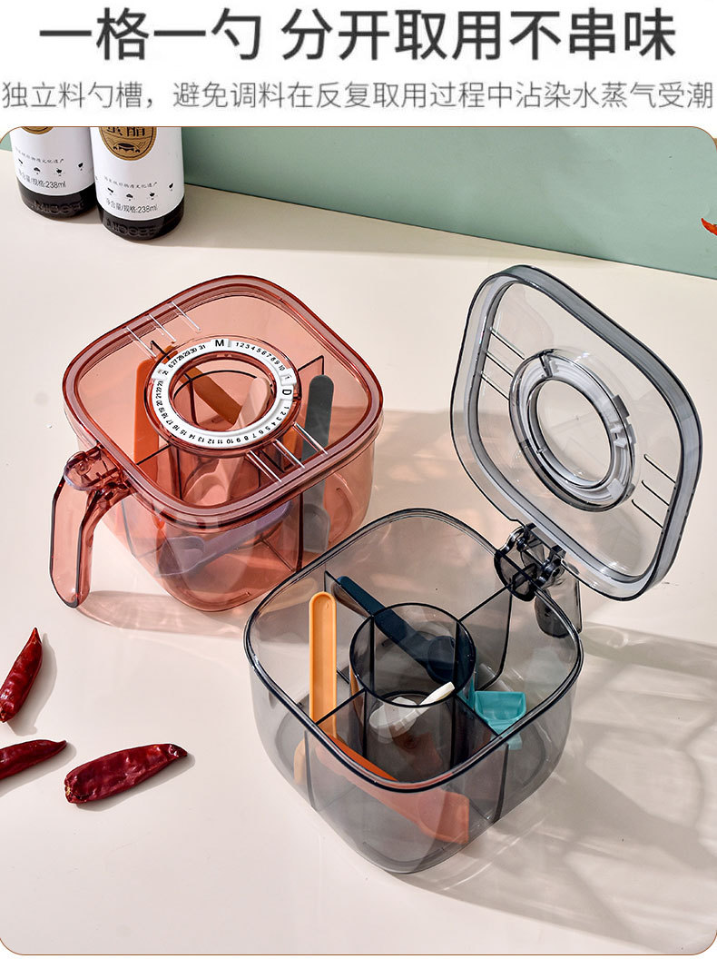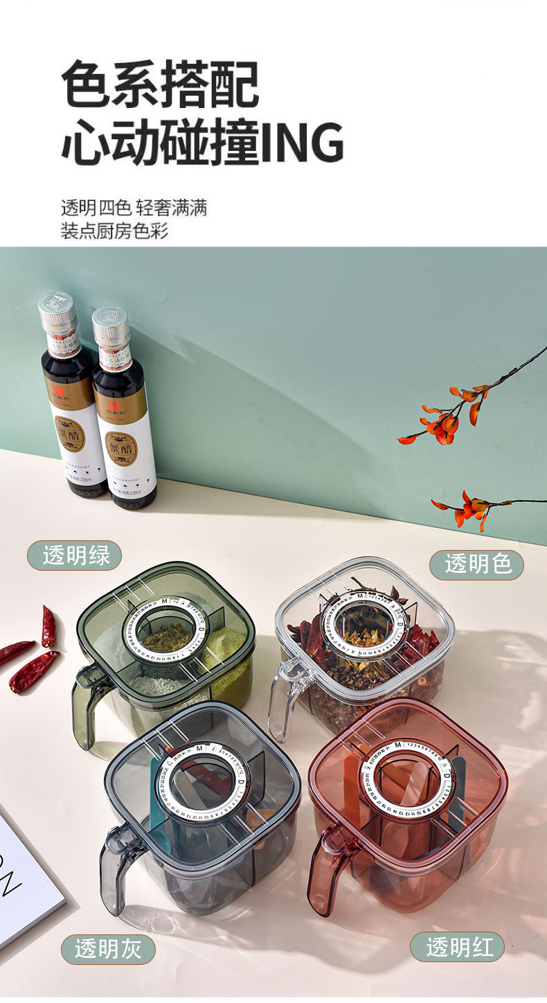 轻奢透明调味料盒收纳密封防潮一体多格调料盒调味盒厨房调料