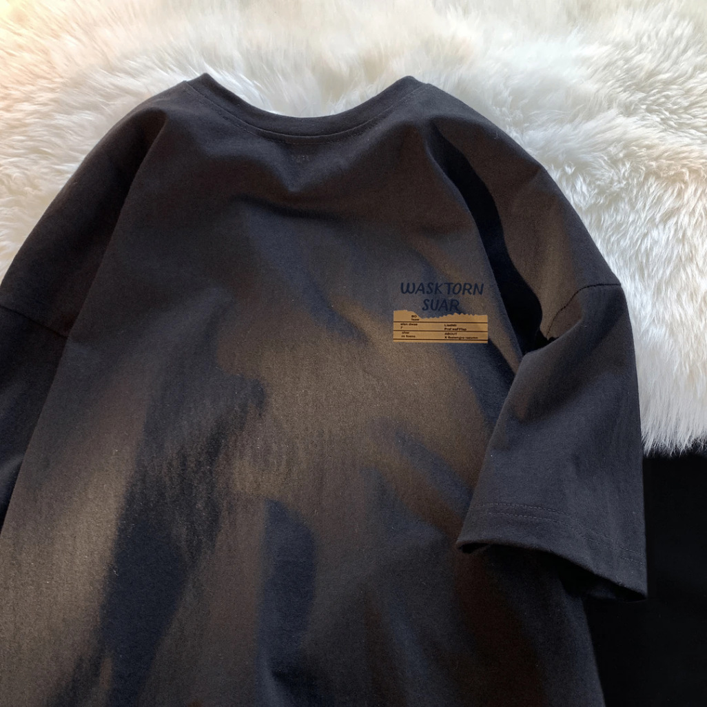 简约通勤百搭短袖男士美式潮牌宽松大码痞帅透气夏季清爽小白T恤