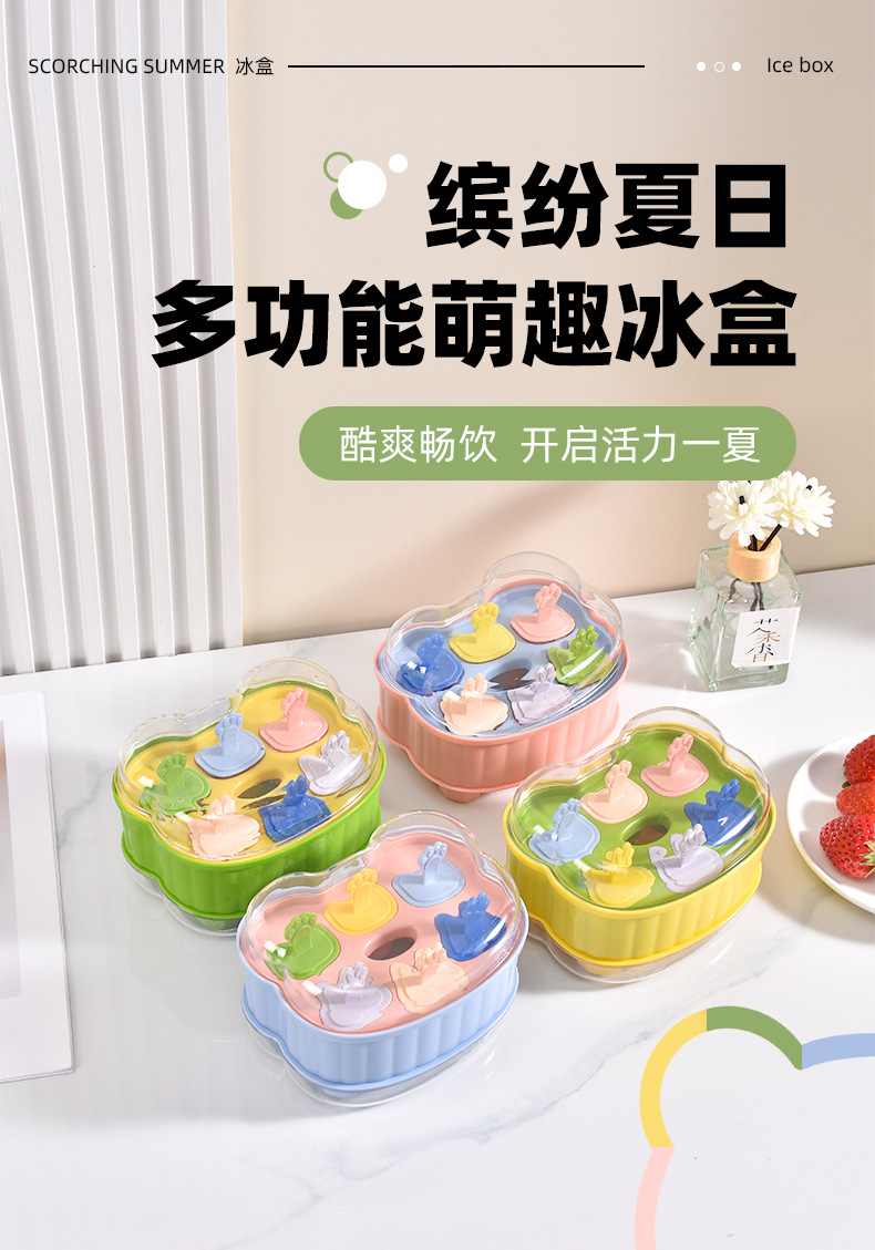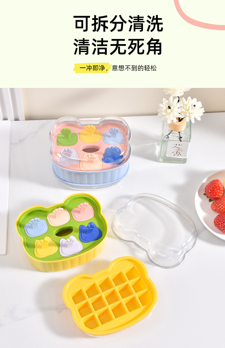 食品级萌趣冰模儿童可爱多色耐低温易脱模清洗二合一冰格冰模